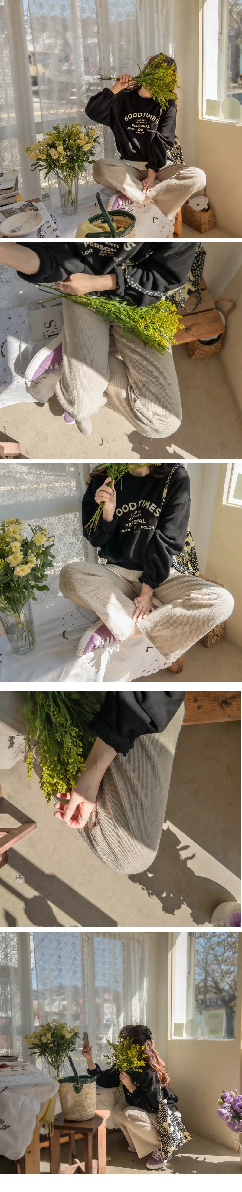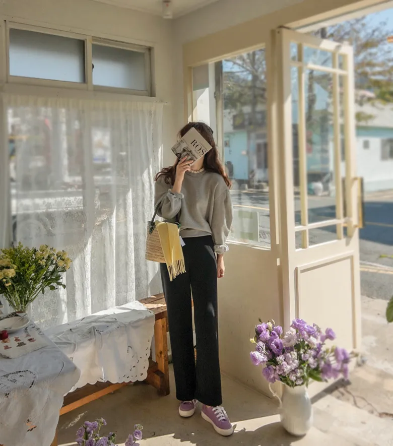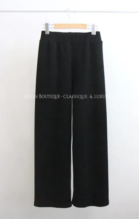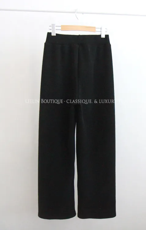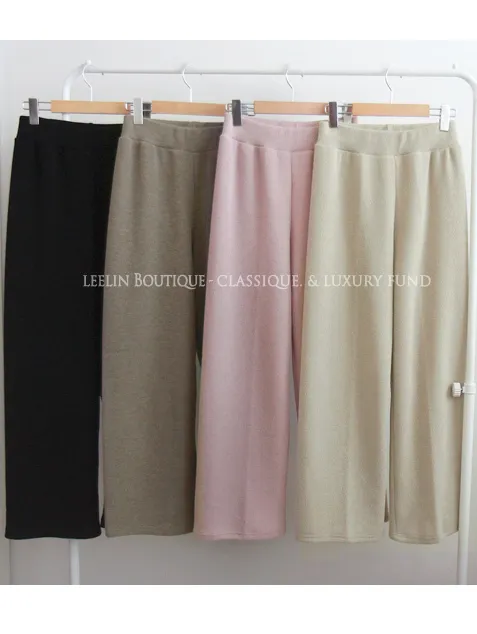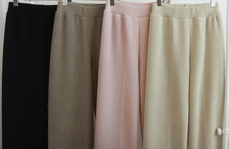 柔和色調舒適腰部彈性小羅紋休閒褲