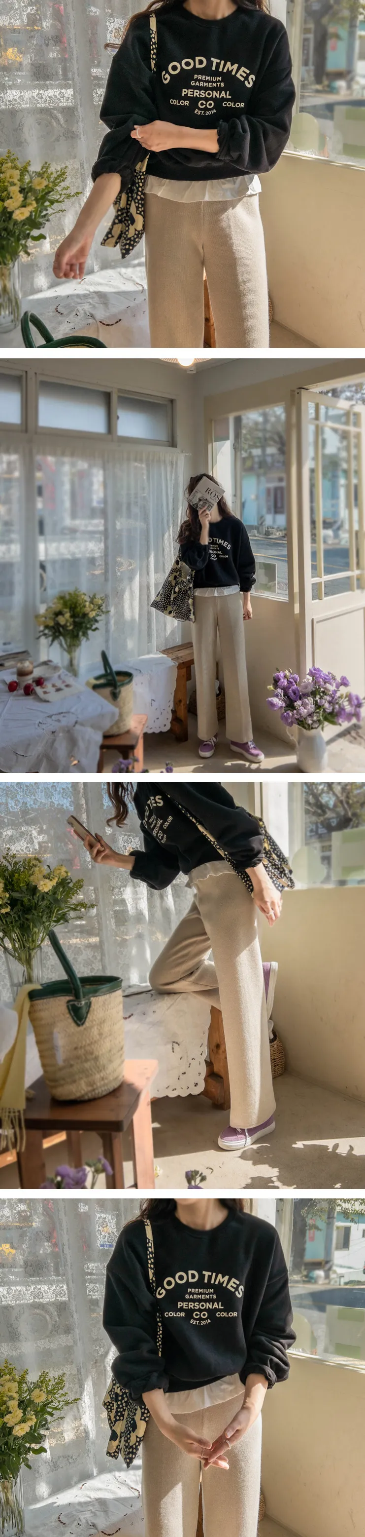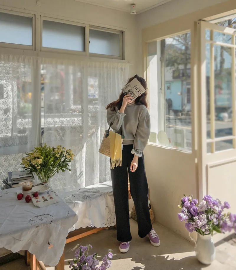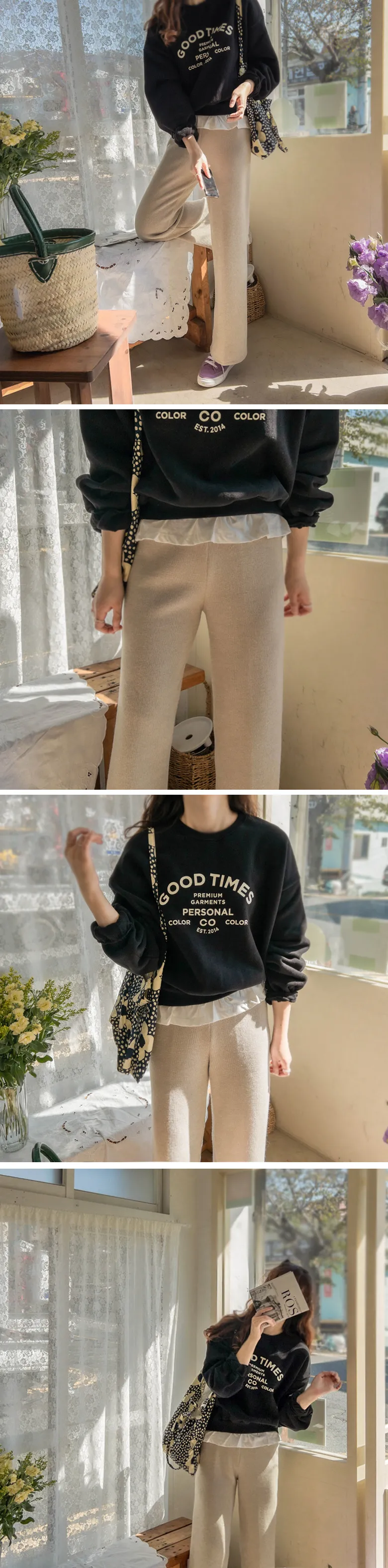 柔和色調舒適腰部彈性小羅紋休閒褲