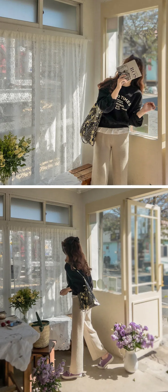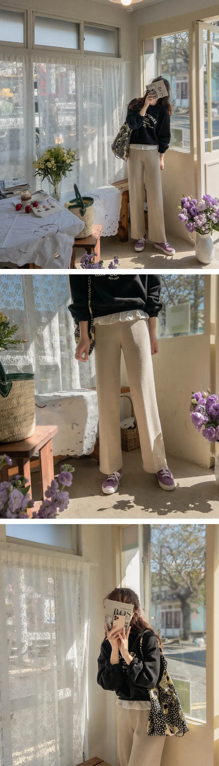 [腰帶處理] [修飾的長腿褲] [5%氨綸,彈性拉絨布料] [柔和的顏色] [建議作為舒適的褲子穿搭]