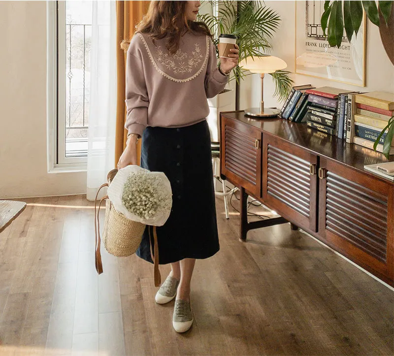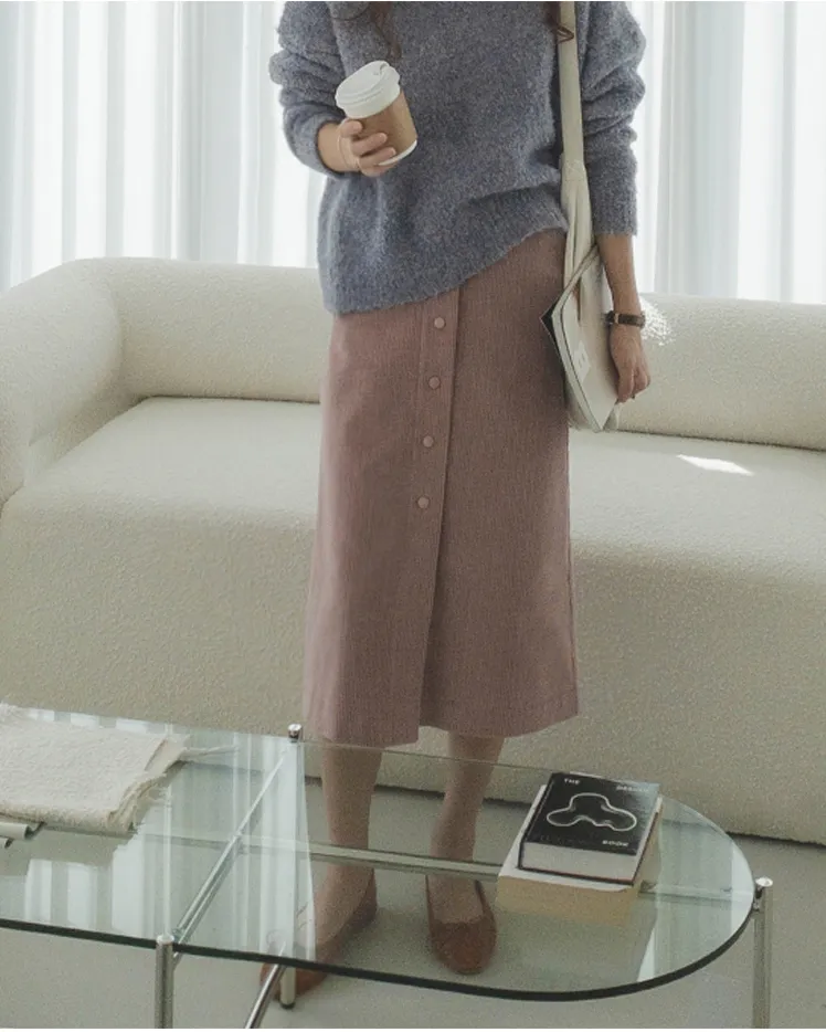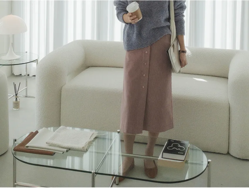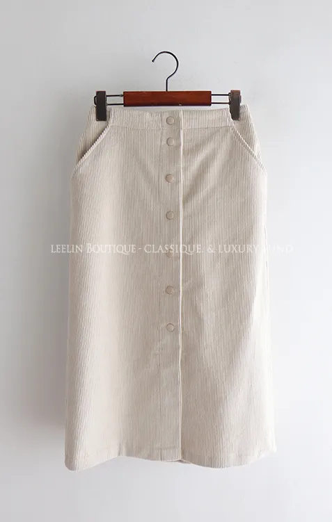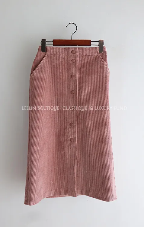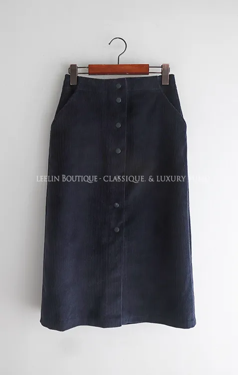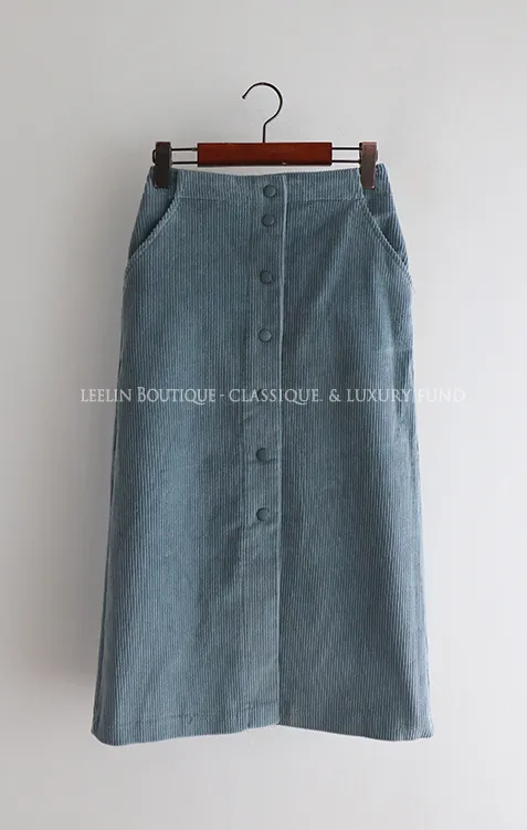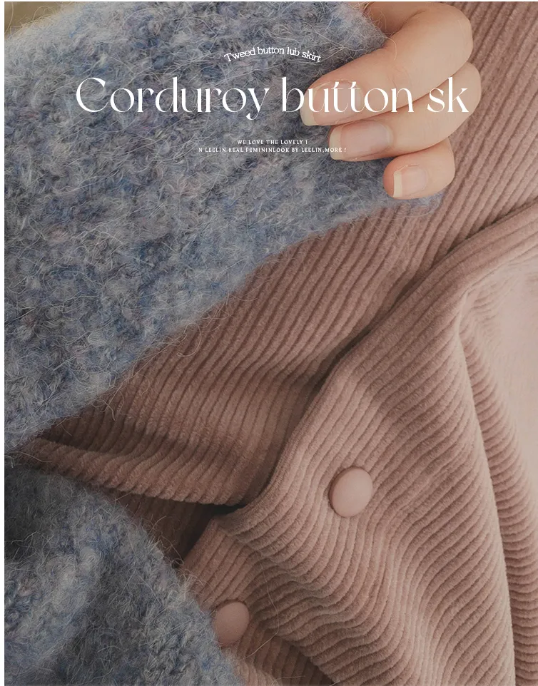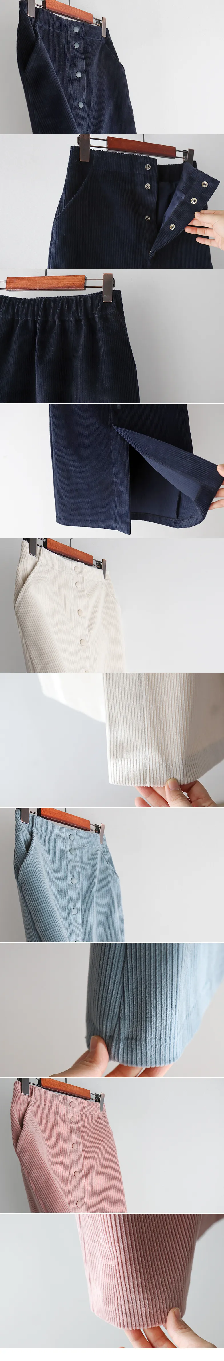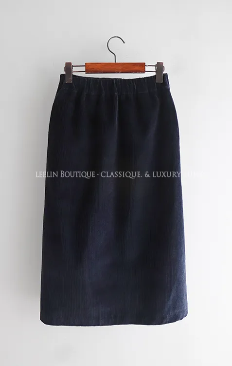 [柔軟燈芯絨裙] [修身單紐帶設計] [背部飾帶,讓你全天舒適! ! ] [前開衩,活動自如]
