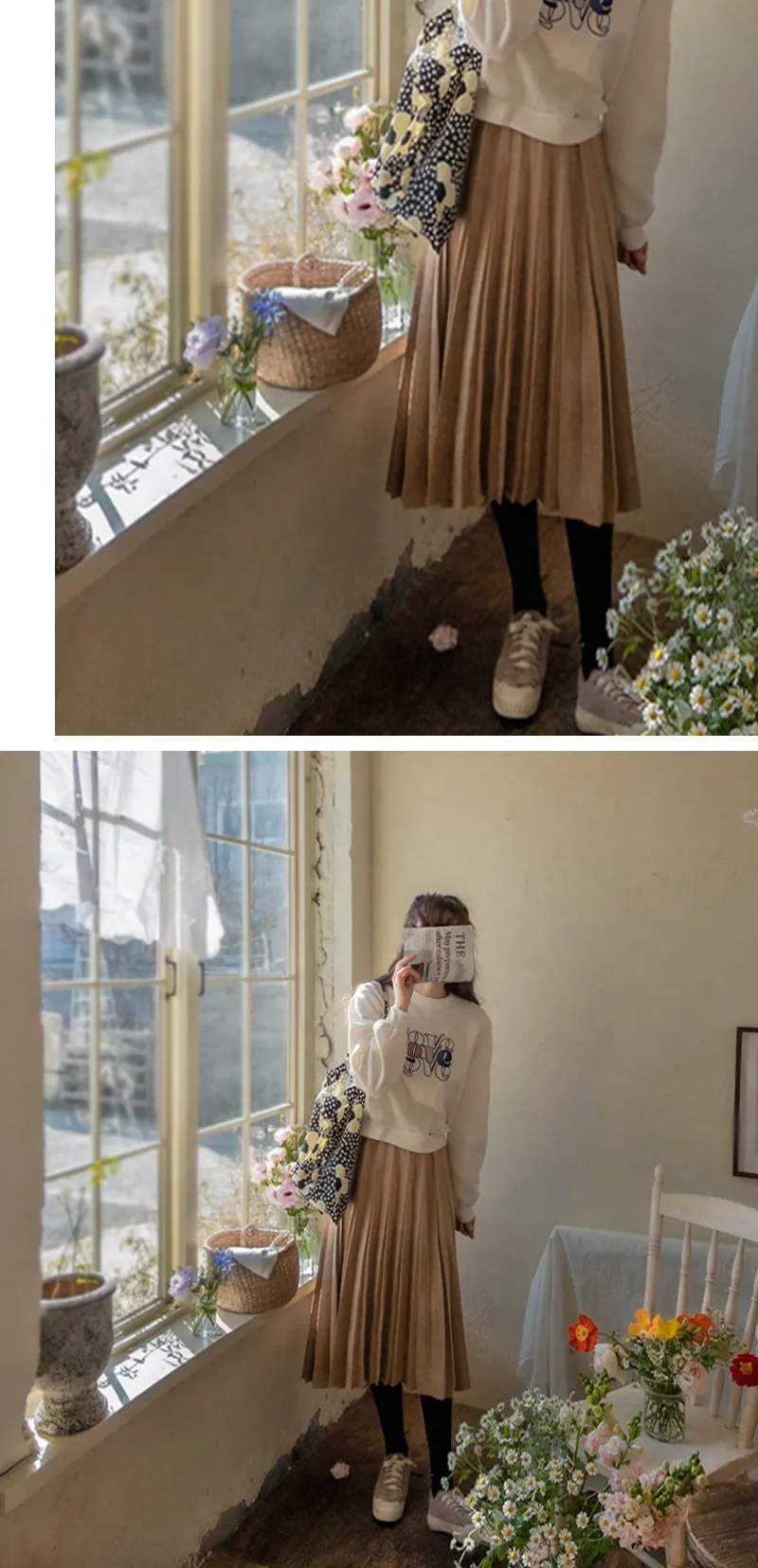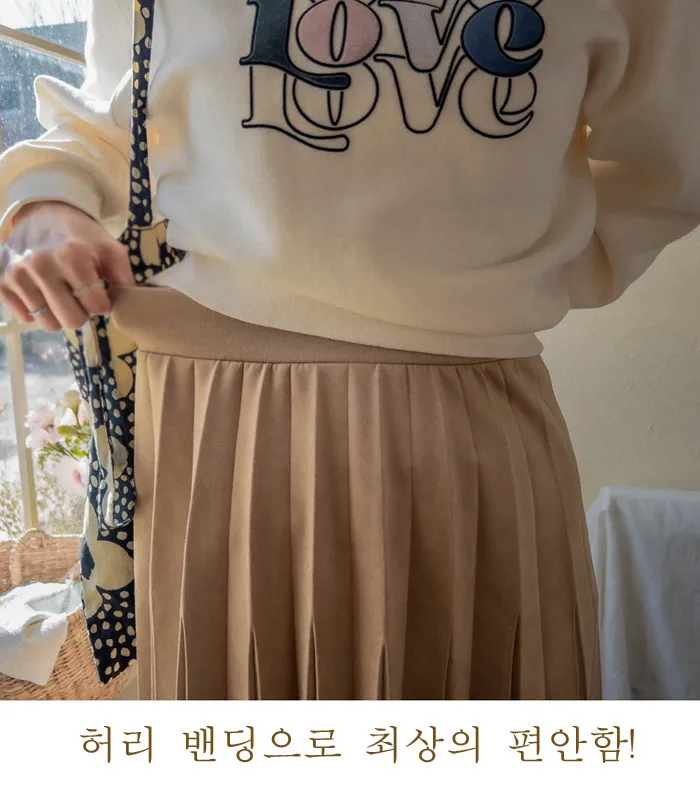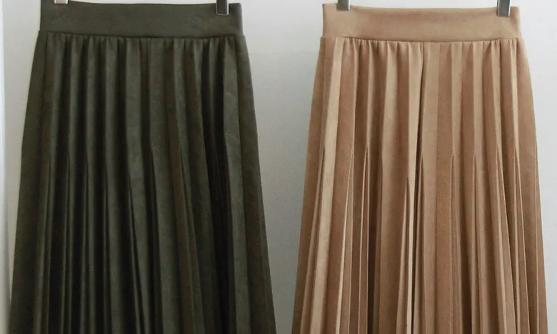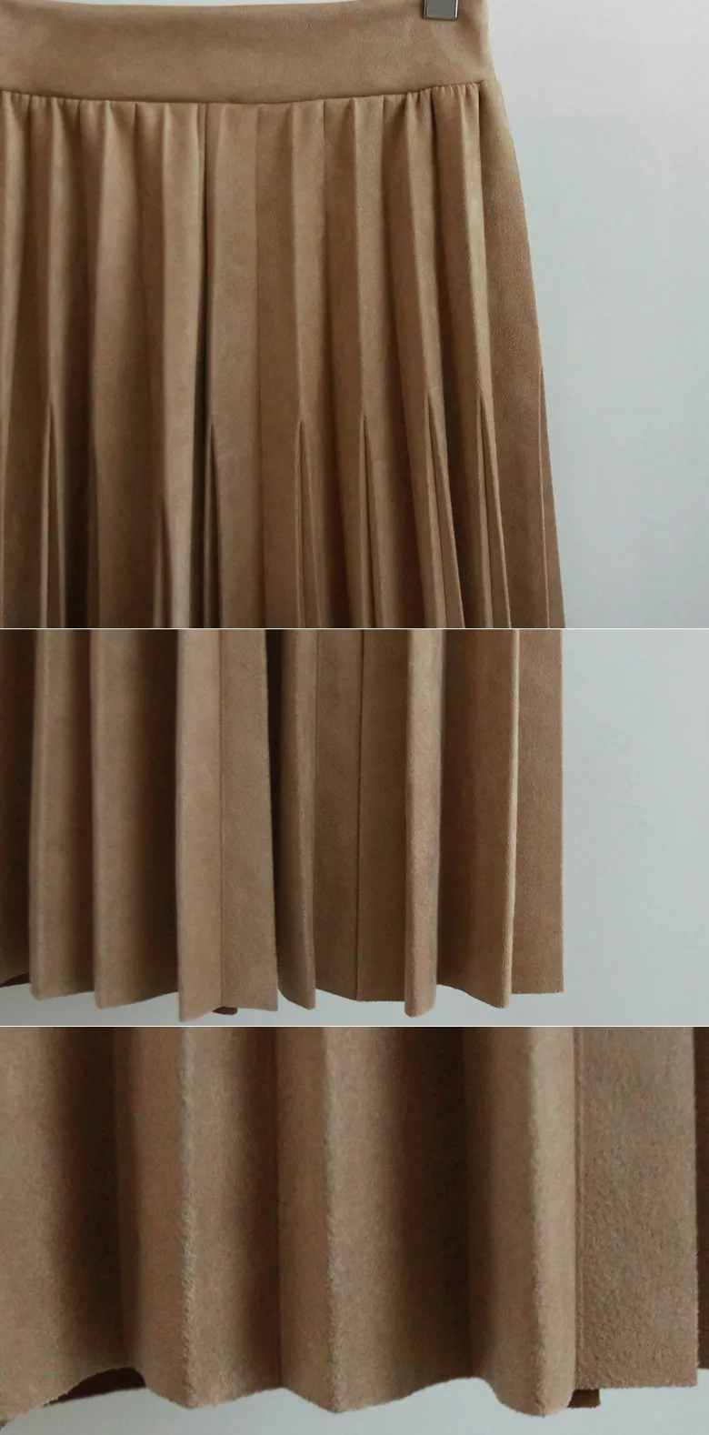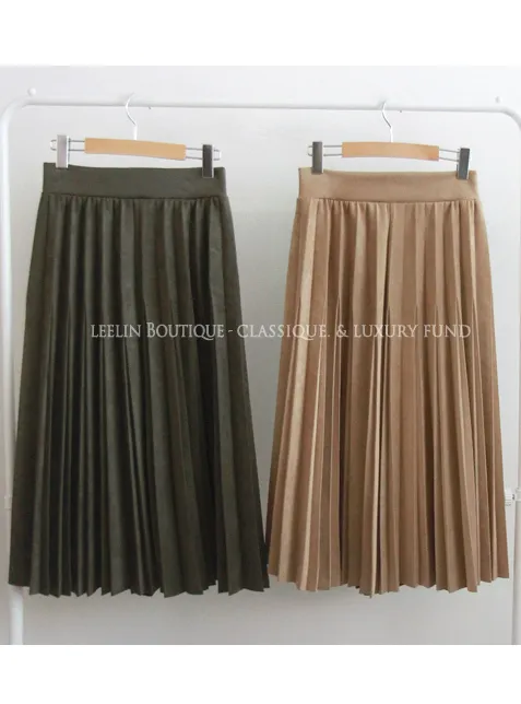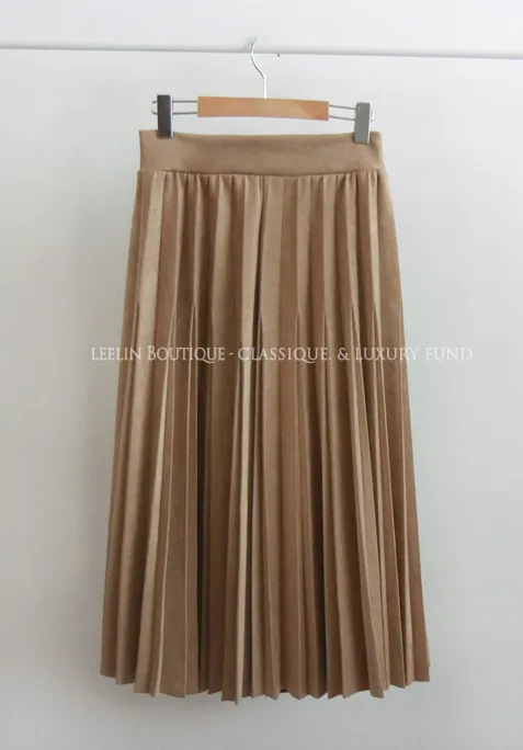 浪漫獨特切口絨面革彈性百摺中長裙