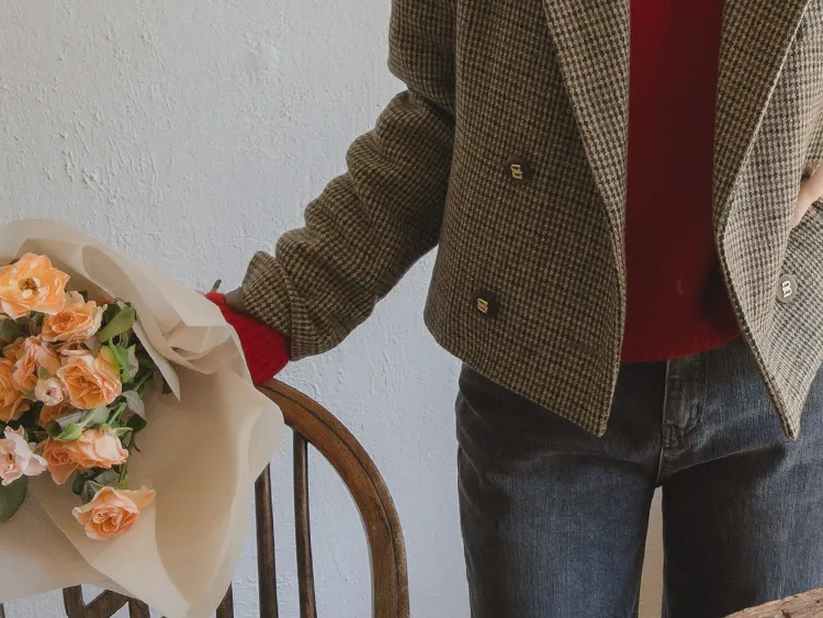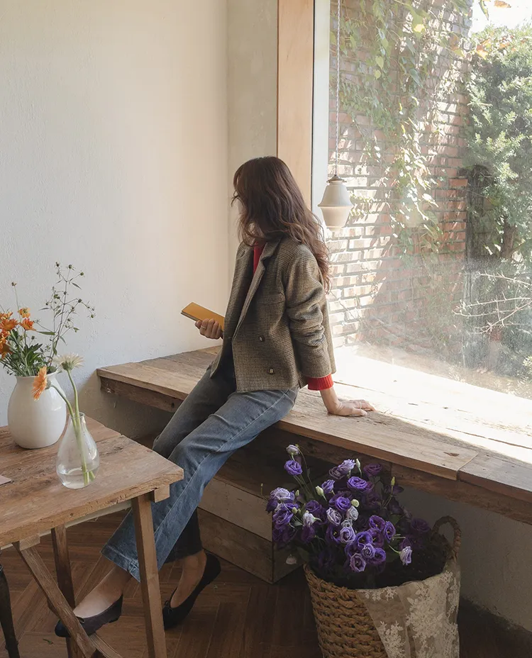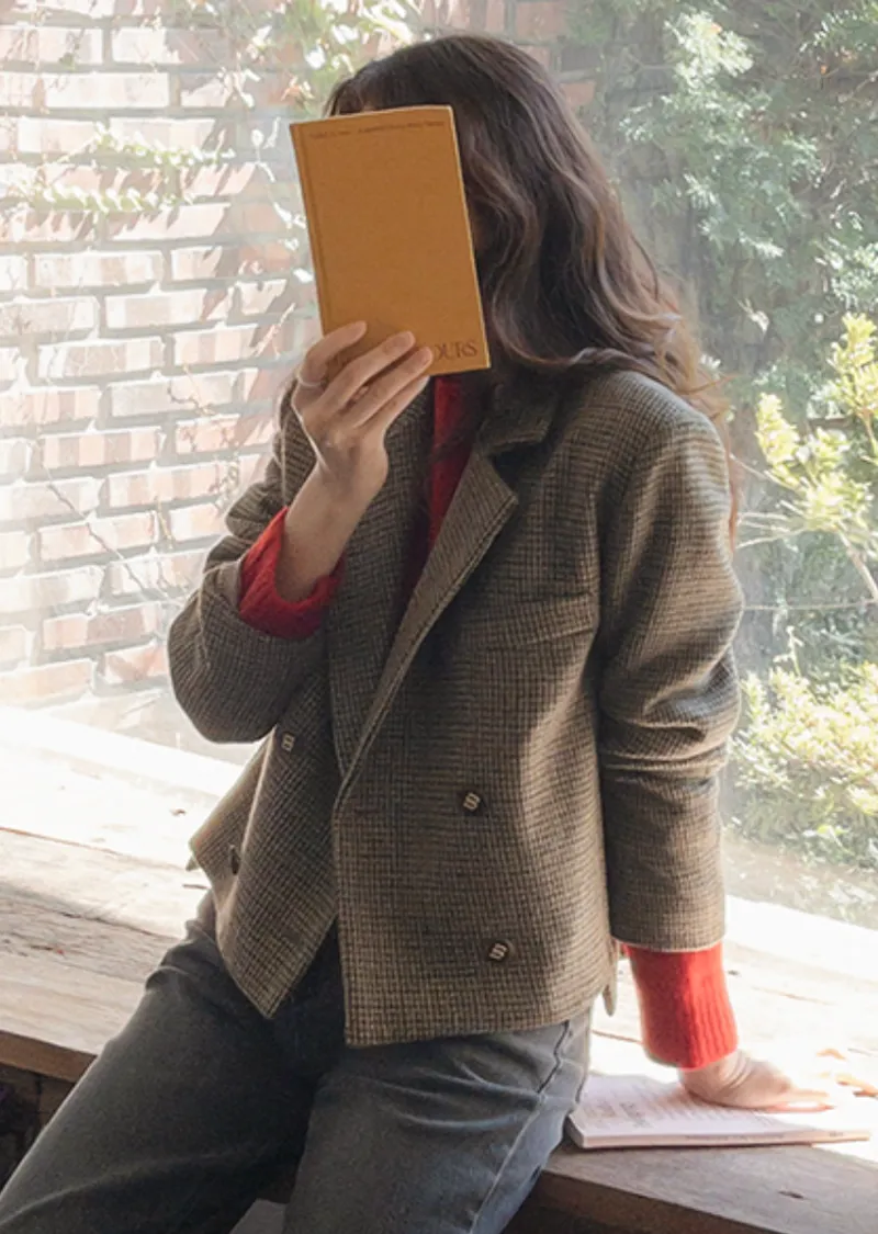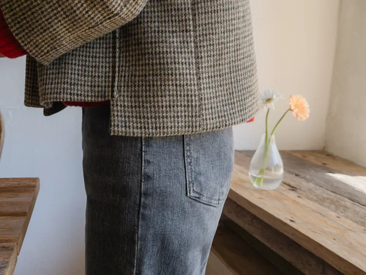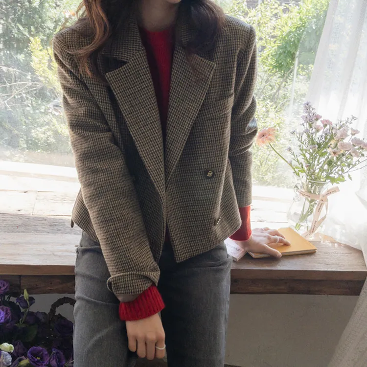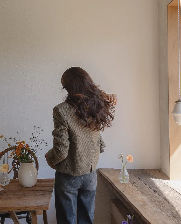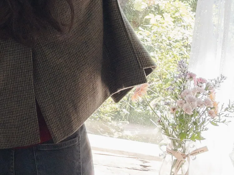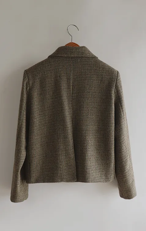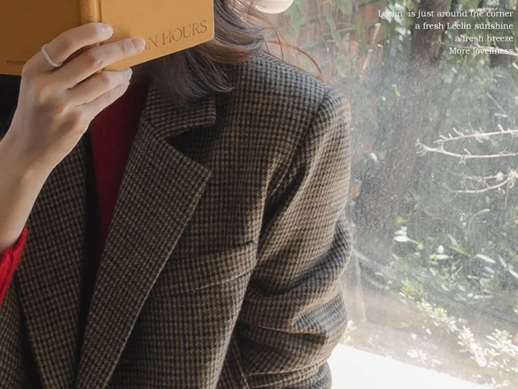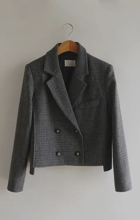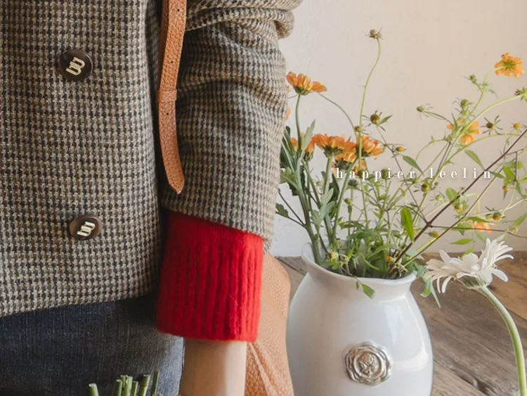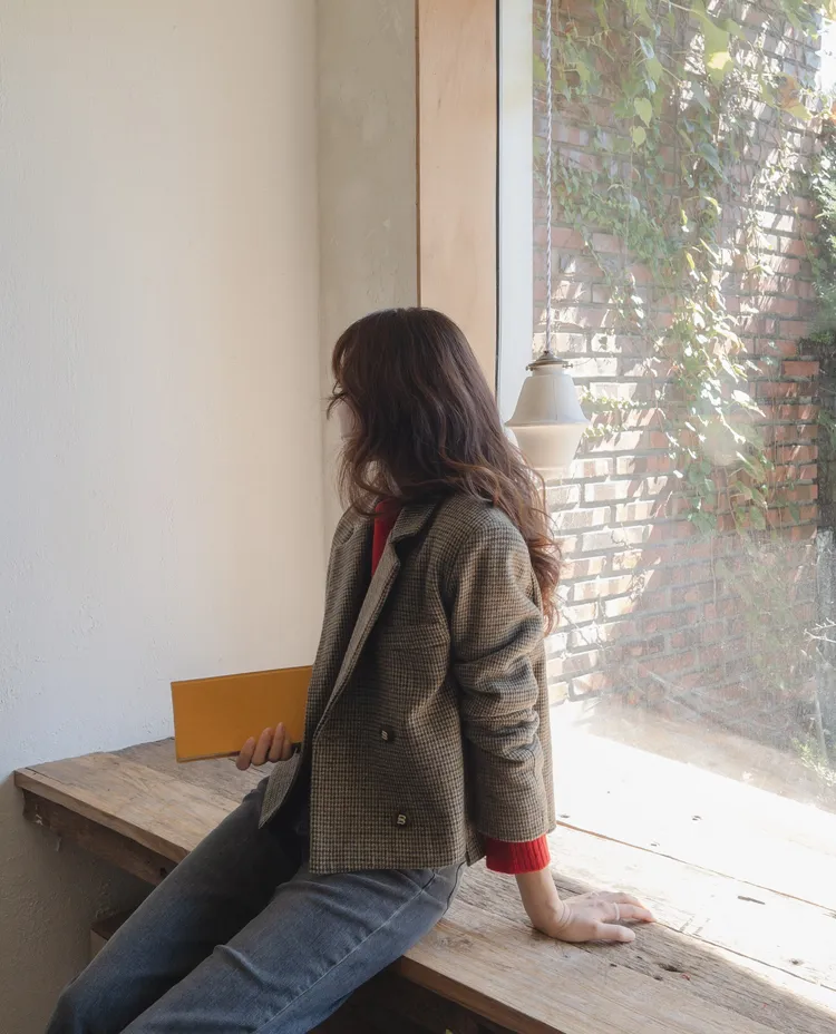 秋季氛圍雙扣下擺無痕開衩格紋外套
