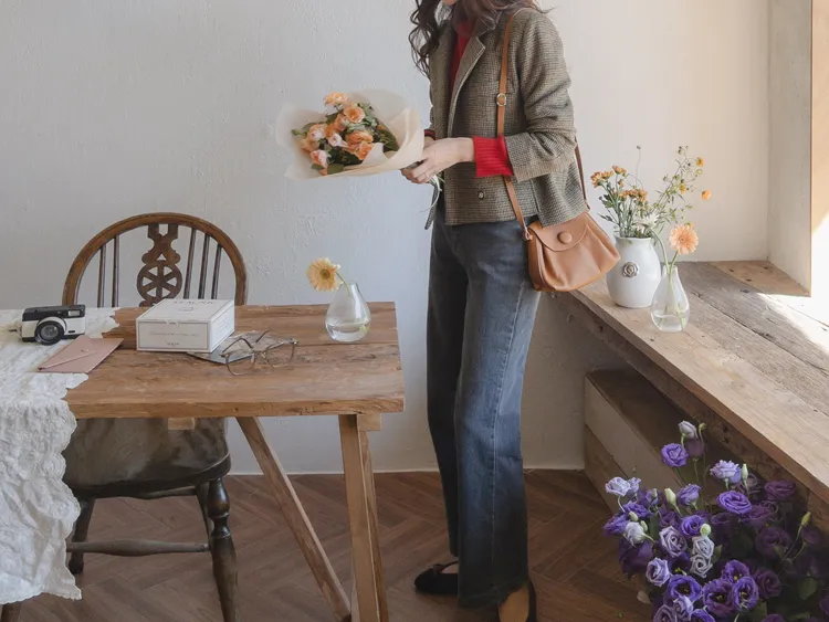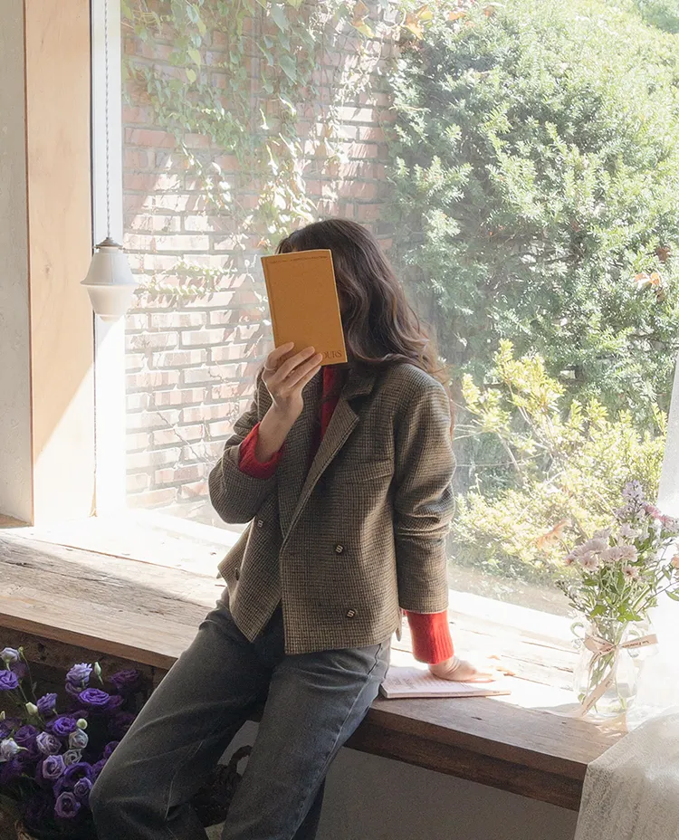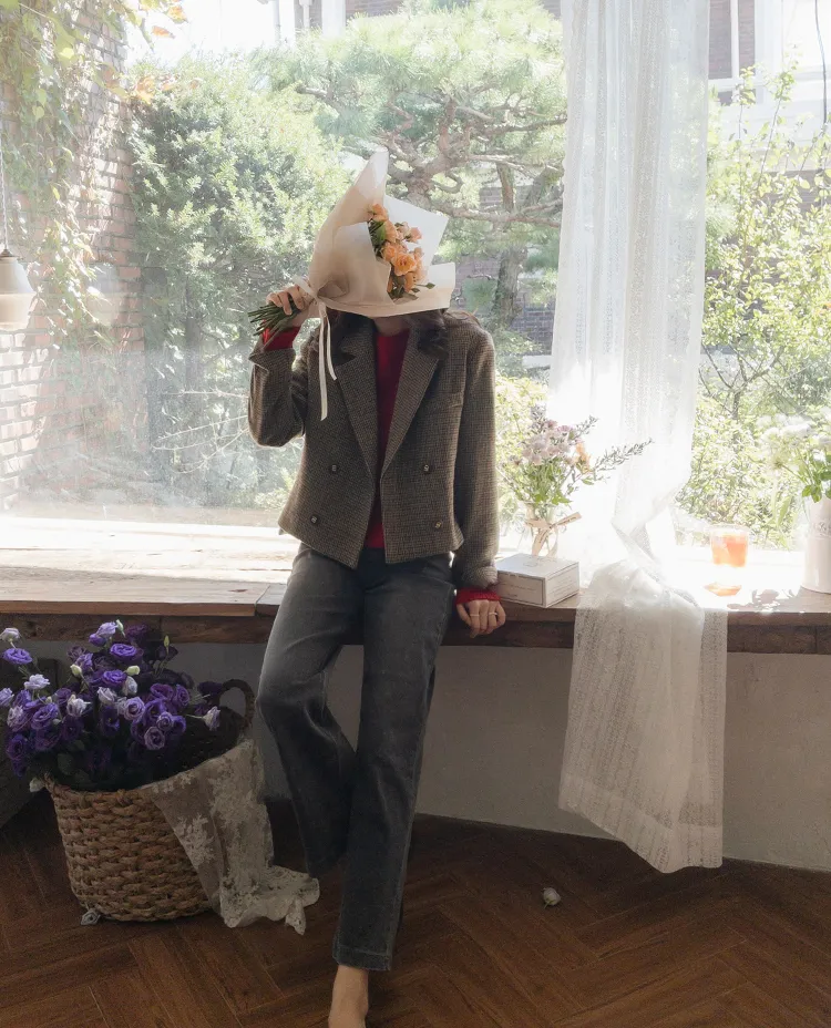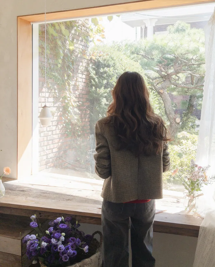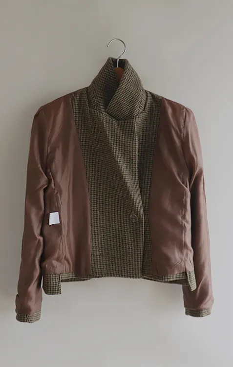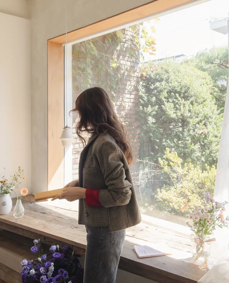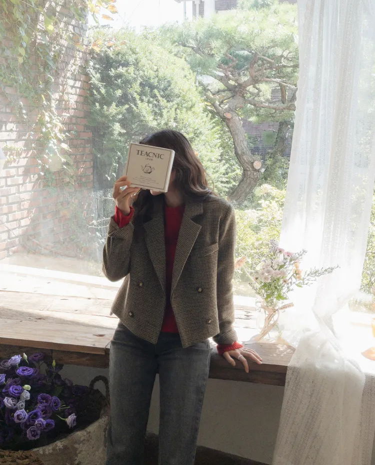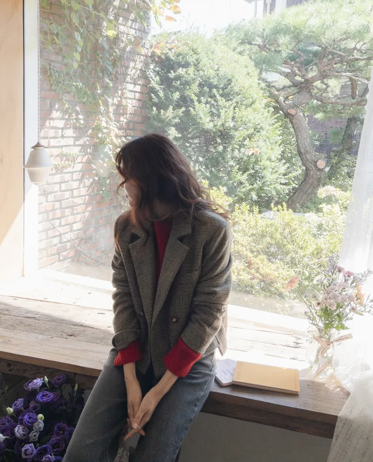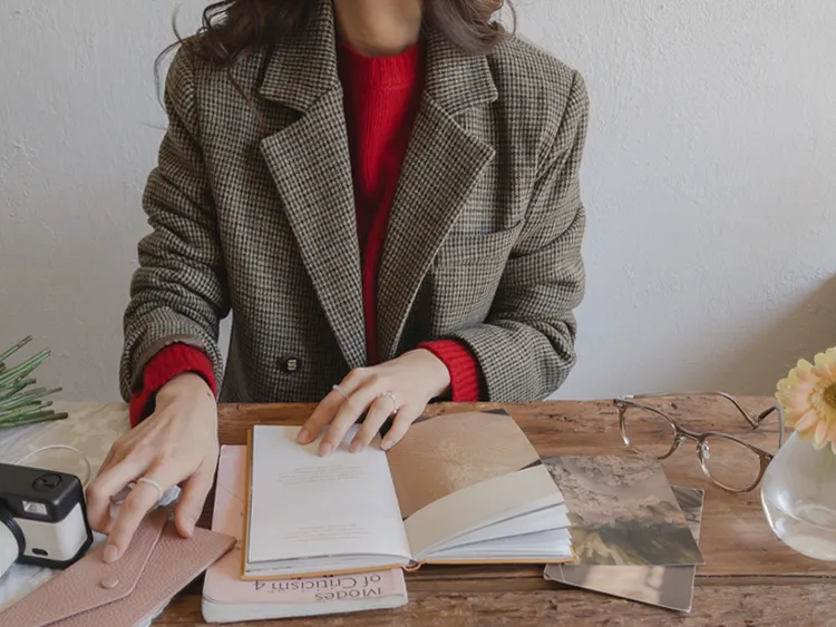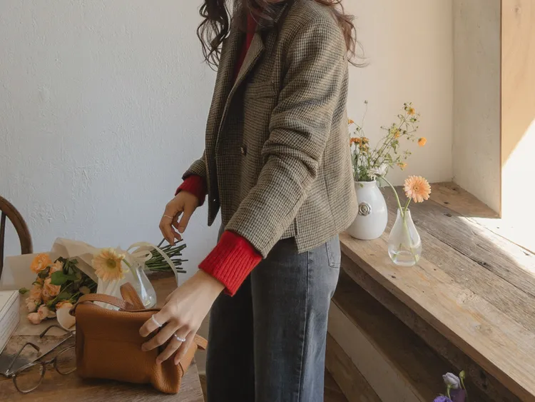 秋季氛圍雙扣下擺無痕開衩格紋外套