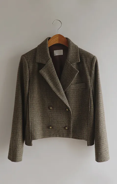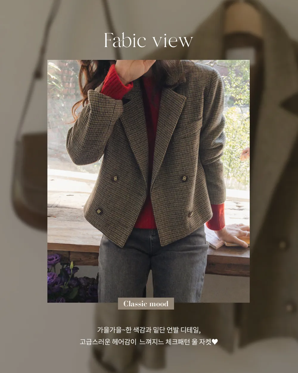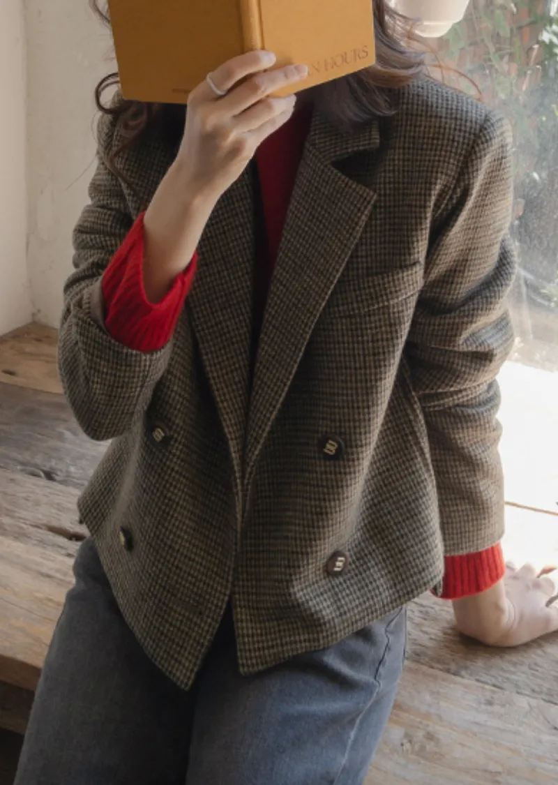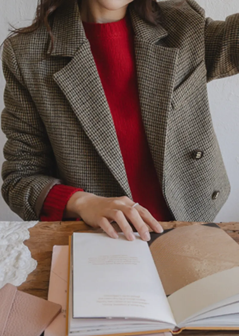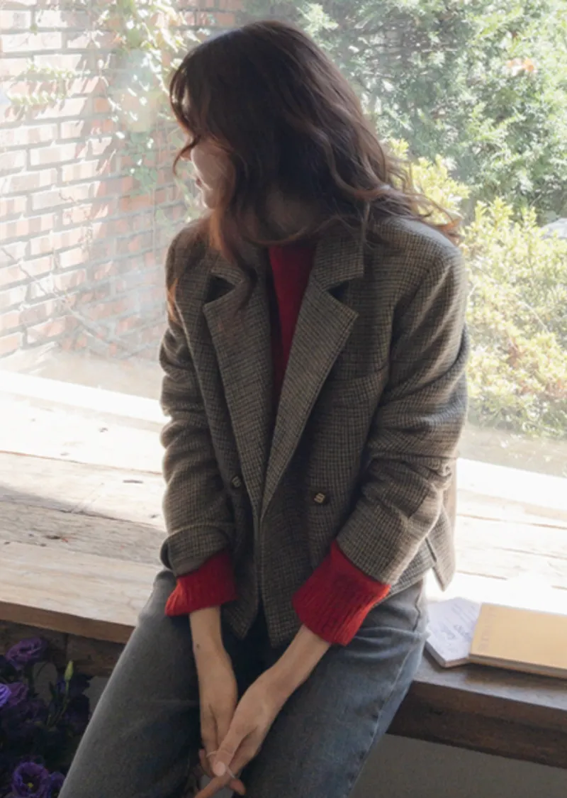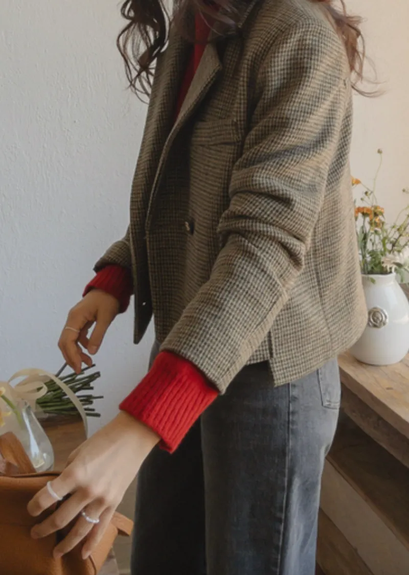 【秋季~沉穩格紋羊毛外套♥】【60%羊毛,奢華】【雙扣設計】【下擺細節開扣,時尚造型~】
