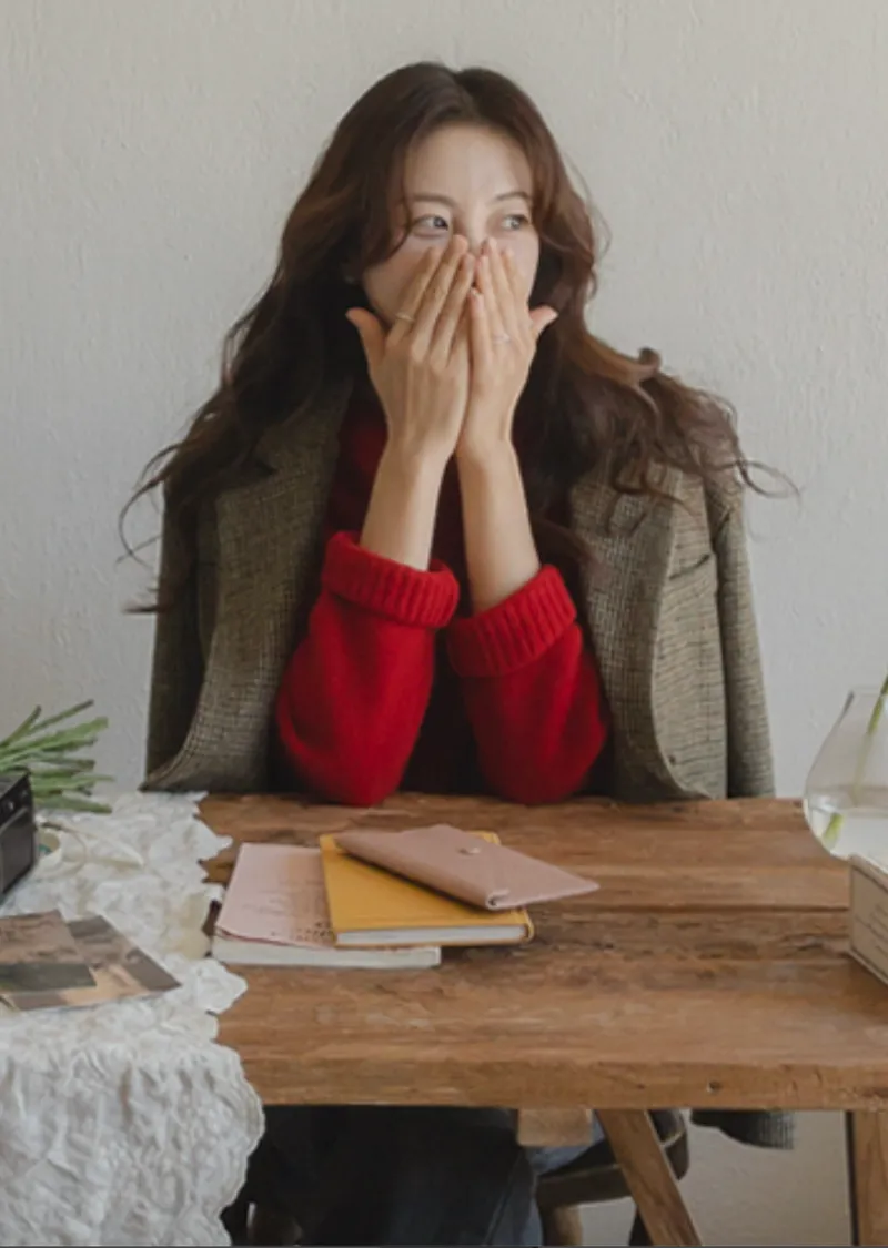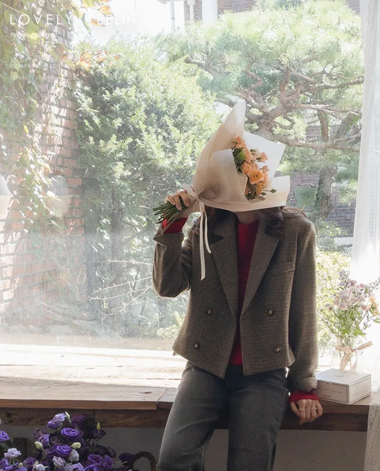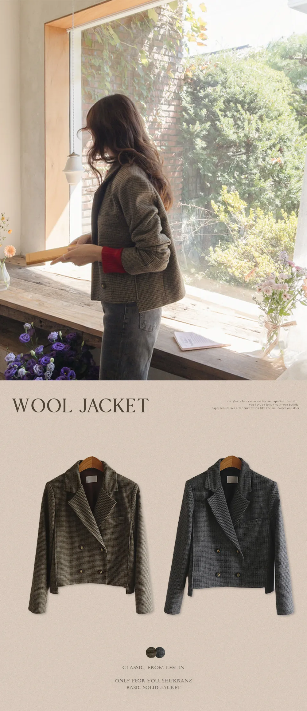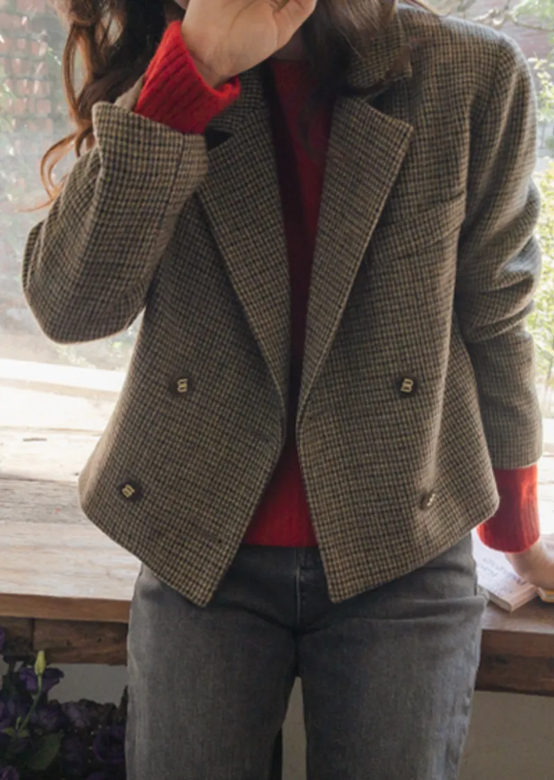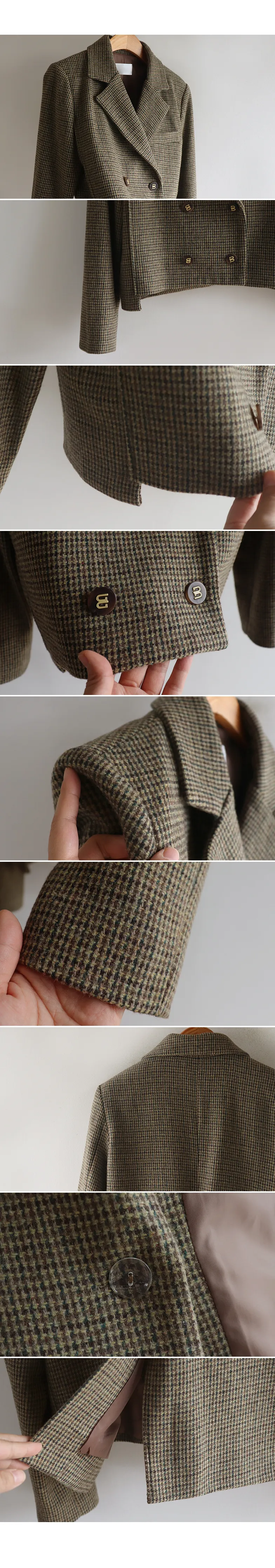 【秋季~沉穩格紋羊毛外套♥】【60%羊毛,奢華】【雙扣設計】【下擺細節開扣,時尚造型~】