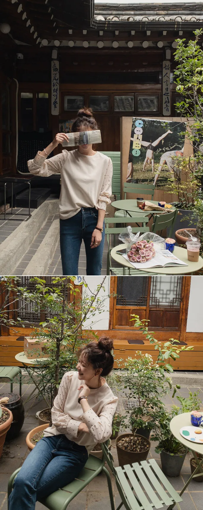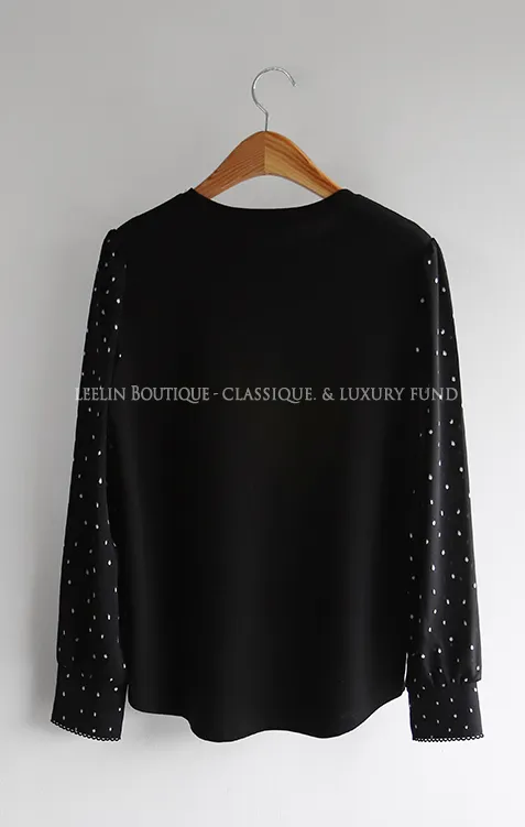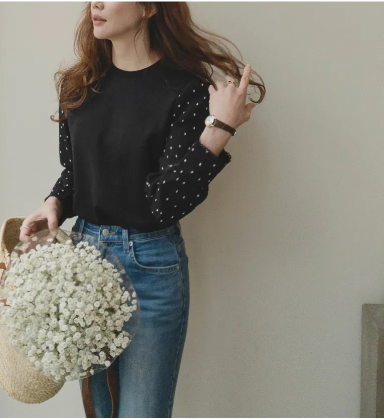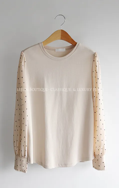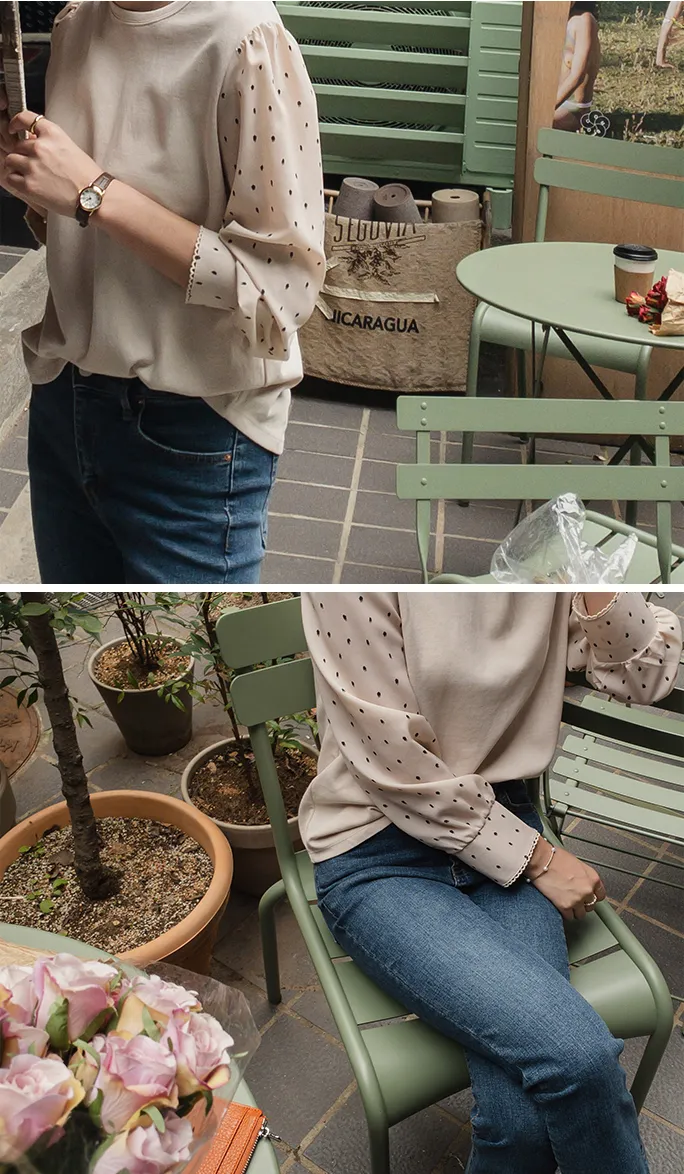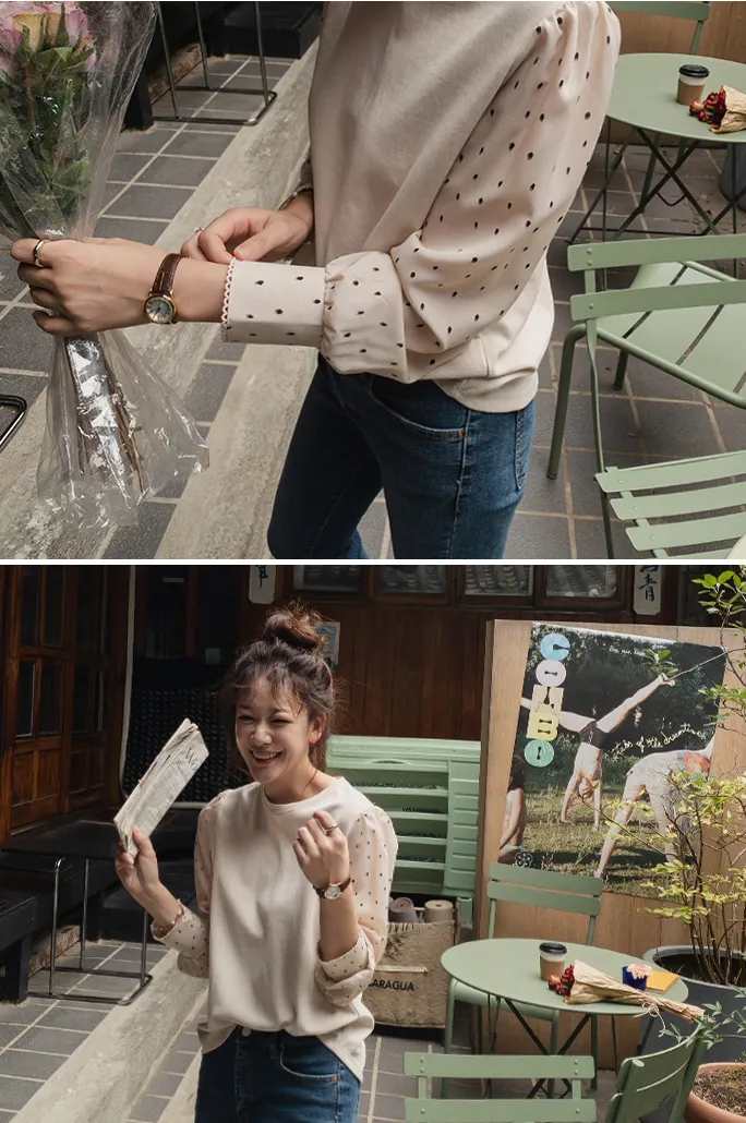 別緻滾邊袖口點點袖輕盈柔軟上衣