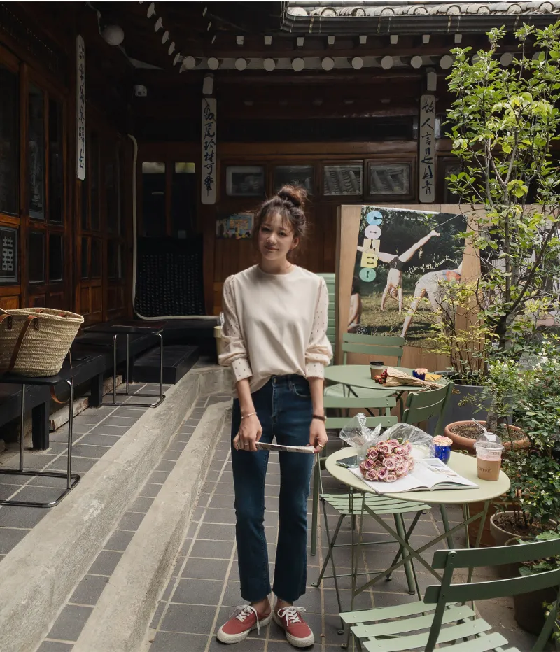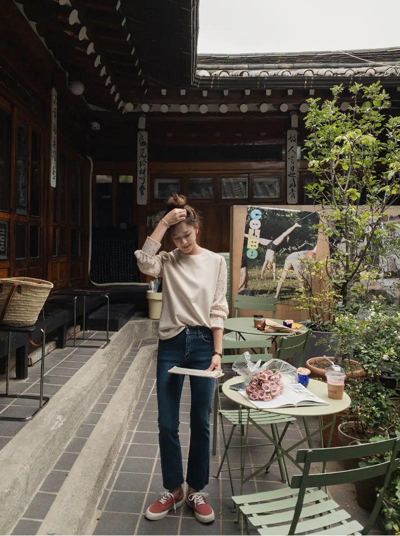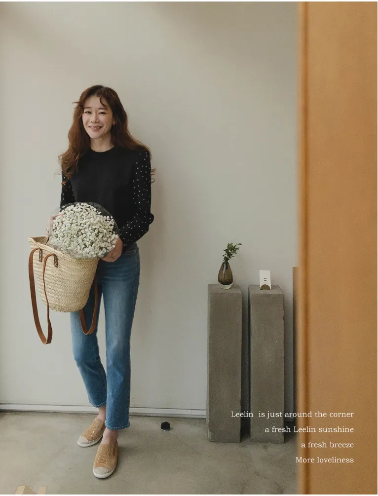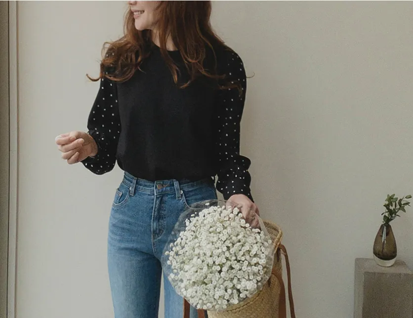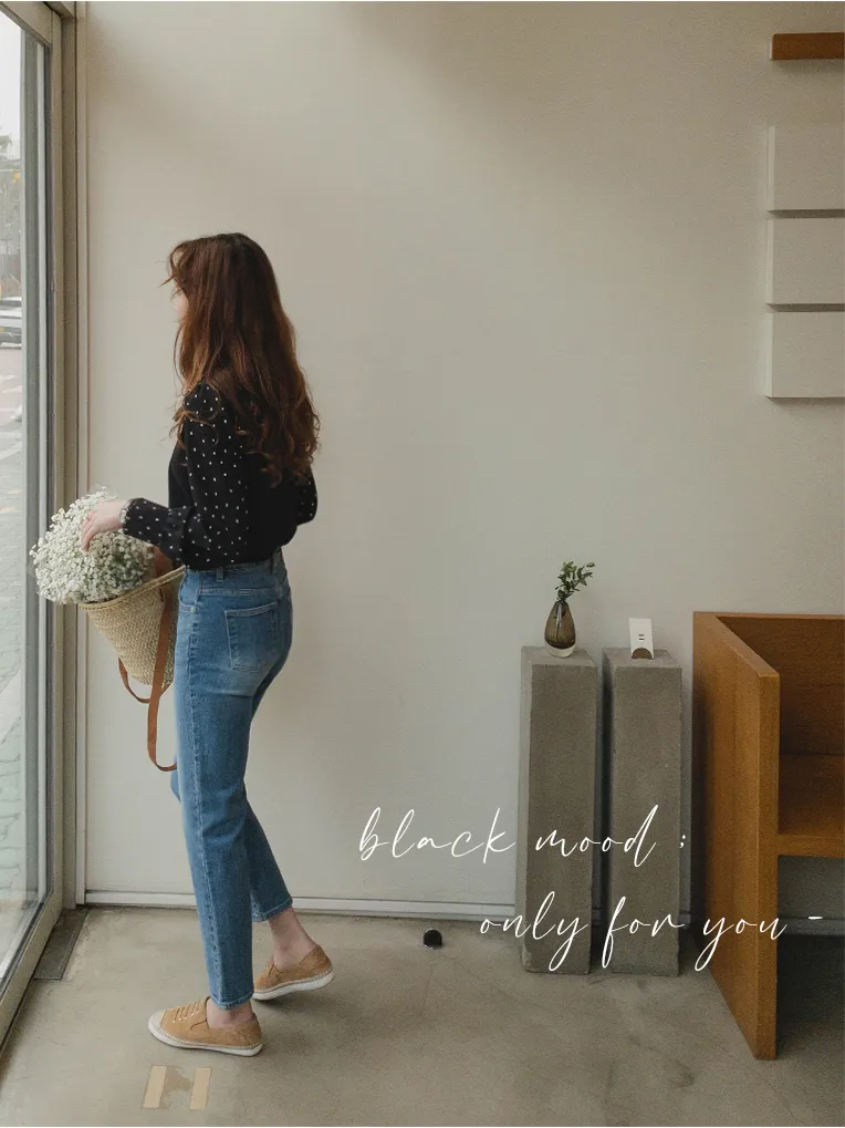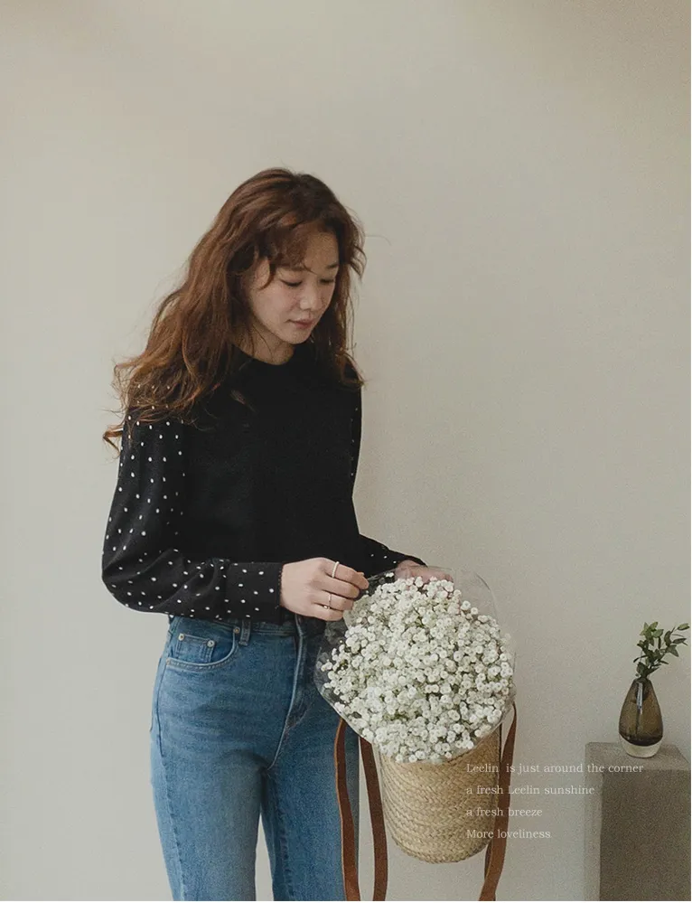 別緻滾邊袖口點點袖輕盈柔軟上衣