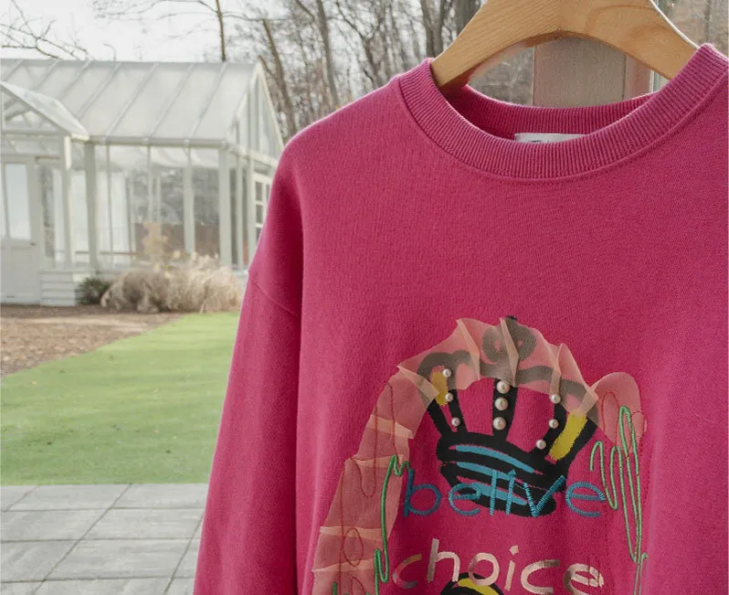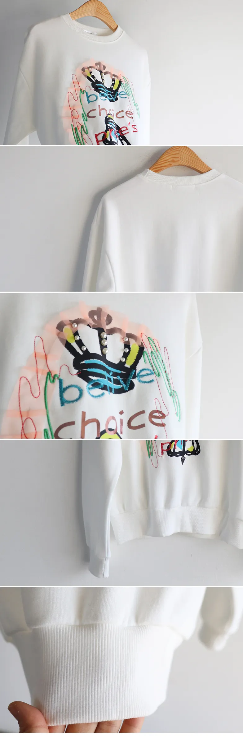 【皇冠印花獨特上衣+彩色刺繡】【閃爍!連珍珠般的晶瑩剔透和飄逸的蕾絲細節♡】【蓬鬆~輕款又紮實!