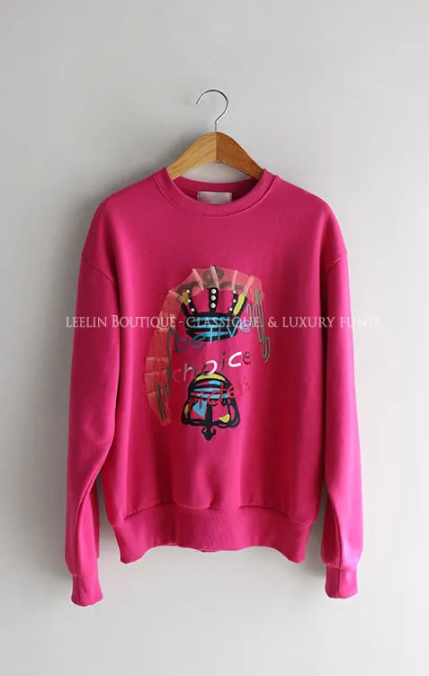 皇冠印花絲帶珍珠裝飾休閒上衣 粉色/白色