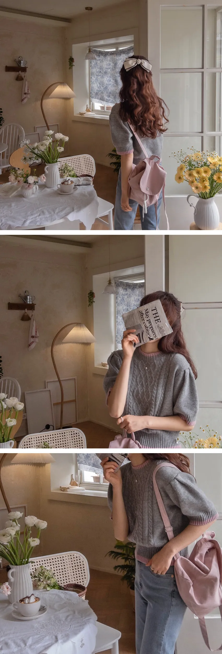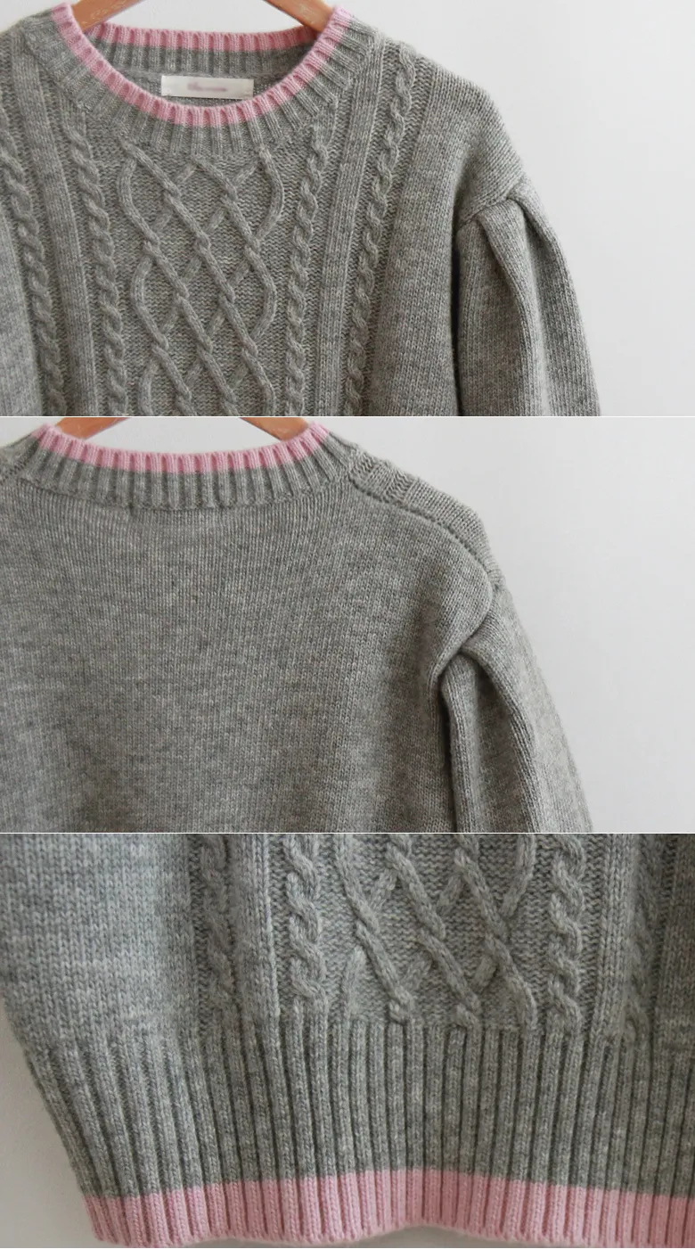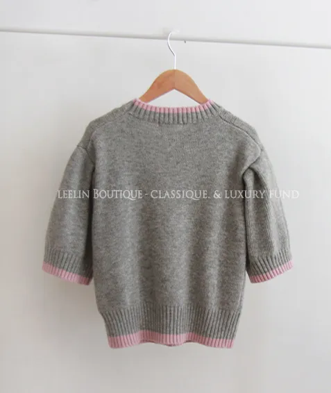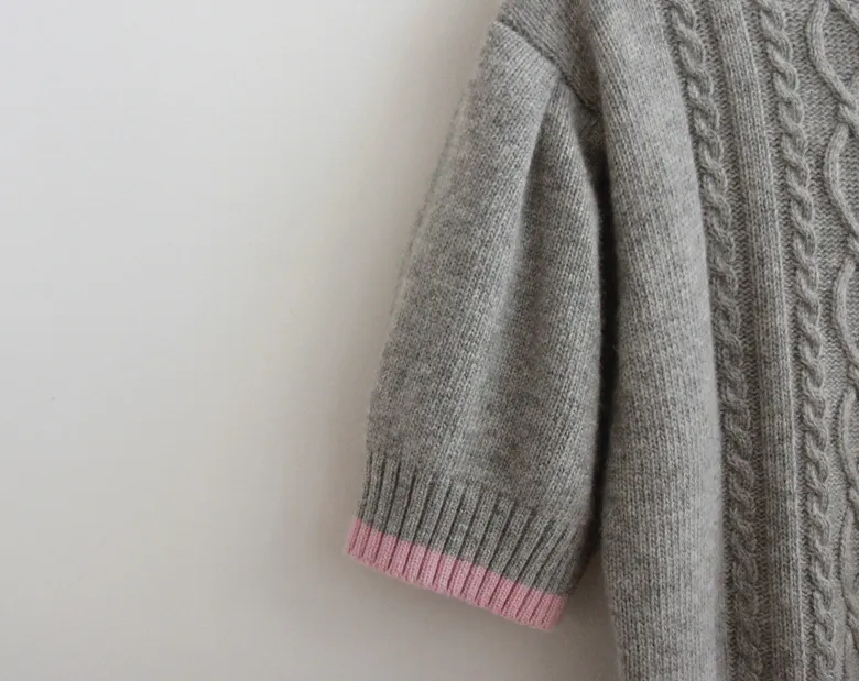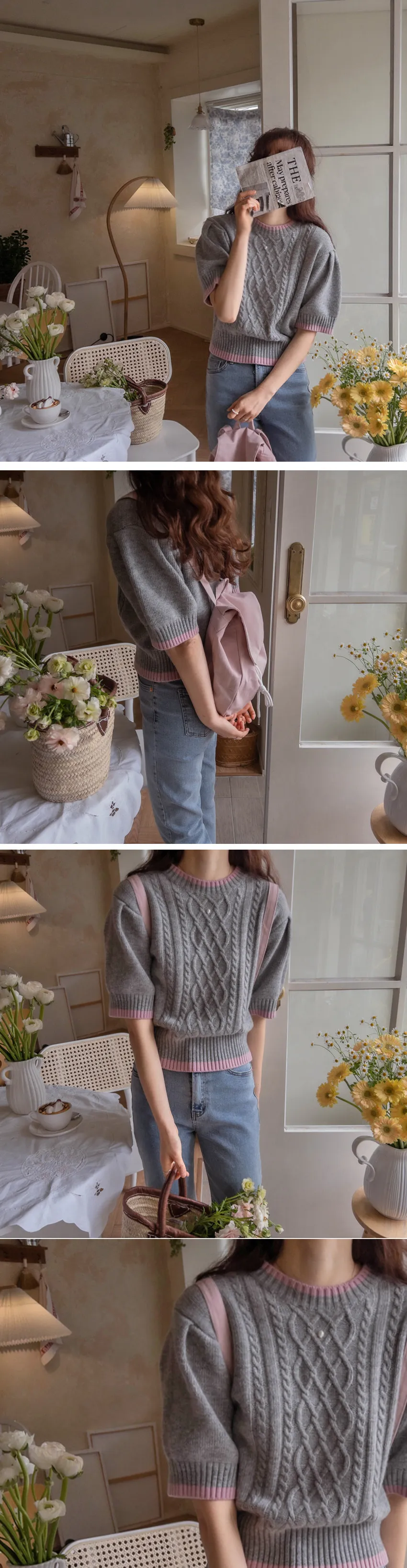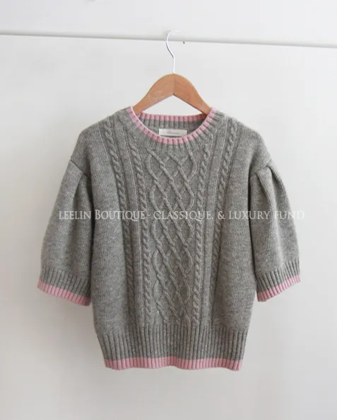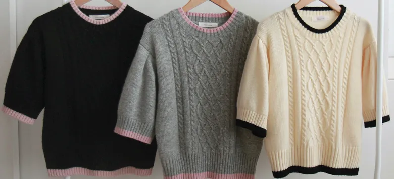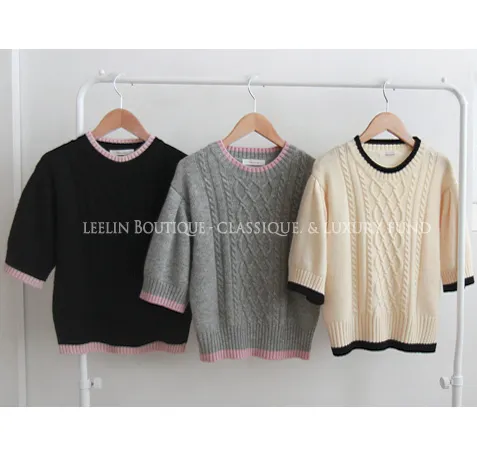 配色邊扭紋編織柔軟短袖針織上衣