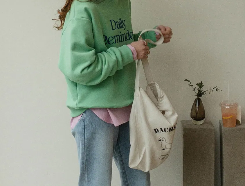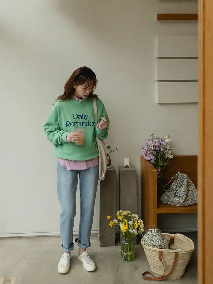感性色彩字母印花落肩休閒上衣