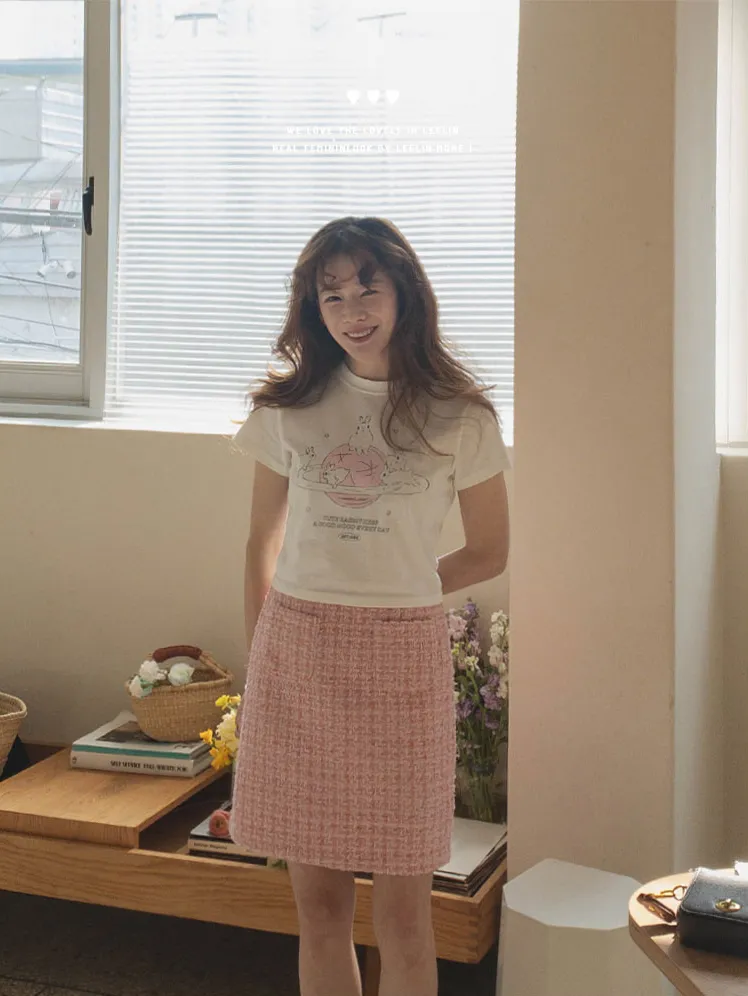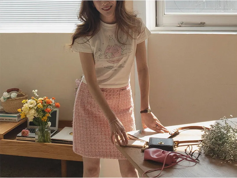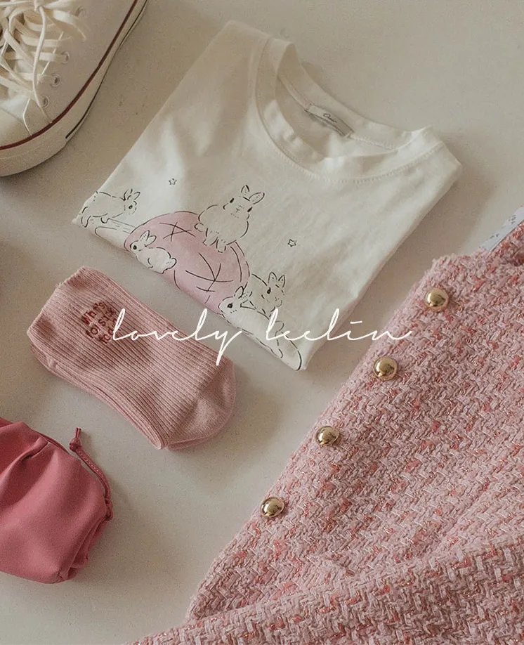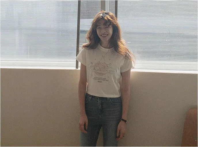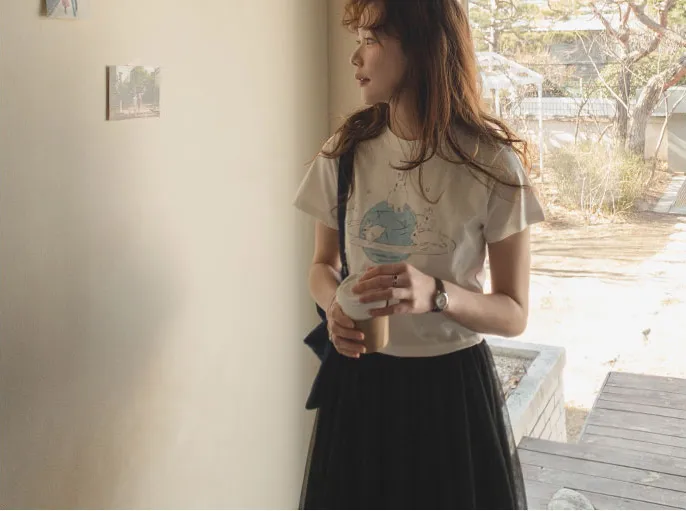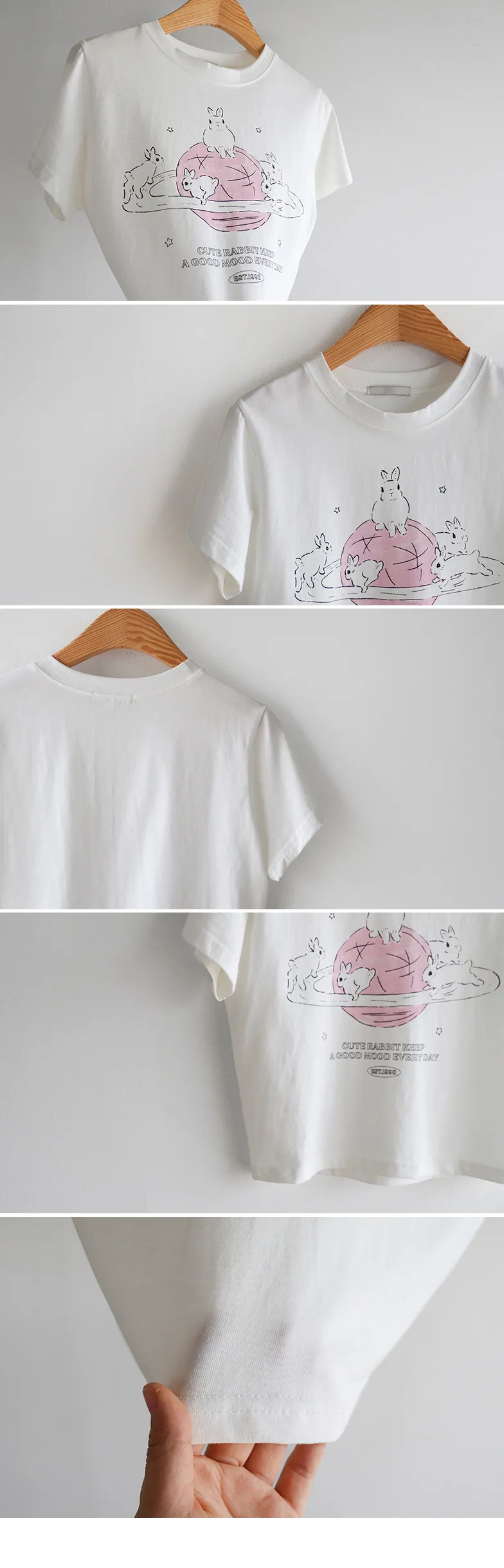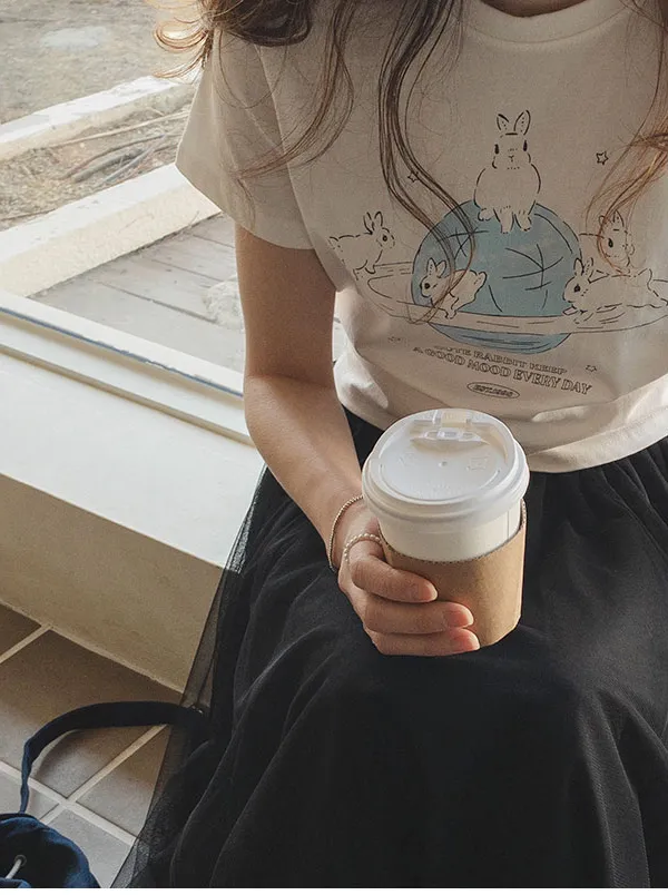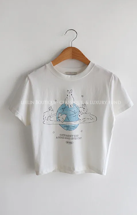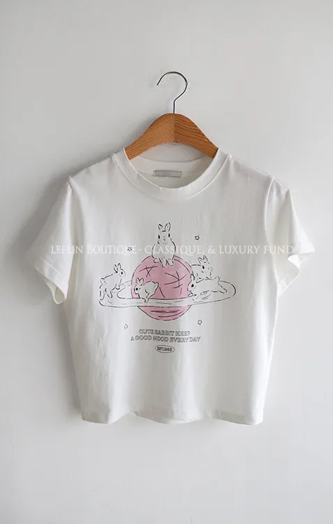 可愛跑跳兔子印花純棉短袖上衣