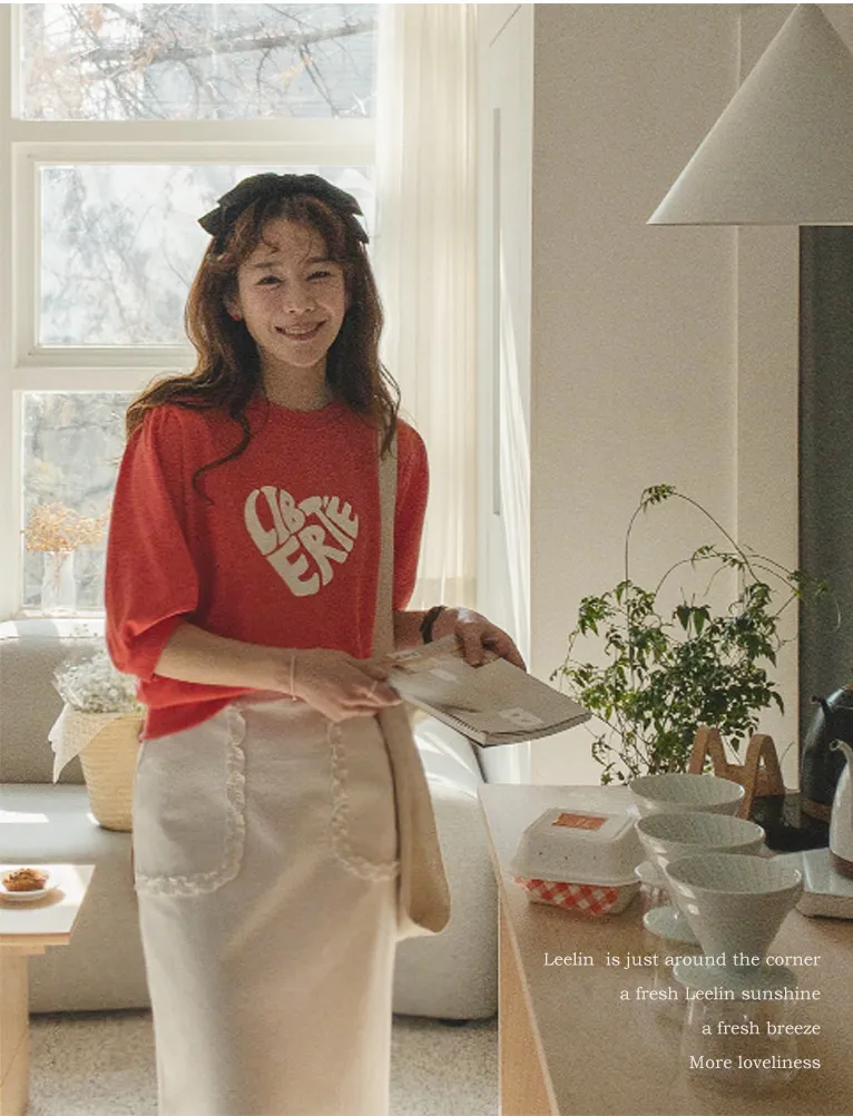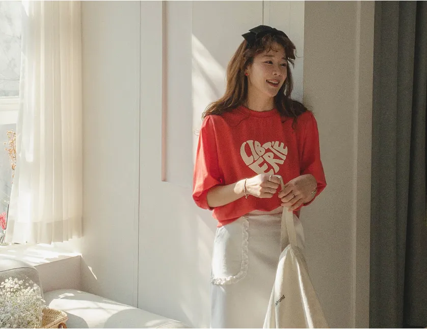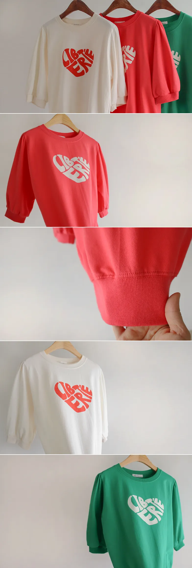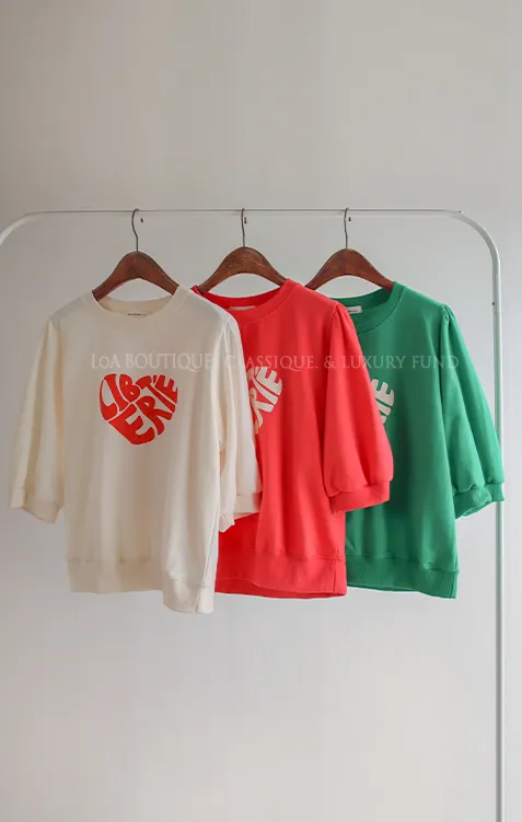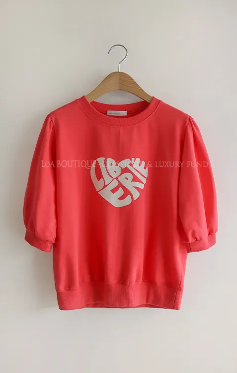 [心形印花的可愛T卹♡] [泡泡袖的設計充滿可愛氣息] [春夏季節的七分袖!