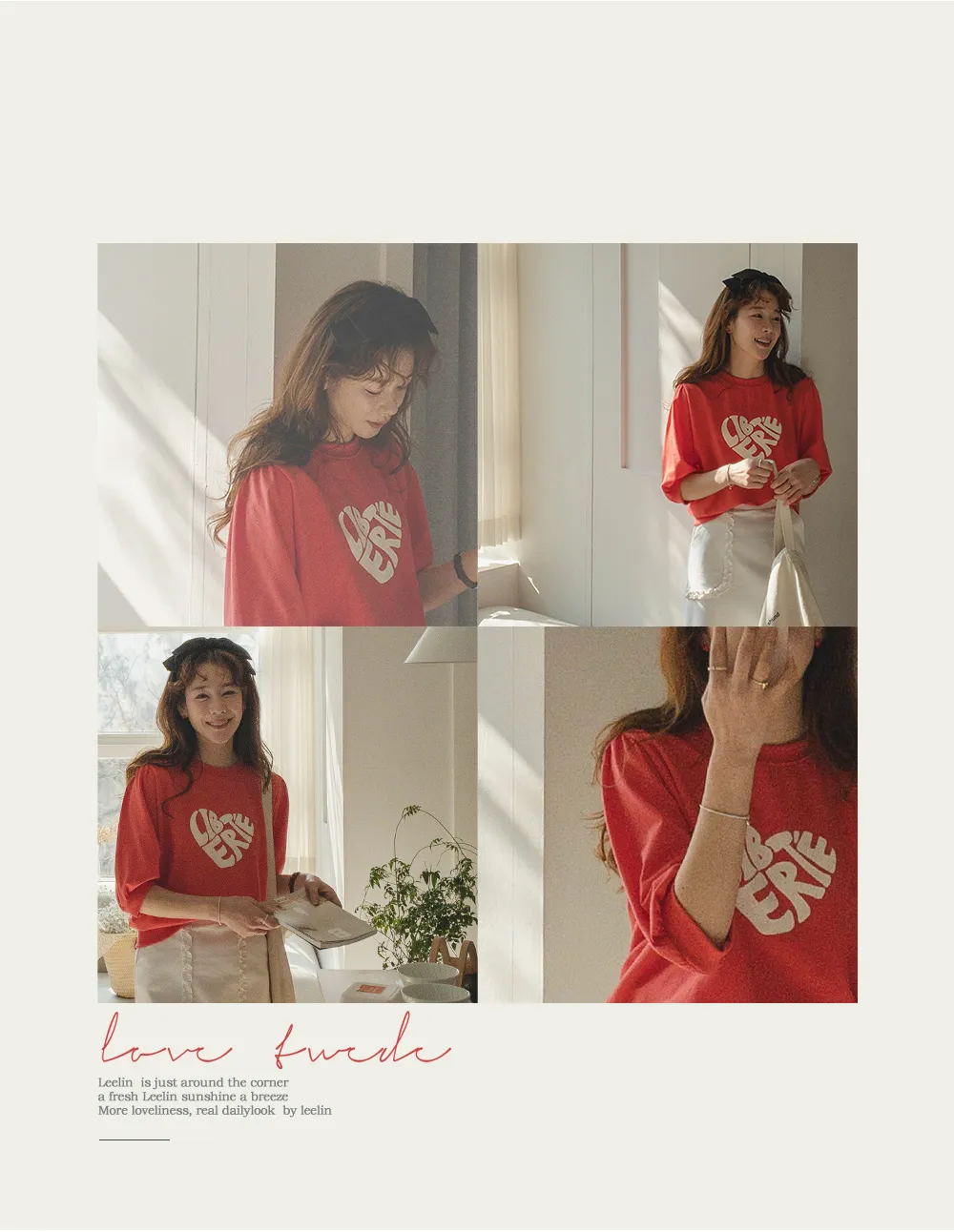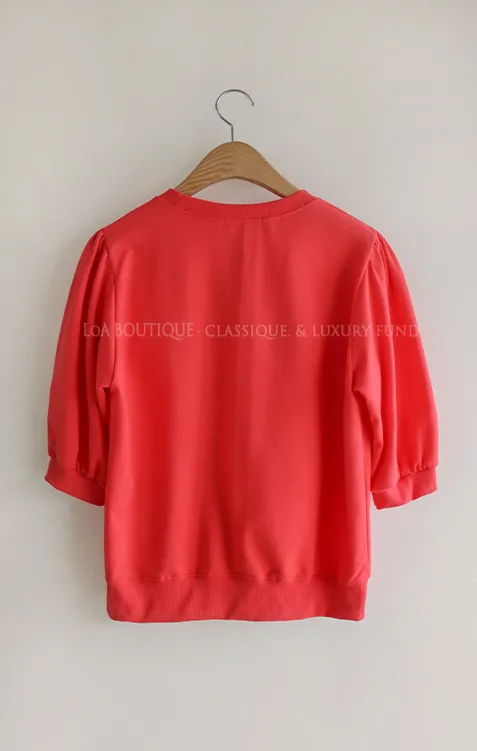 可愛心形字母印花抽褶袖短款休閒上衣