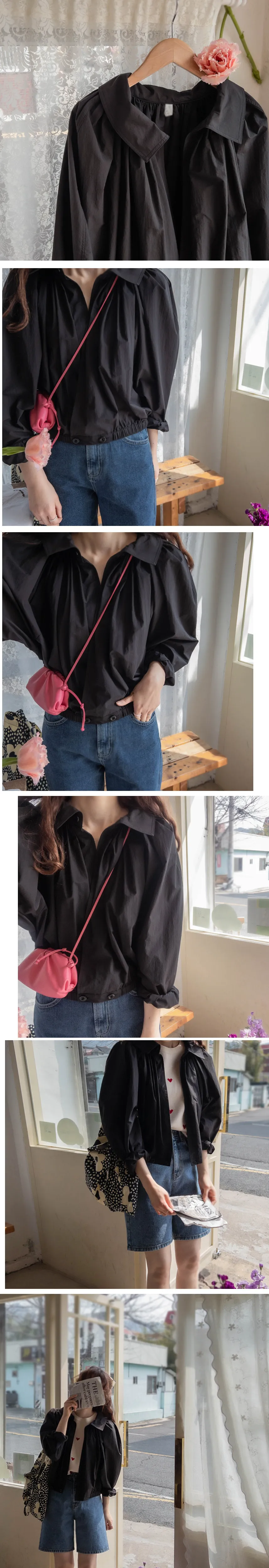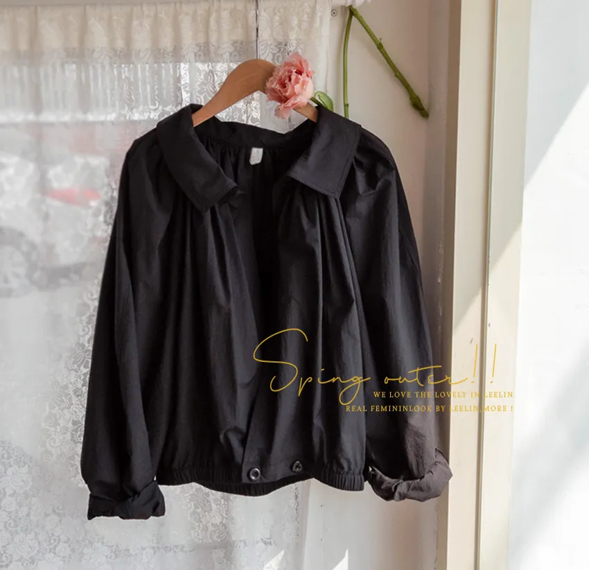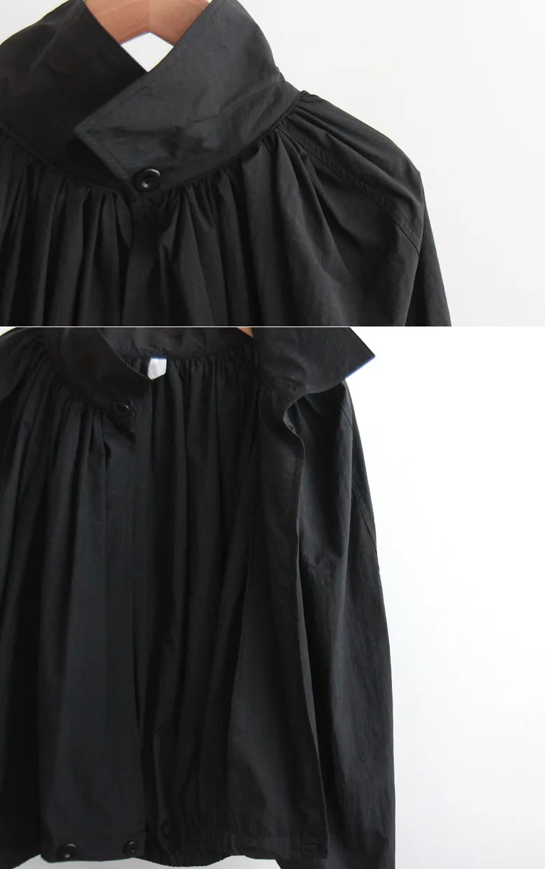 獨特下擺扣型後細摺短款風衣外套