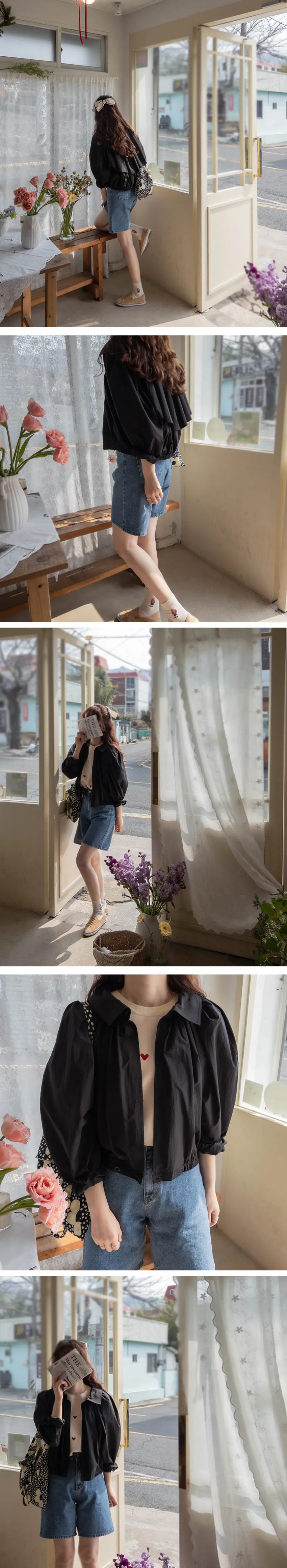 [有褶邊的四季外套] [春、夏、初秋三個季節都適用的實用風衣短外套] [後背也有褶邊,時尚感十足] [作為獨特時尚的風衣外套] [下擺有帶子,設計活潑]