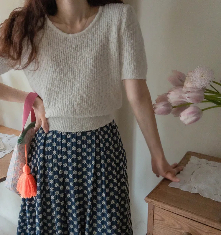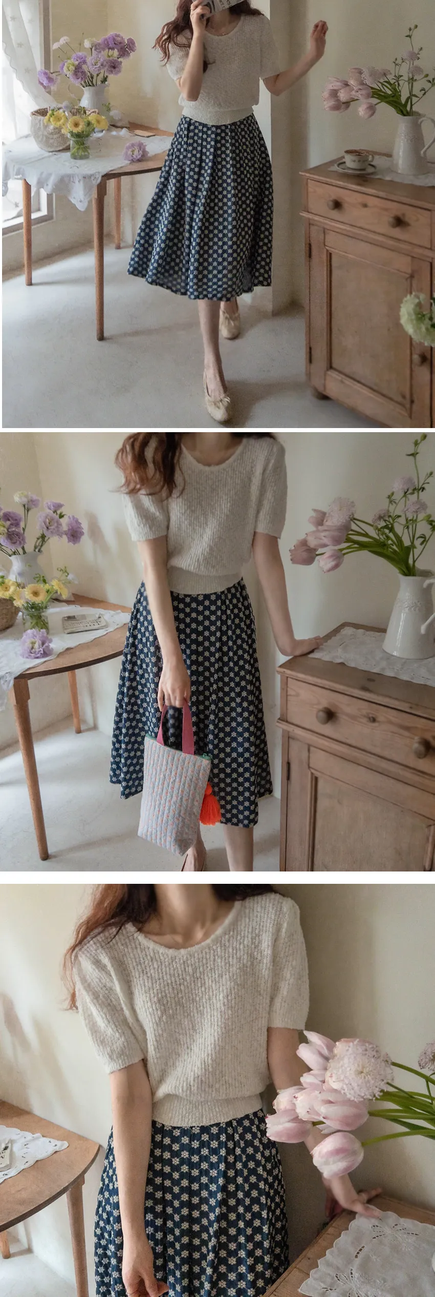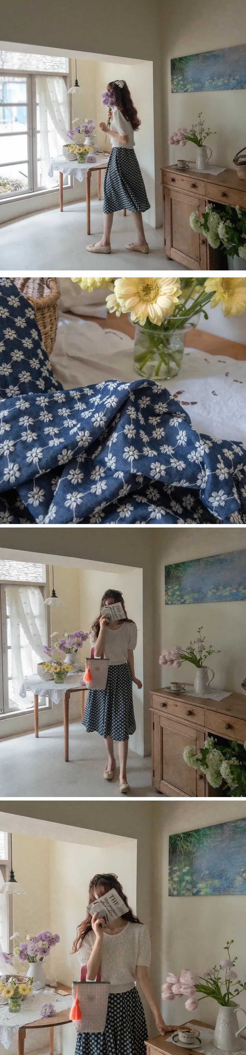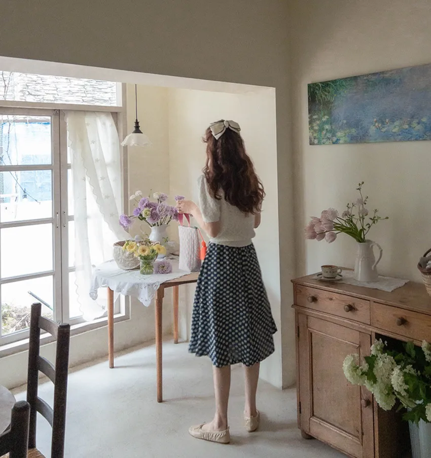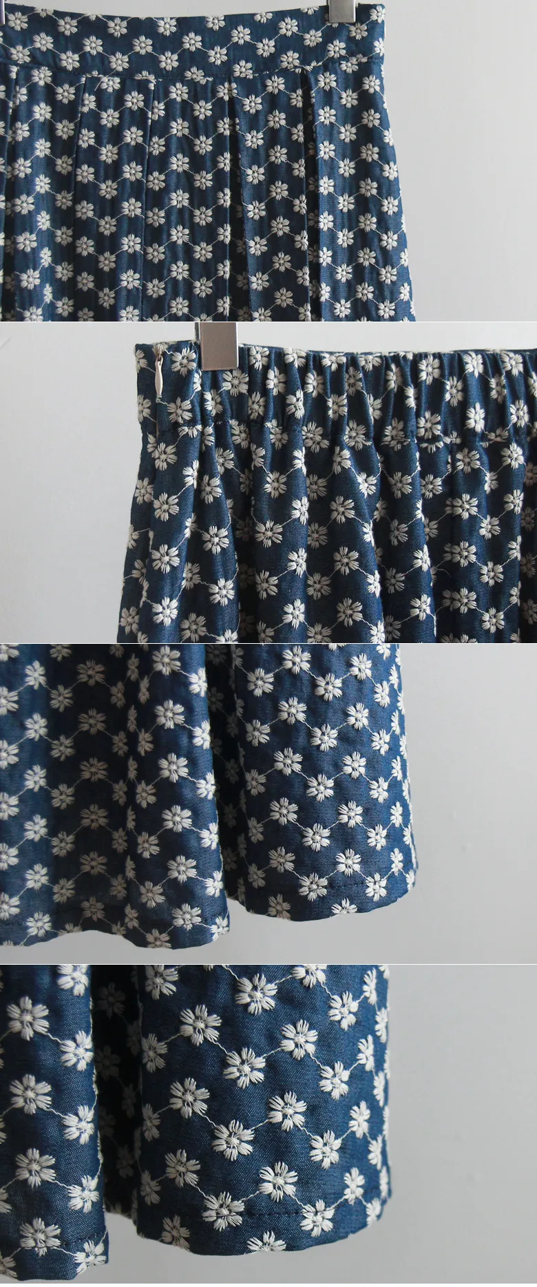 [聚酯纖維內襯] [腰部後部有綁帶處理] [側拉鍊結構] [帶有花朵刺繡的輕盈裙子] [帶有時尚褶皺線條的裙子] [柔軟的材質,顏色清新] [外出或旅行的必備單品]