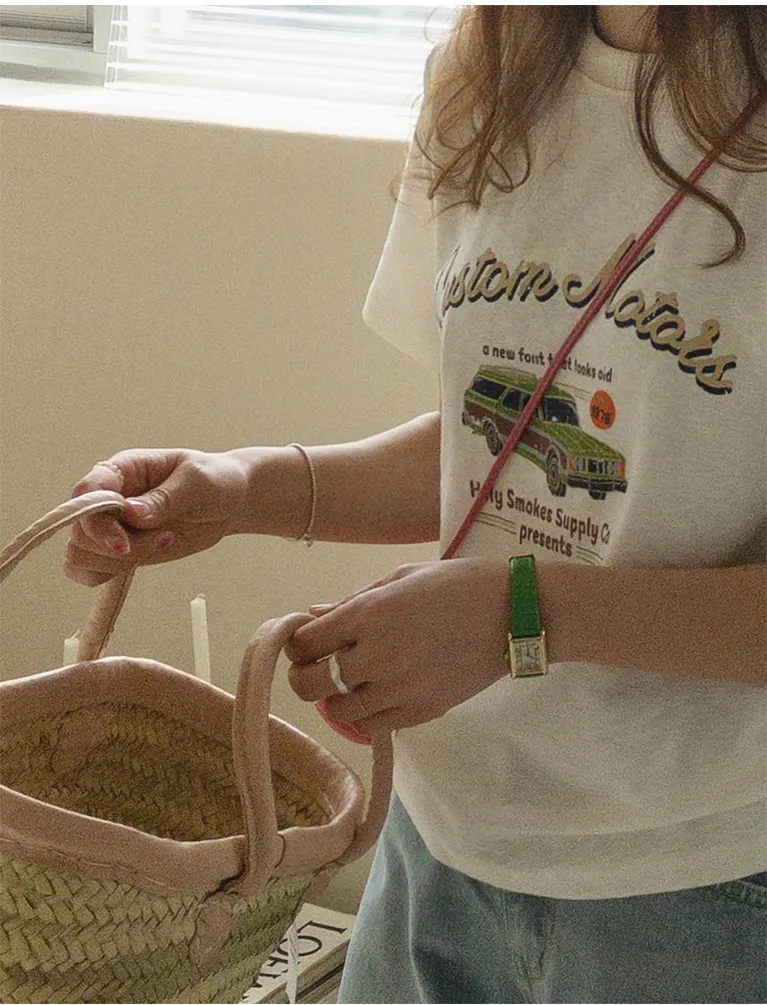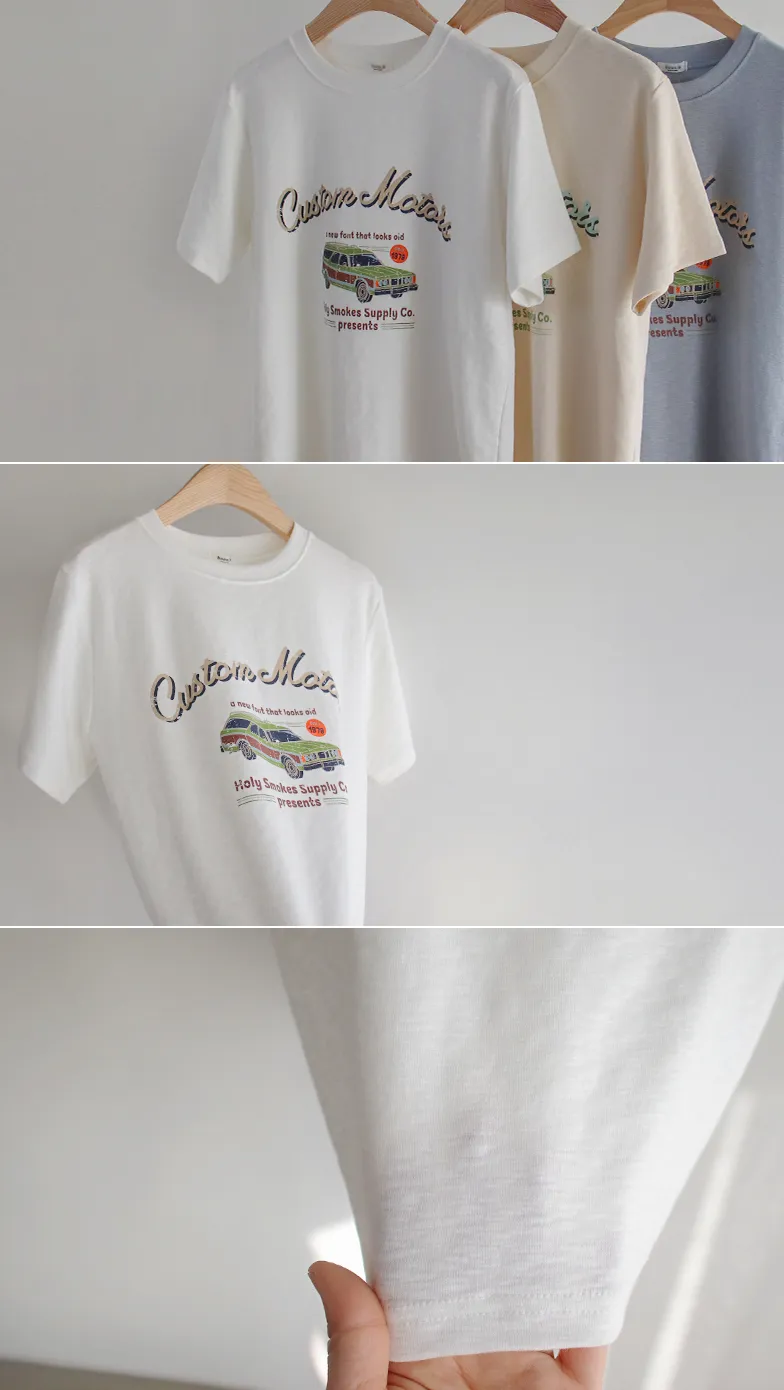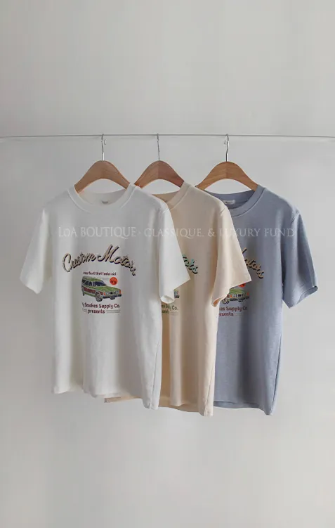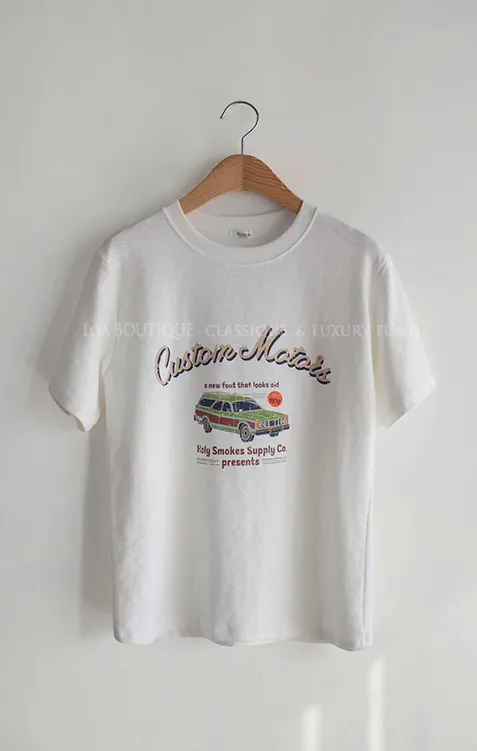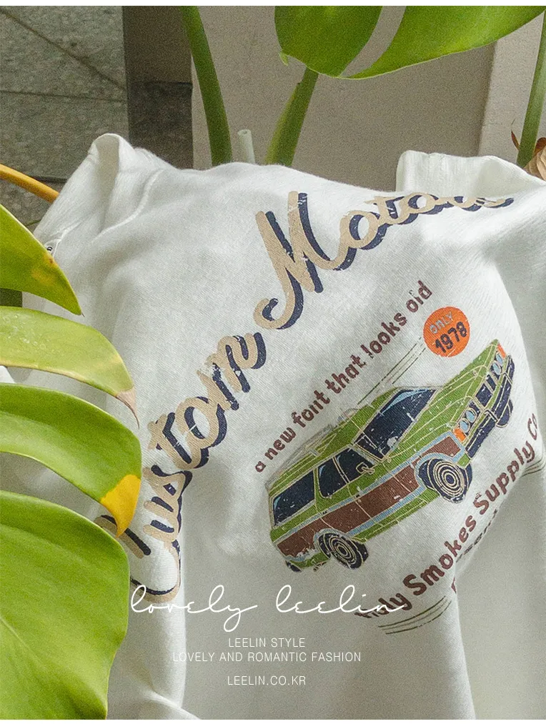 復古汽車印花柔軟莫代爾棉上衣 現貨白