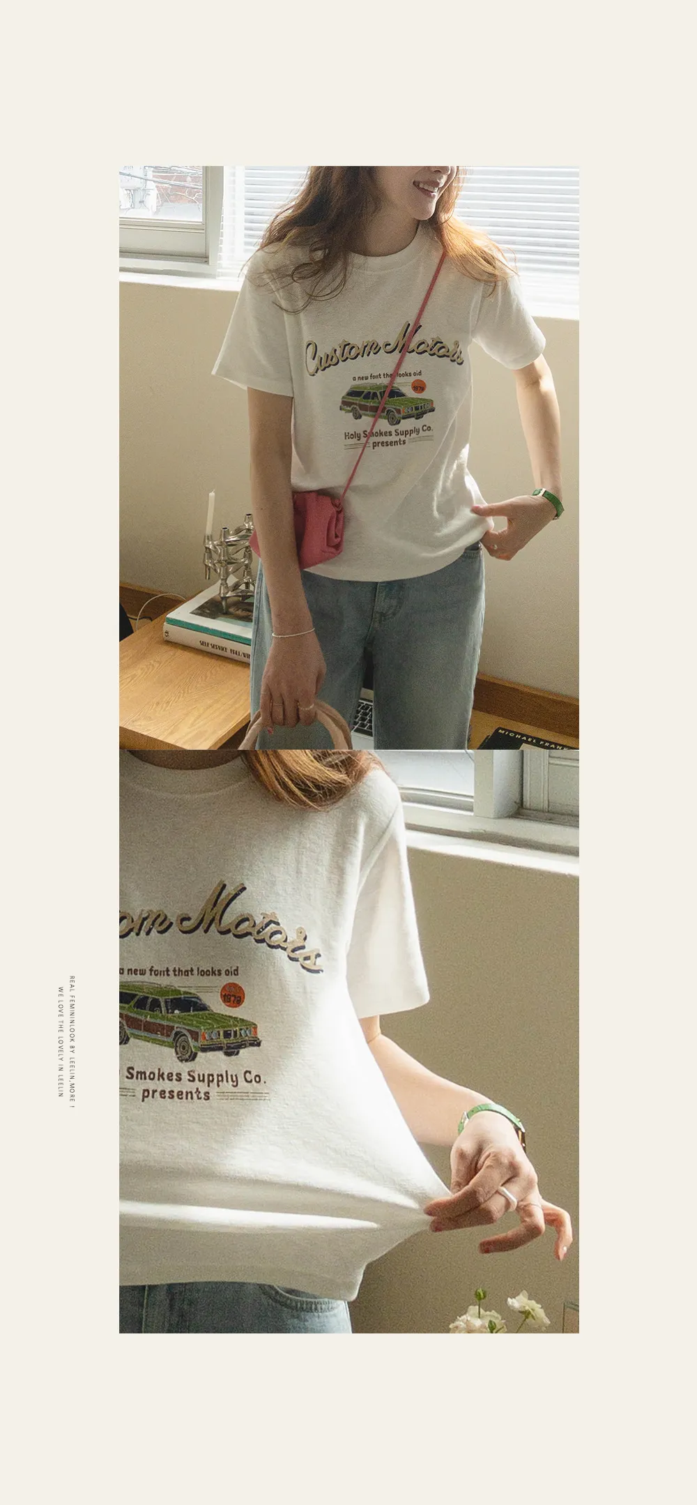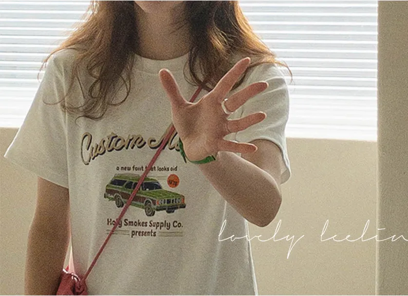 [復古感~汽車印花短袖T卹♡] [獨特的刮痕印花~] [莫代爾,質地柔軟的天然材質] [有彈性的氨綸]