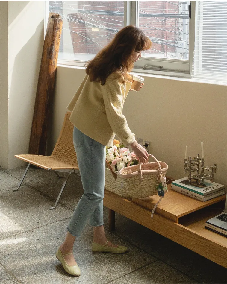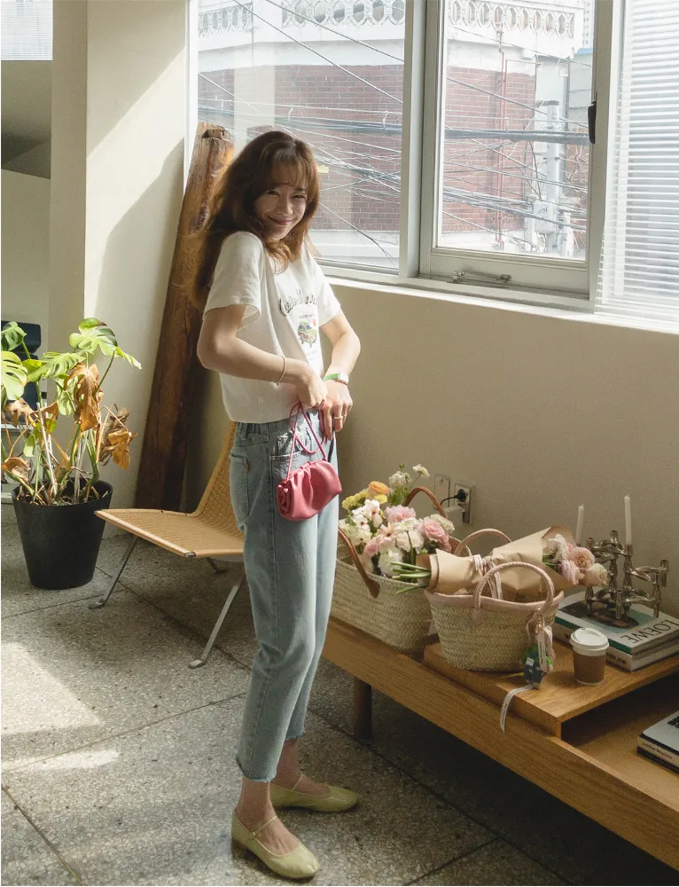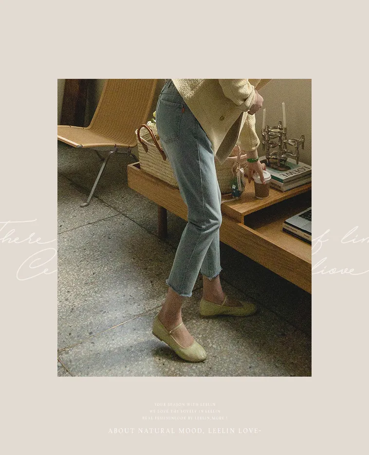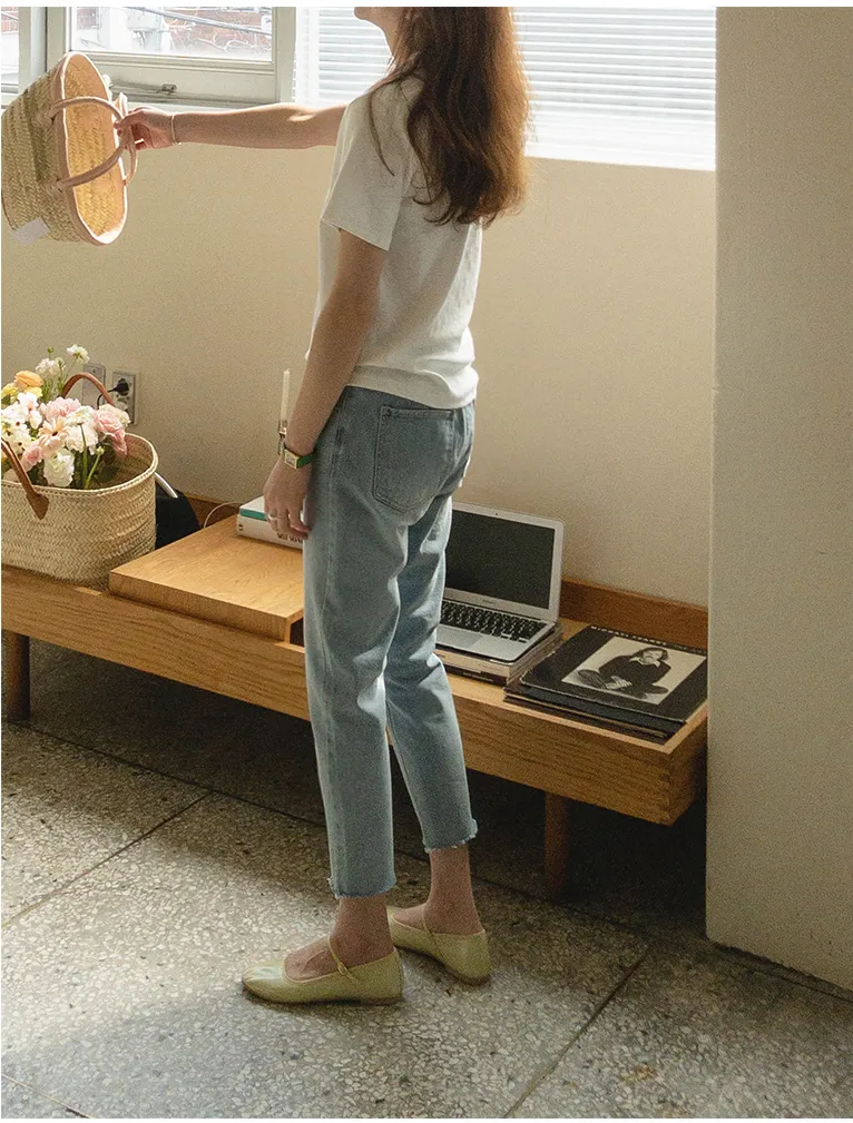 清新長度下擺自然剪裁淺藍色修身牛仔褲