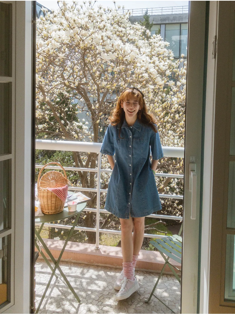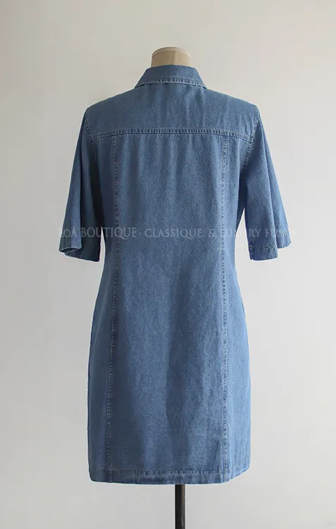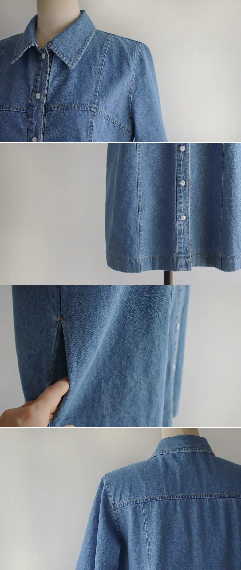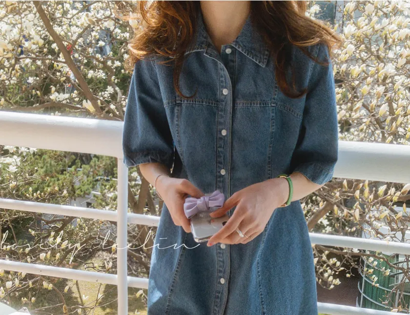漂亮線條A字版型排扣短袖牛仔連身裙