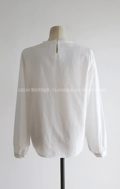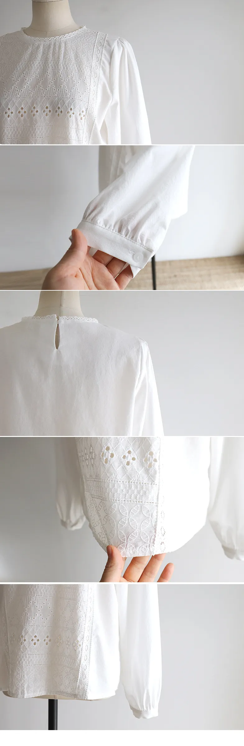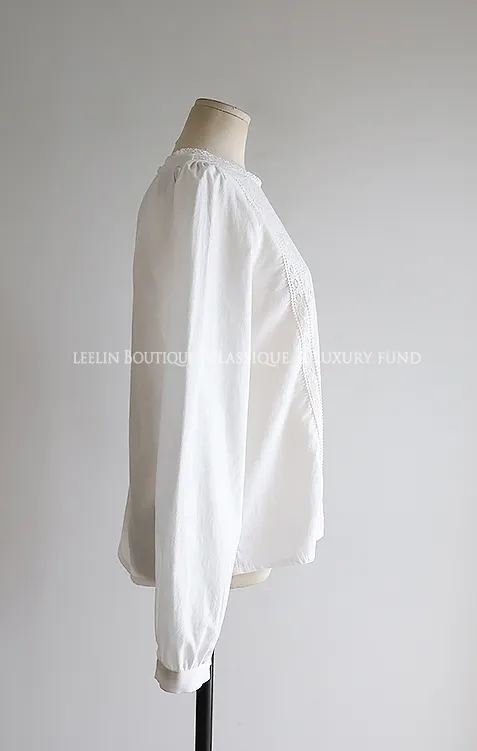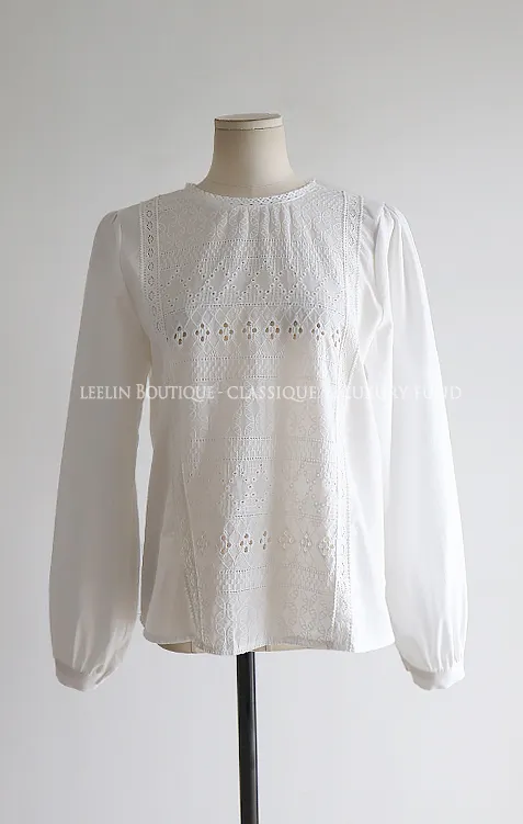 復古精緻蕾絲鏤空刺繡肩線細摺上衣
