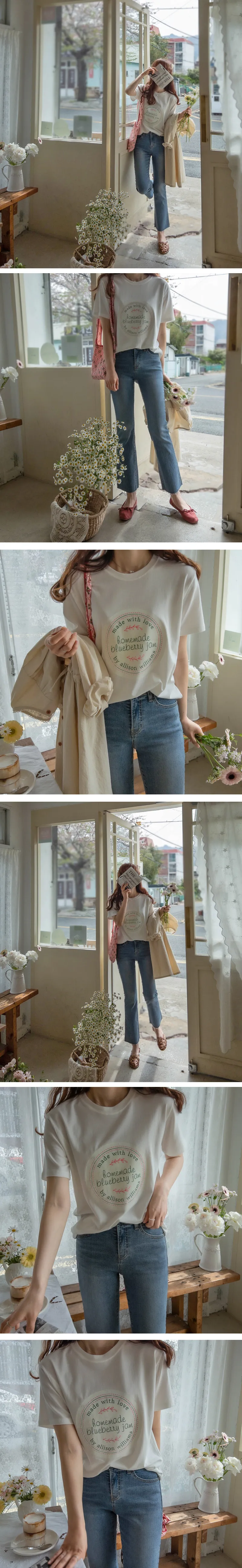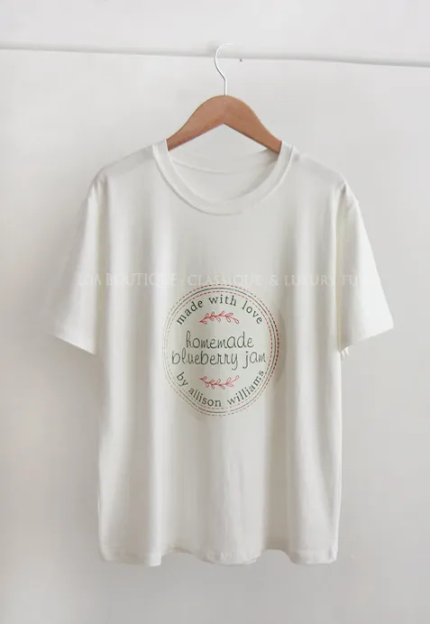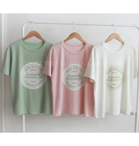 [含37% 莫代爾和6% 氨綸][字母的圓形印花T 卹][柔和的顏色][柔軟的莫代爾材質和彈性6% 氨綸][柔軟,穿著舒適、可以保持不同顏色的單品]【推薦作為日常單品】