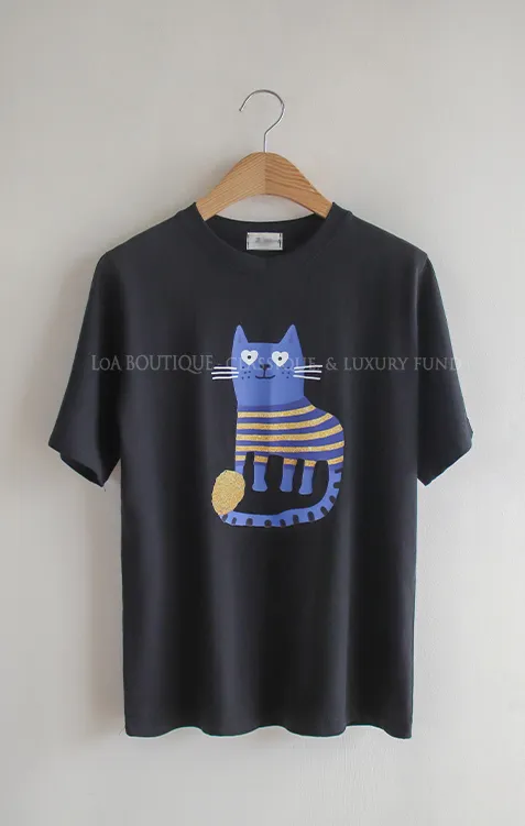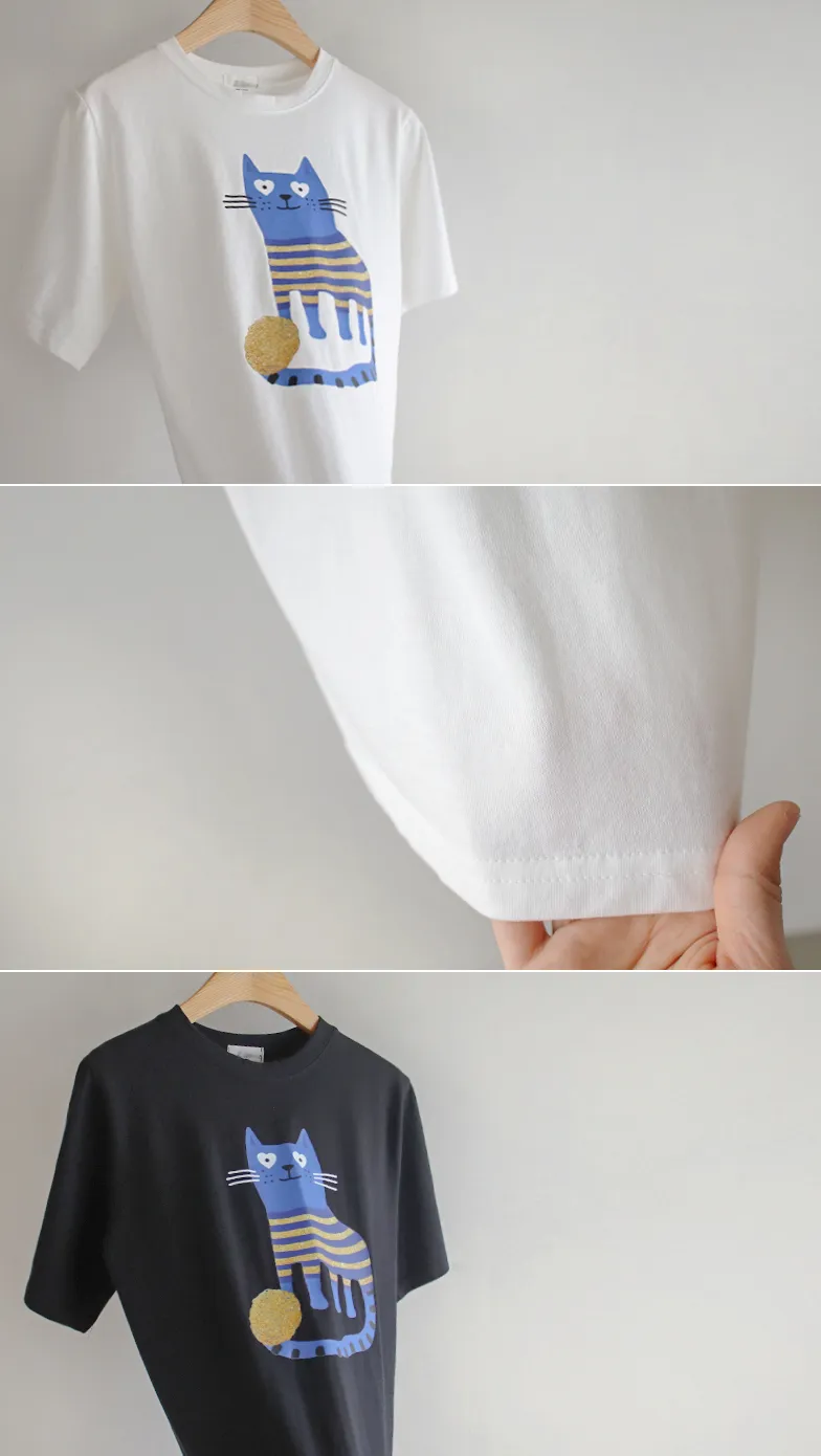 [心形流行上衣♡,一隻有可愛心形眼睛的藍色貓咪] [柔軟〜] [帶有漂亮圖案的T卹