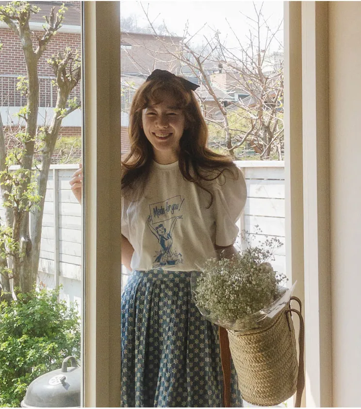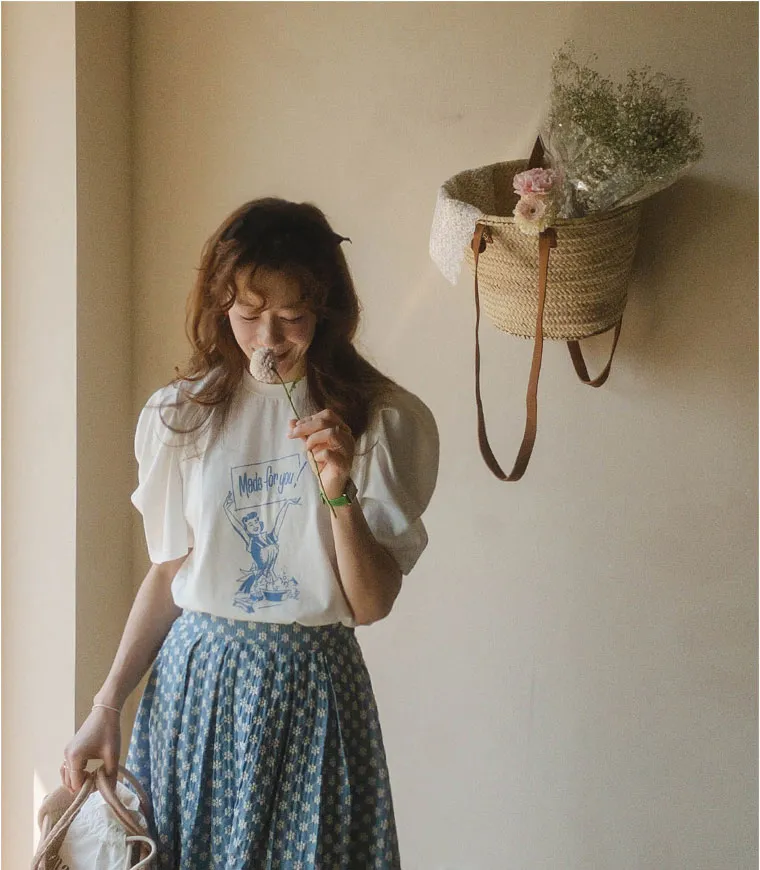 [可愛氣球袖上衣♥] 【一件T卹就完成了一套可愛的穿搭! ! ]