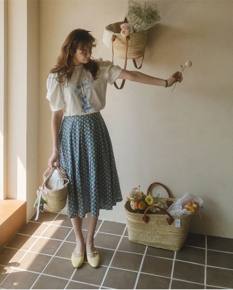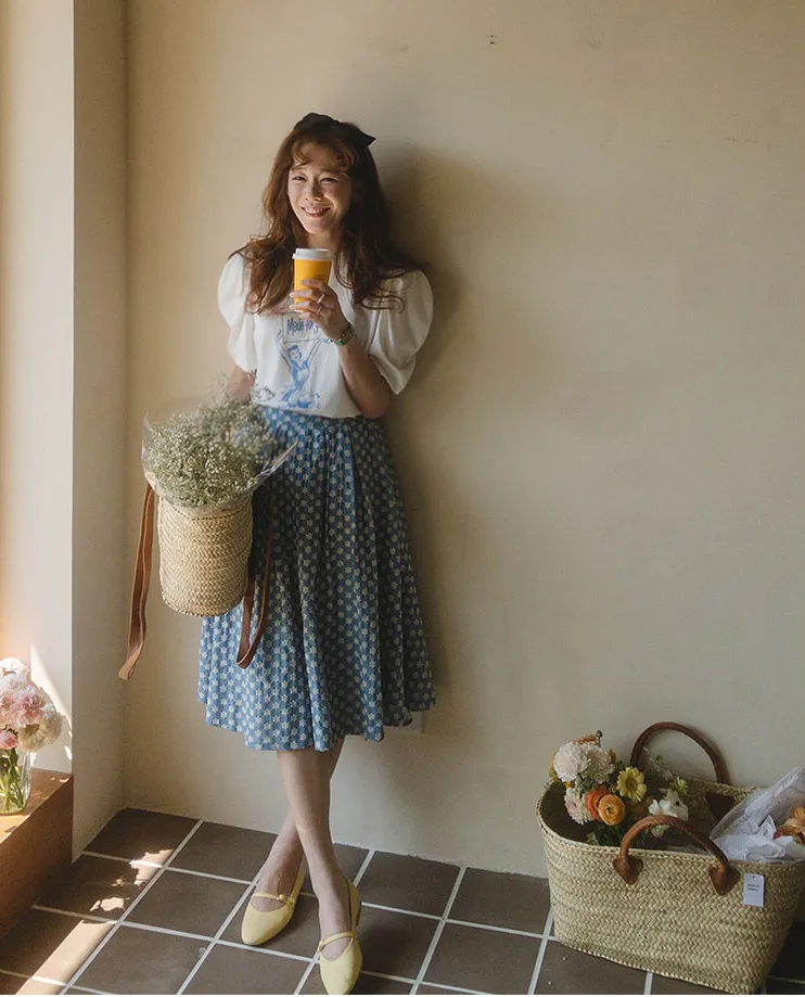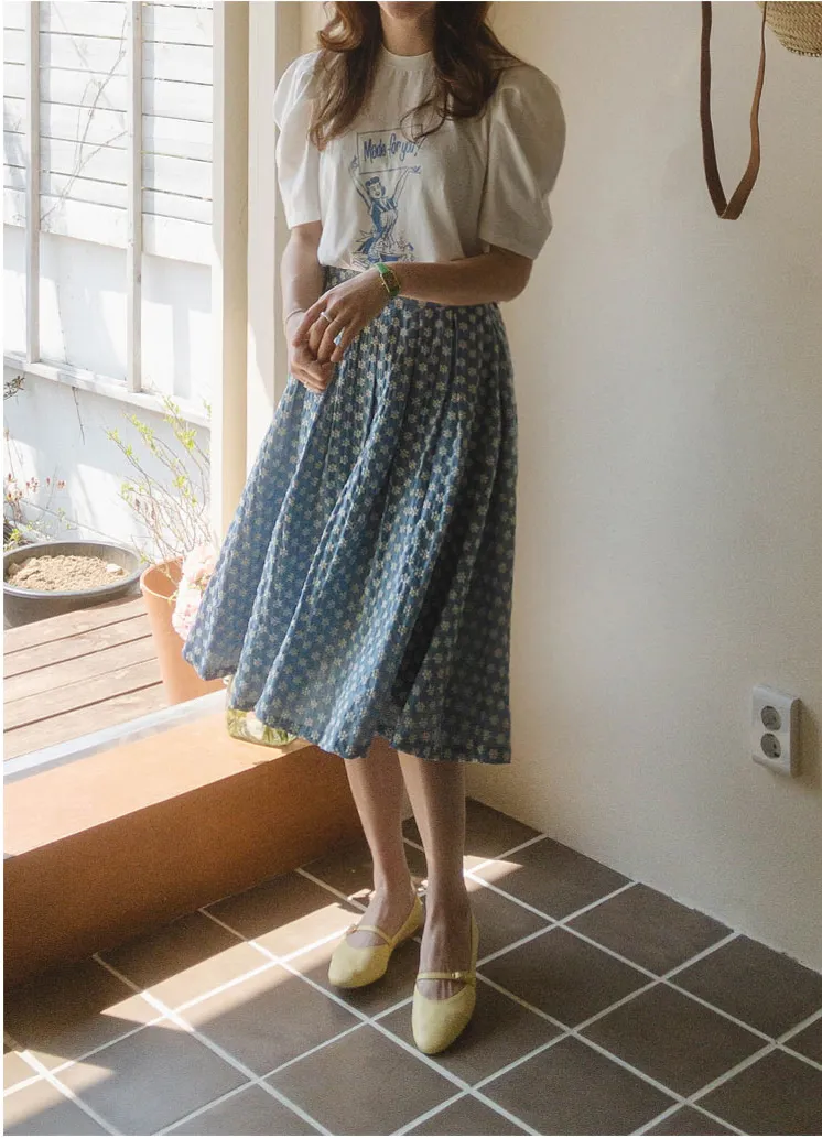細緻刺繡花朵柔軟傘襬中長裙