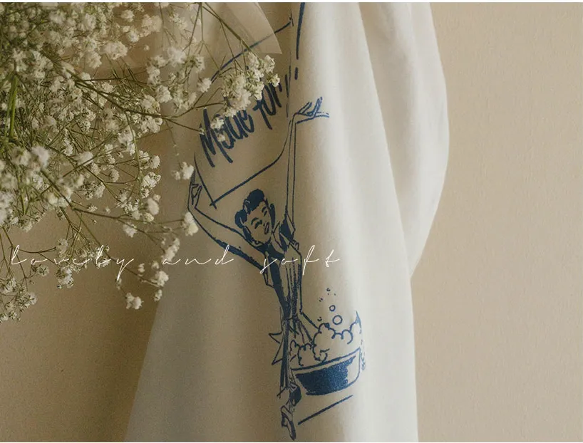 俏麗女孩印花肩線針褶柔軟光滑莫代爾棉上衣