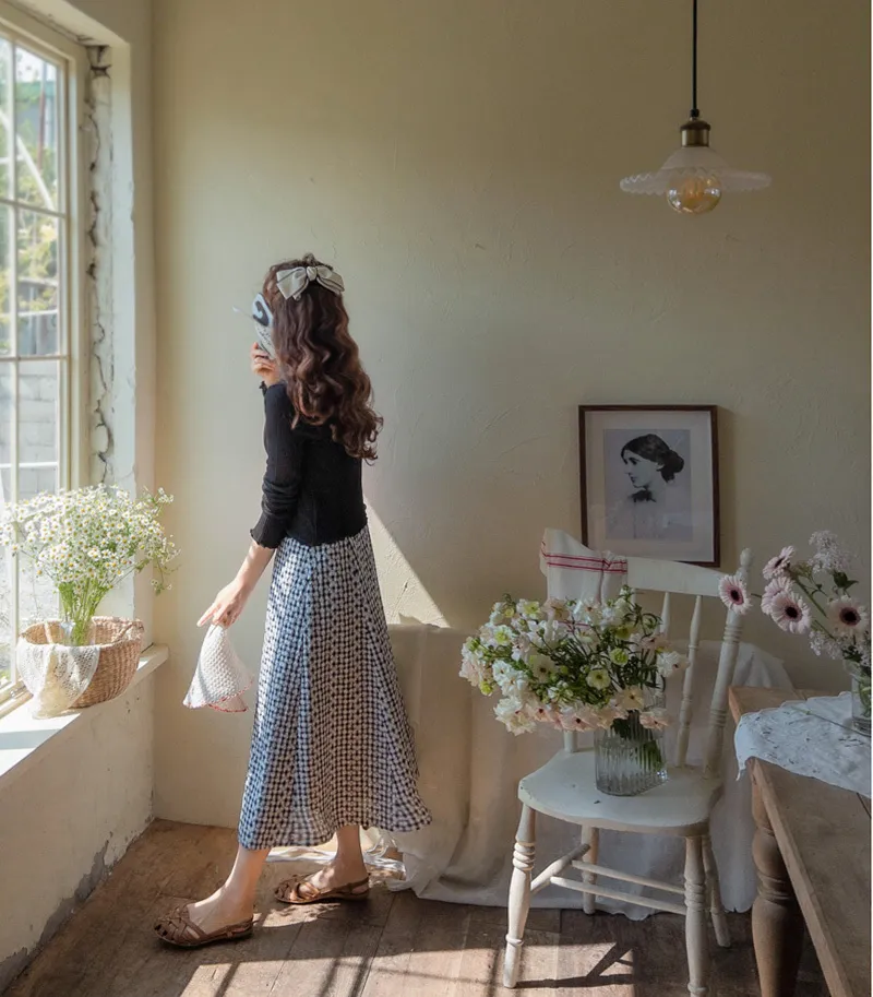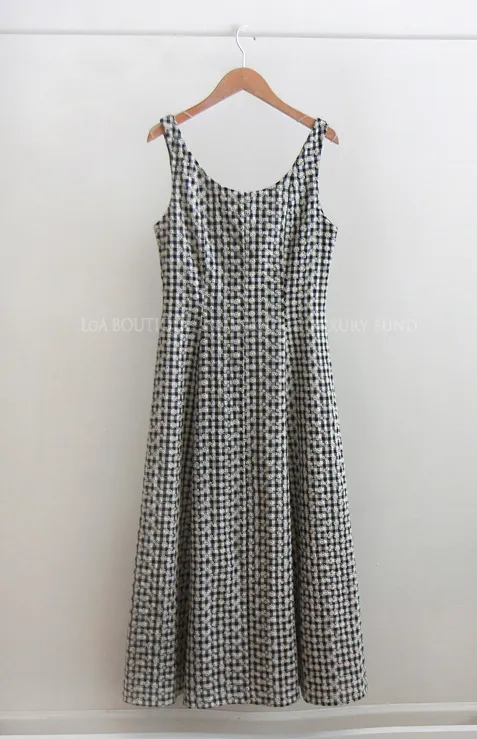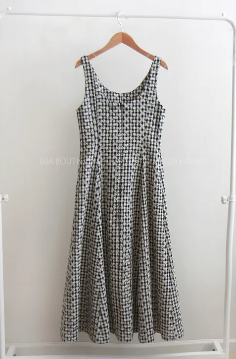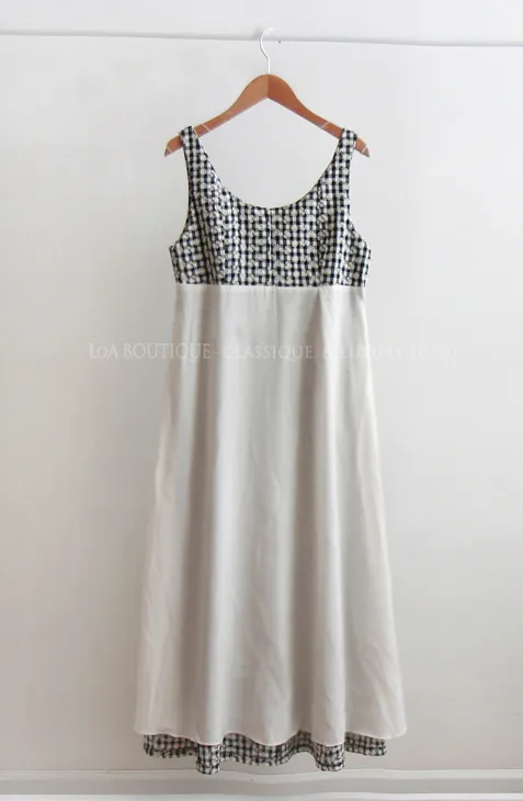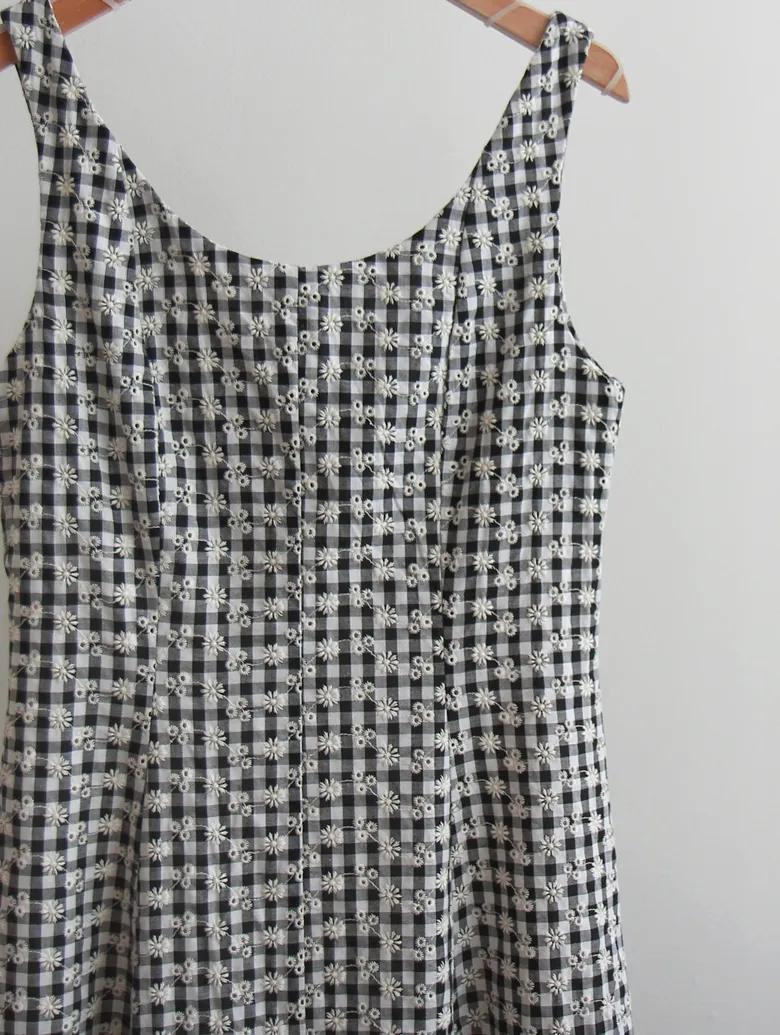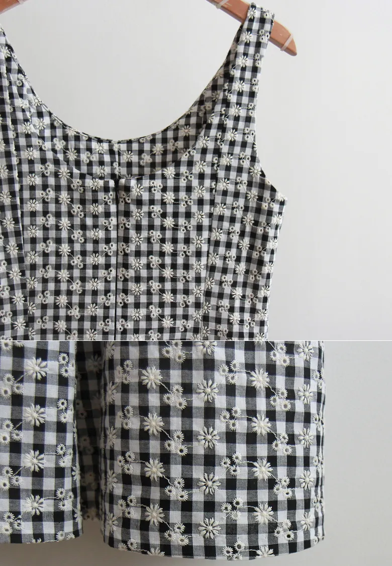 漂亮線條裙擺刺繡花朵格紋連身裙