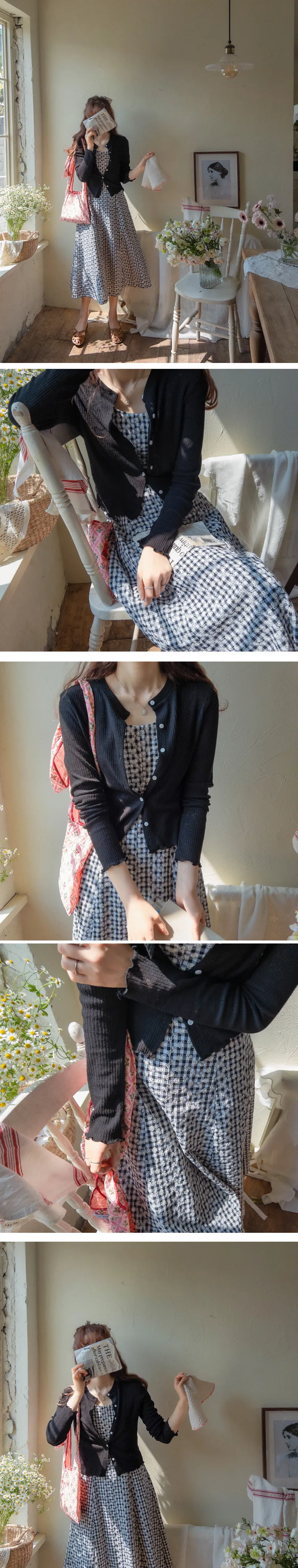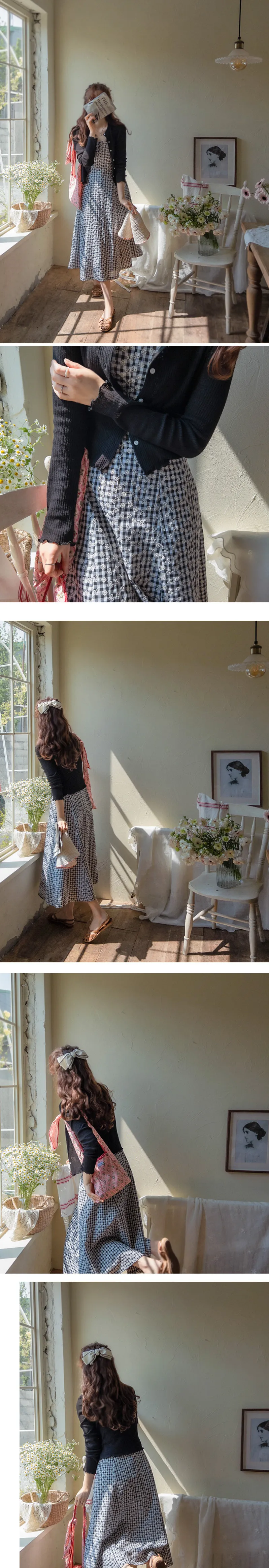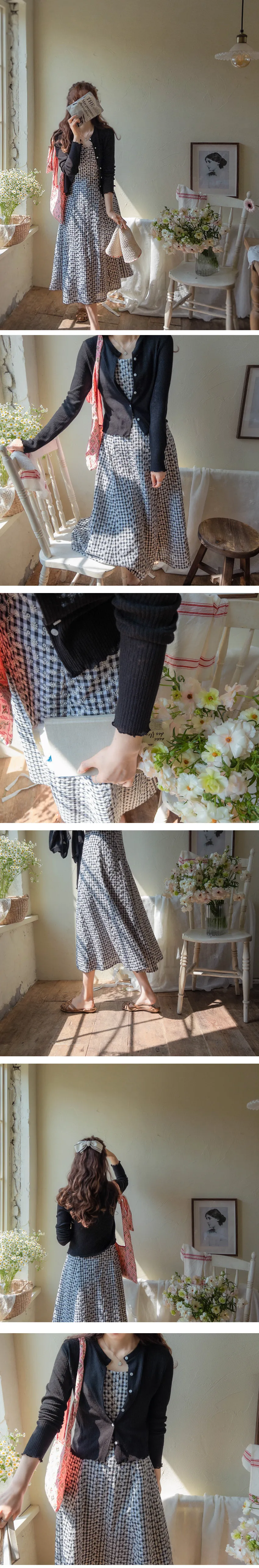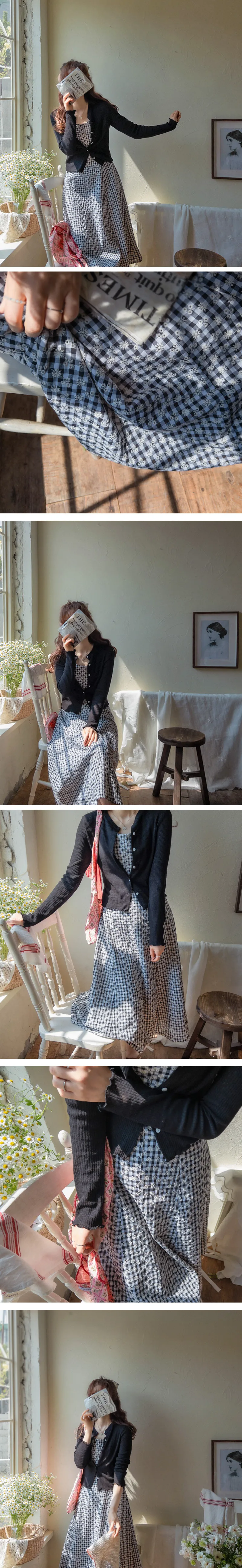 [聚酯襯裡][後部拉鍊結構][格子圖案迷你刺繡花朵的漂亮線條][從現在到夏天搭配開衫都很棒][時尚漂亮線條的連身裙]