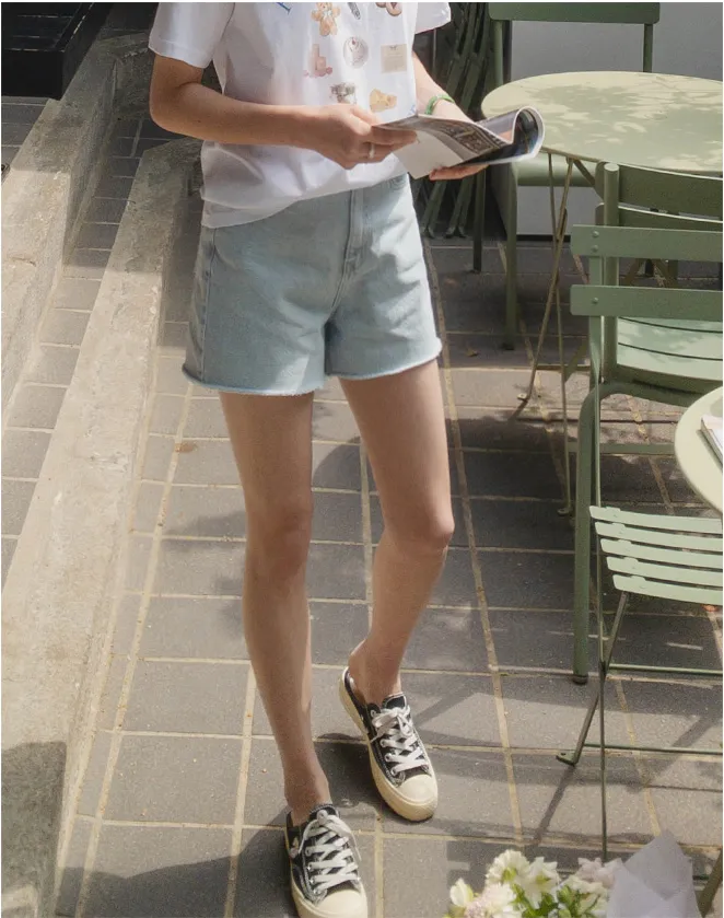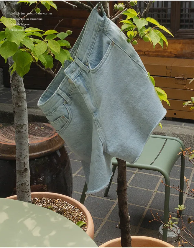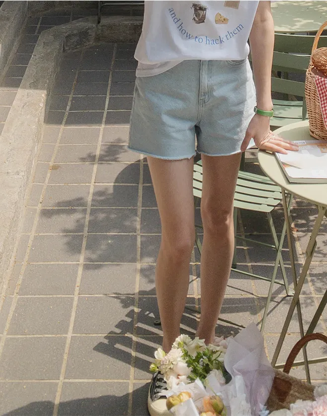 漂亮下擺自然剪裁半A字修身牛仔短褲