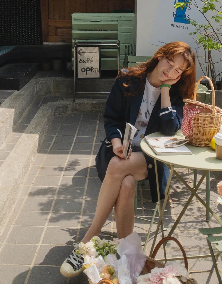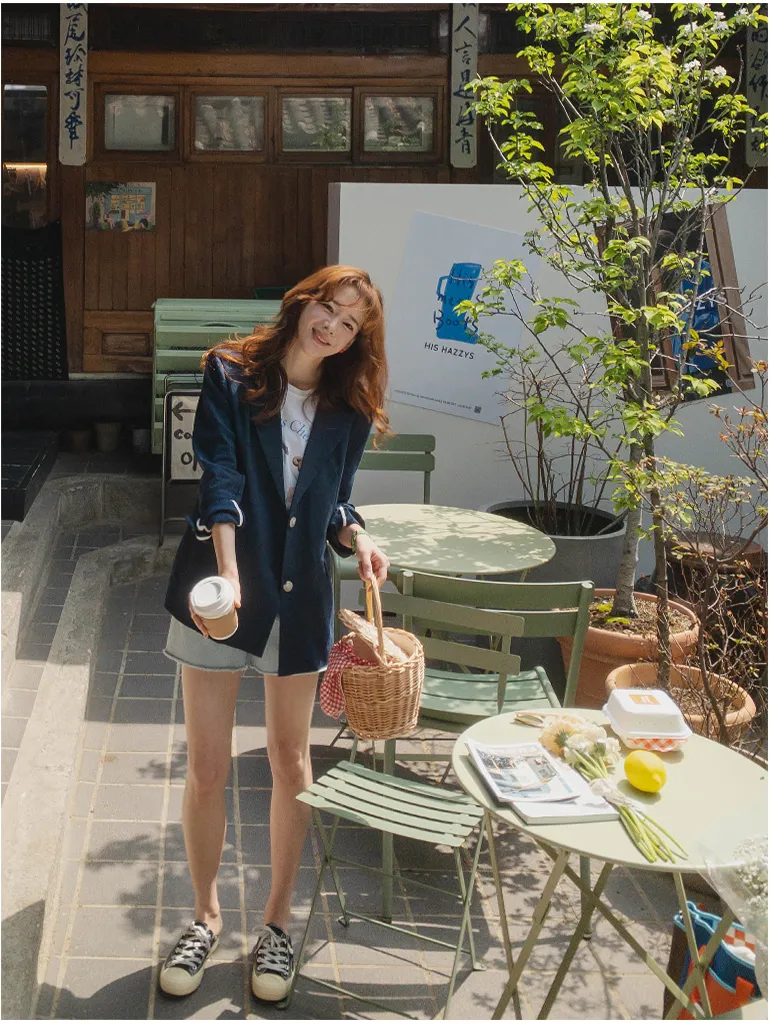 可愛心形LOVE字母刺繡圓扣翻領上衣 黑色