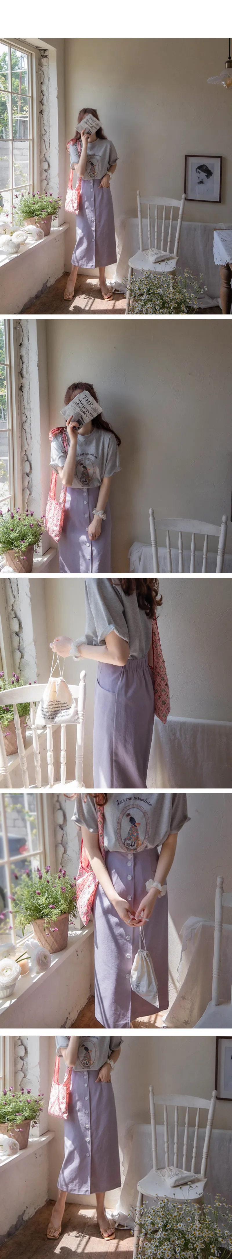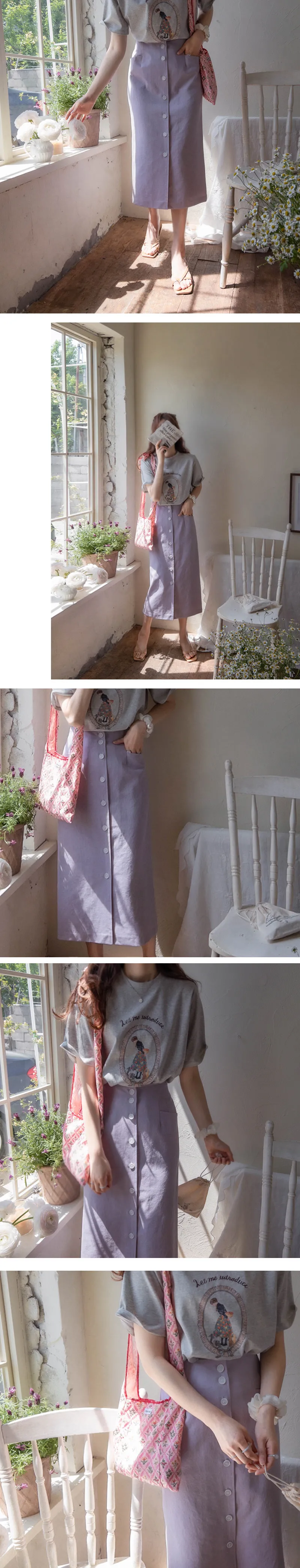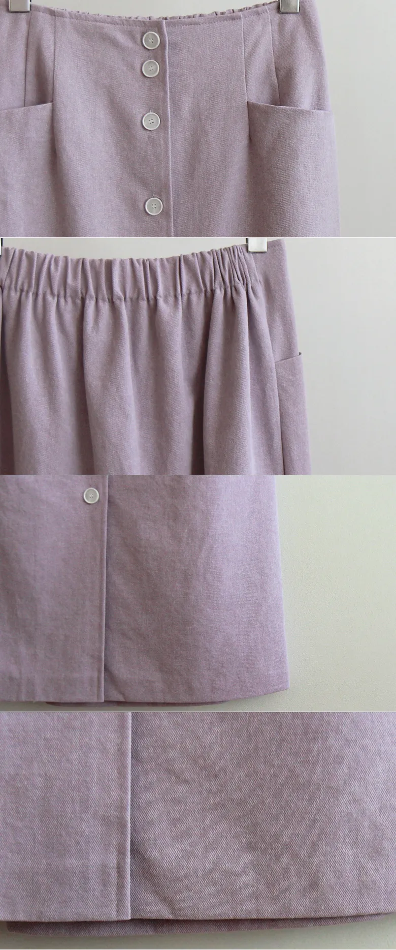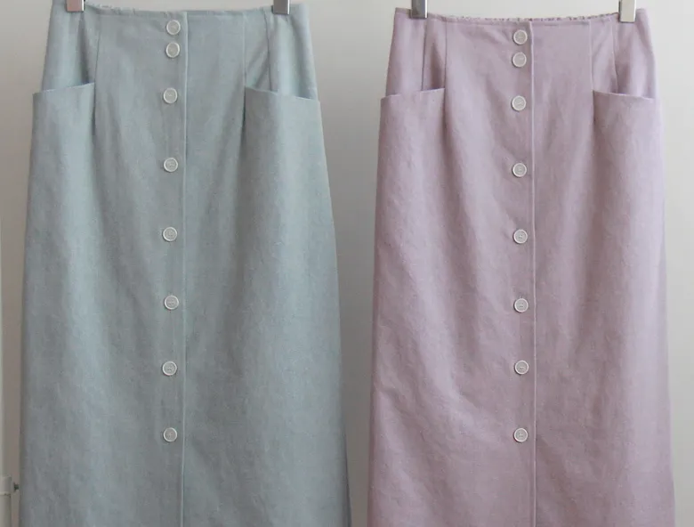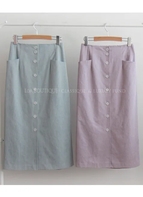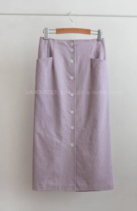 柔和色彩感精緻排扣設計直筒修身中長裙 淡紫色/淡藍色