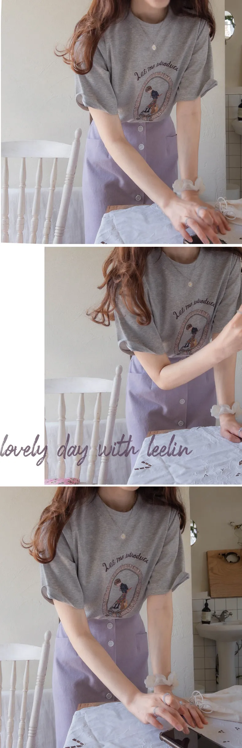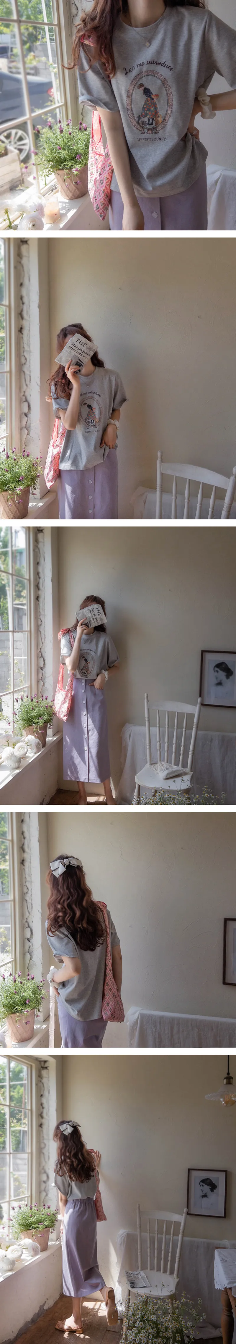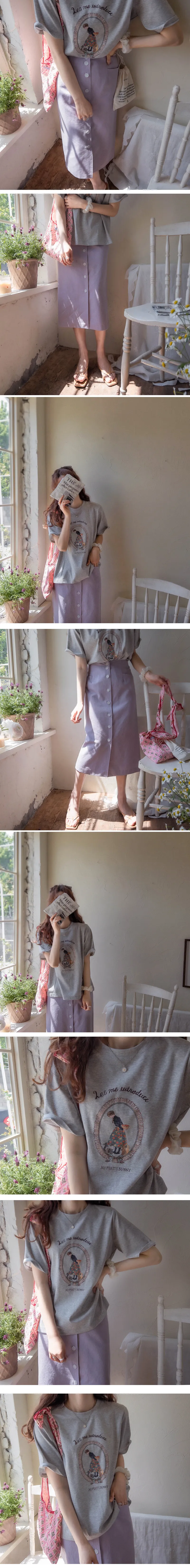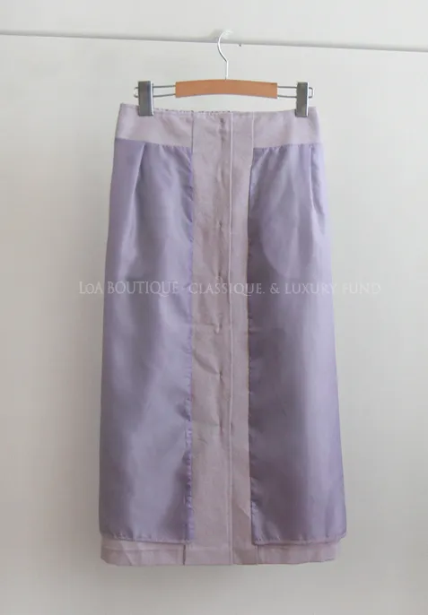 柔和色彩感精緻排扣設計直筒修身中長裙 淡紫色/淡藍色