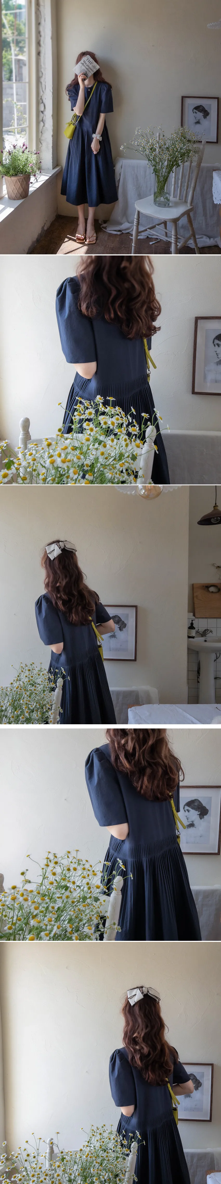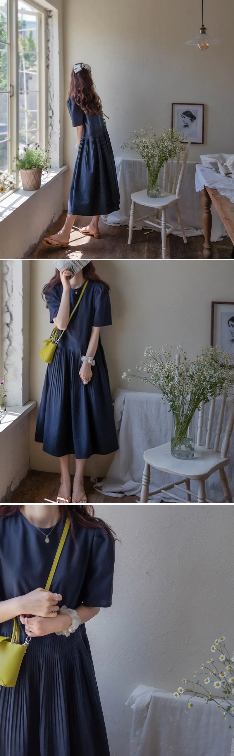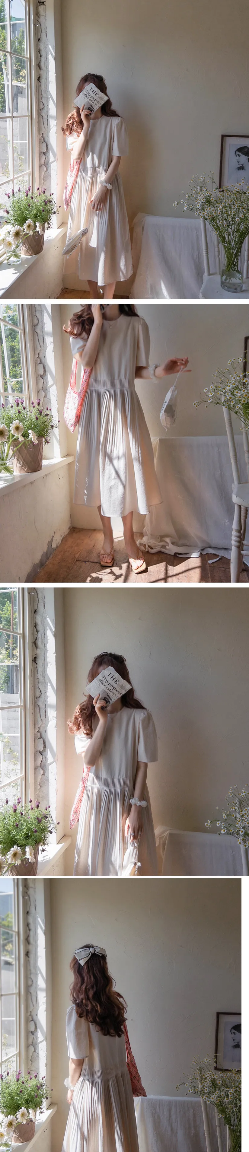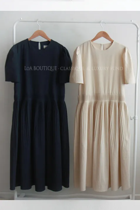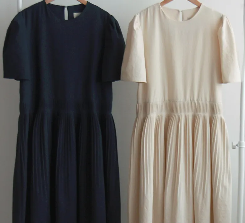][連身裙,時尚褶皺,時尚合身][基本但獨特的設計][外出時可以穿著的輕便連身裙]