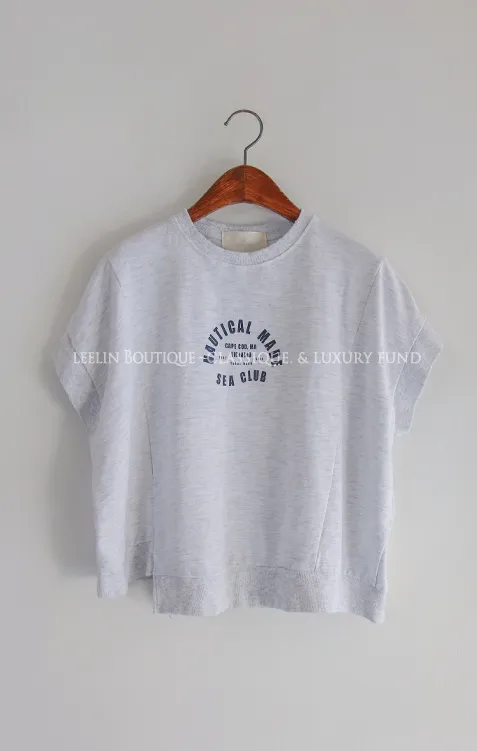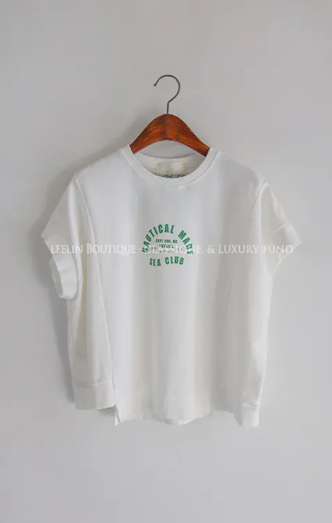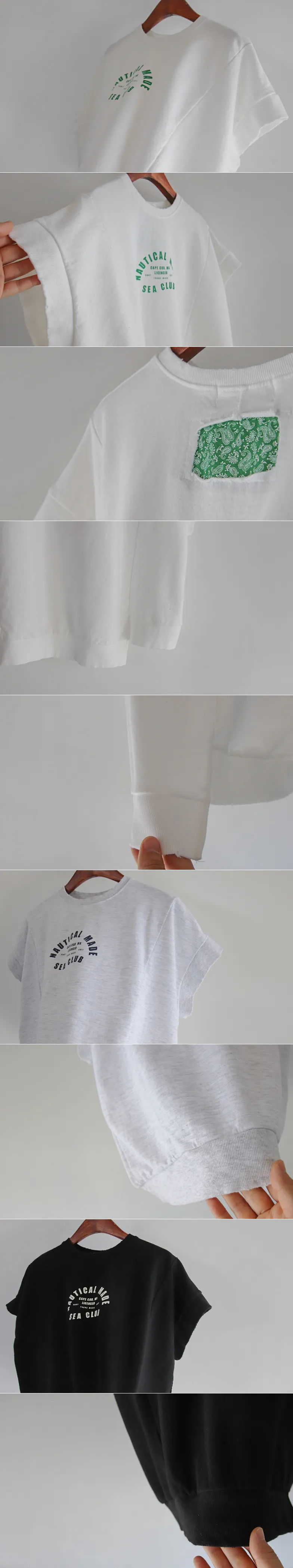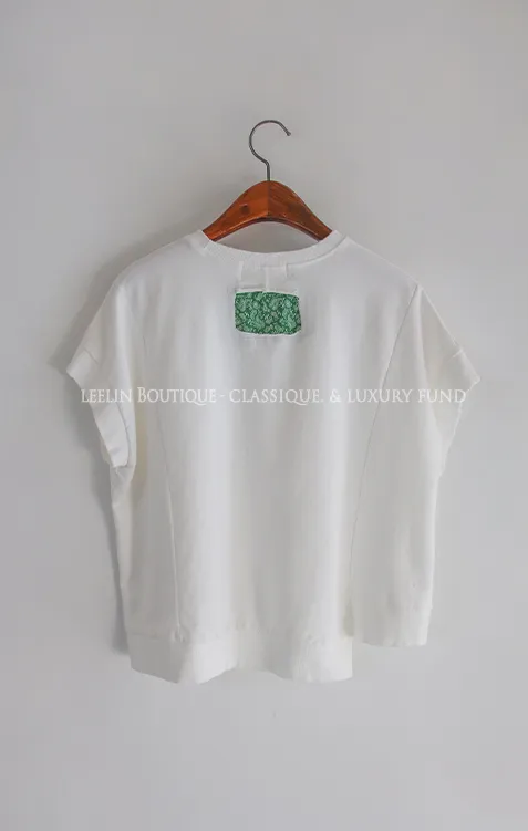 可愛不規則下擺剪裁字母印花後補丁上衣
