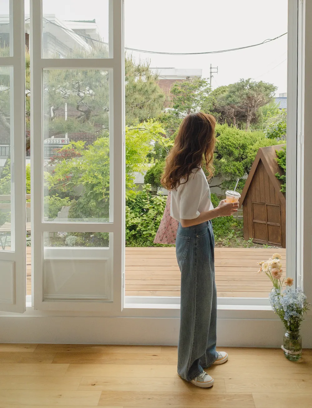 漂亮色彩魅力後擺開衩柔軟彈性圓領上衣