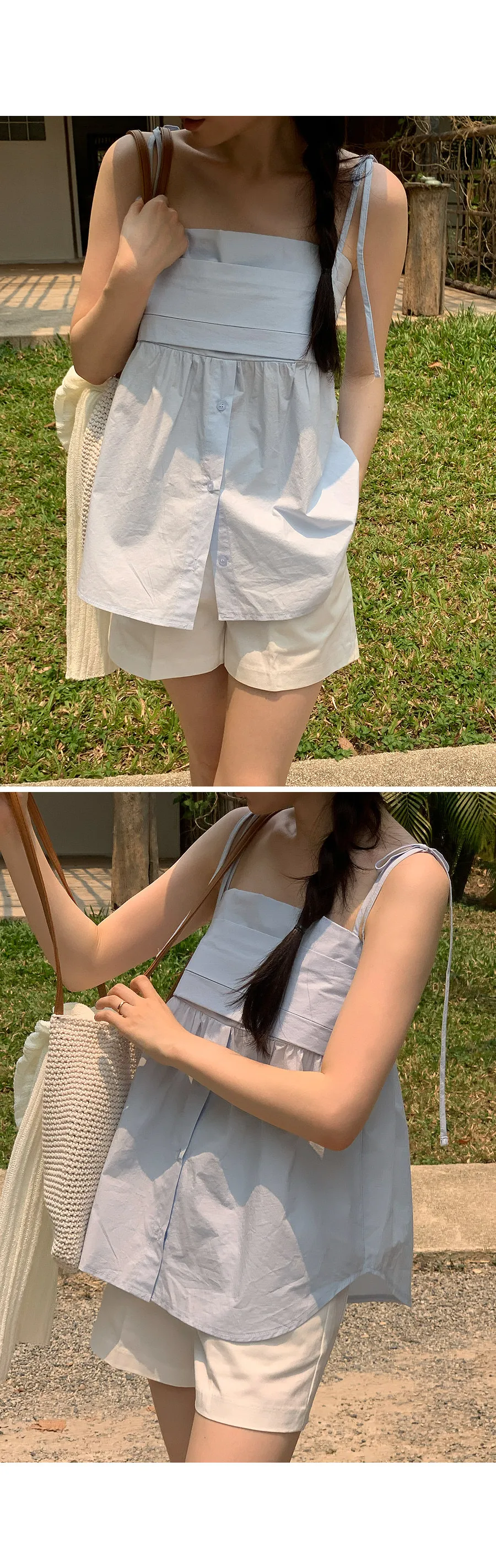 優質無袖上衣!後背帶有煙熏帶,帶有可愛的情調,前側的鈕扣設計帶有橫向剪裁細節,凸顯出獨特的魅力:)
