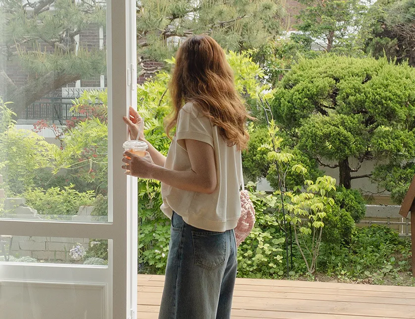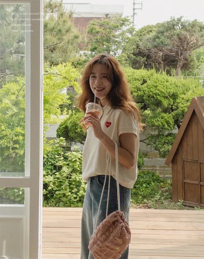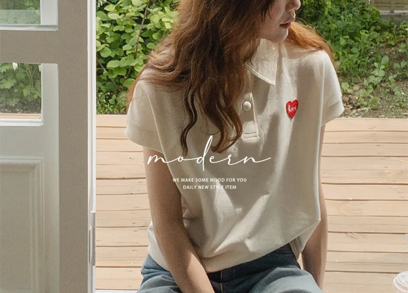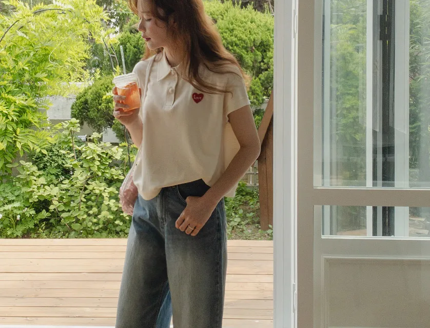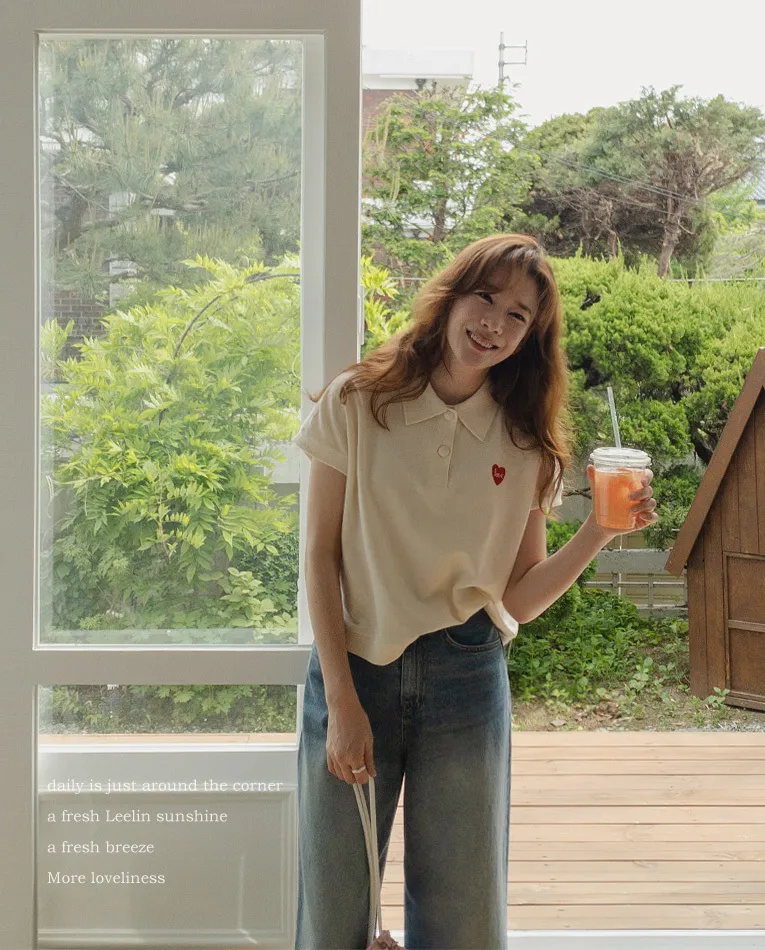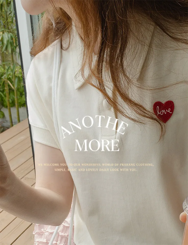 【迷人心型貼片的上衣】【圓圓的可愛豆扣~】【半短款】【穿著舒適♡】