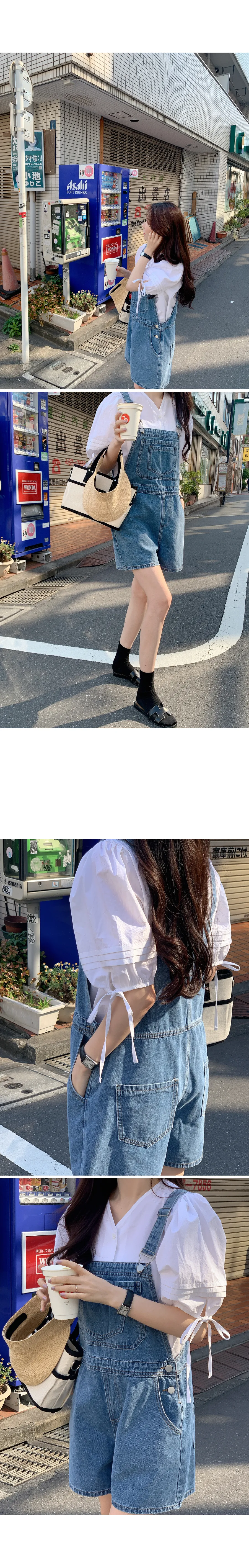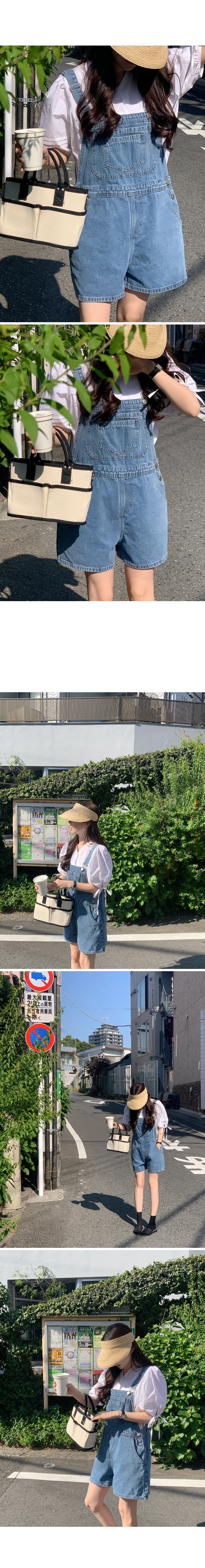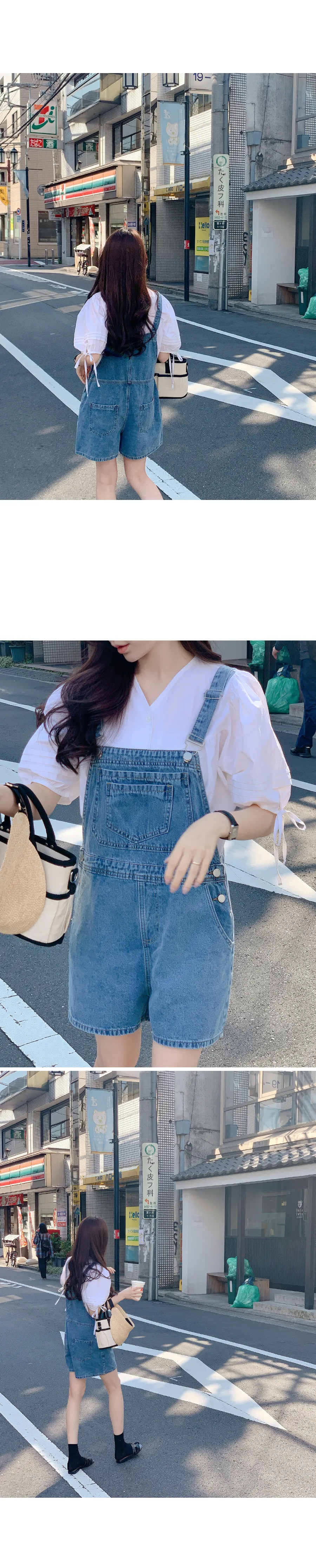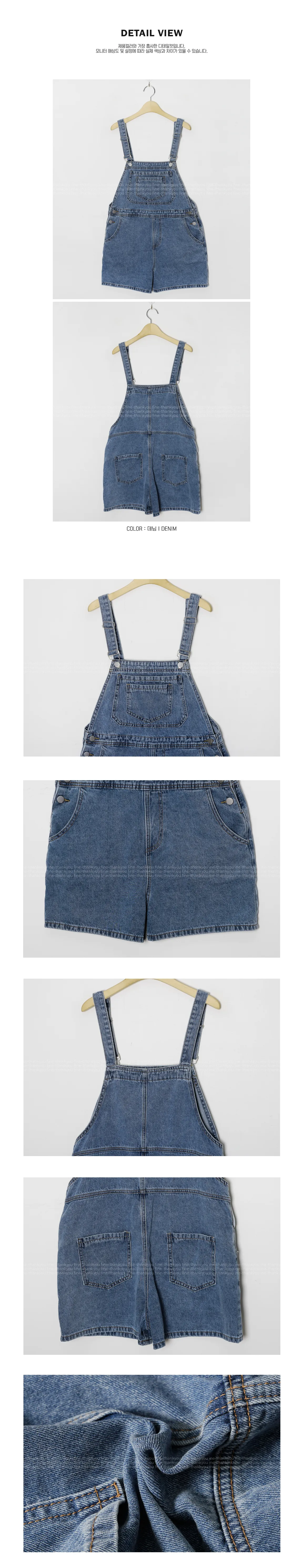 可愛氛圍前袋鼠口袋牛仔連身短褲