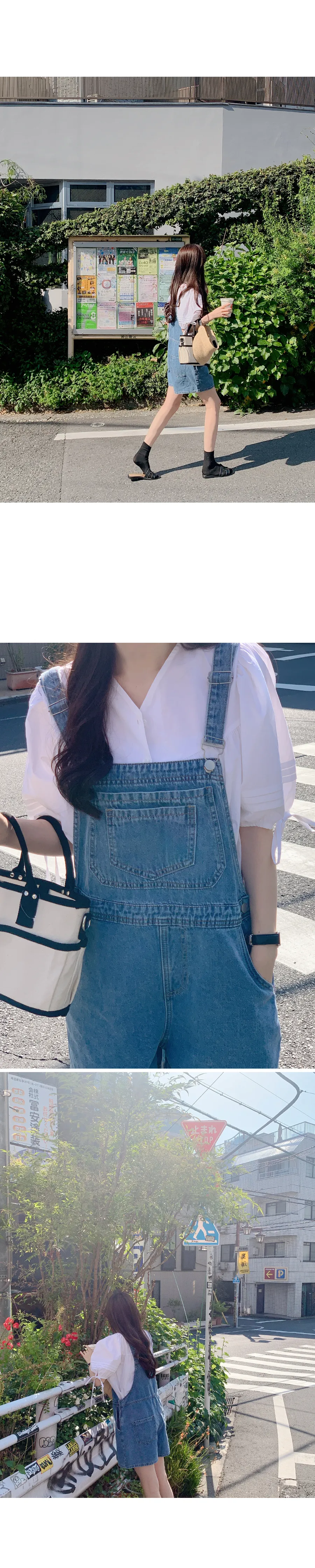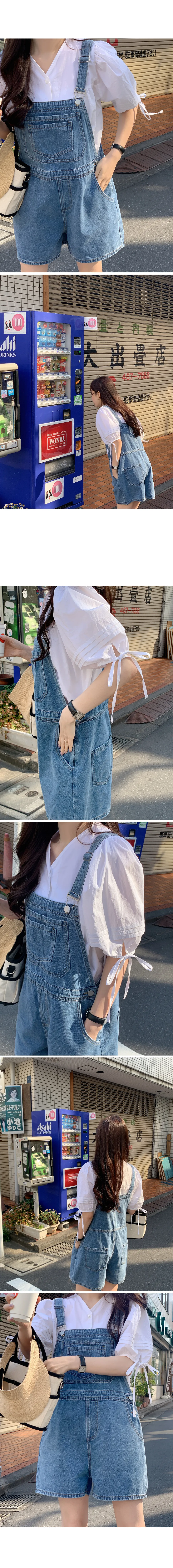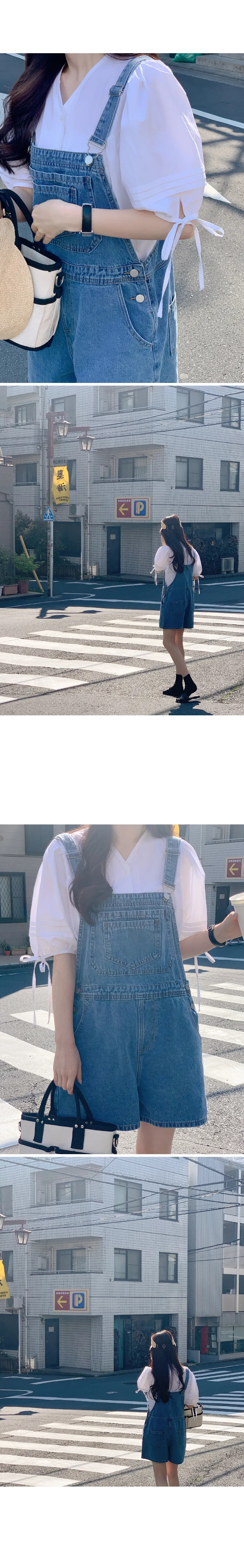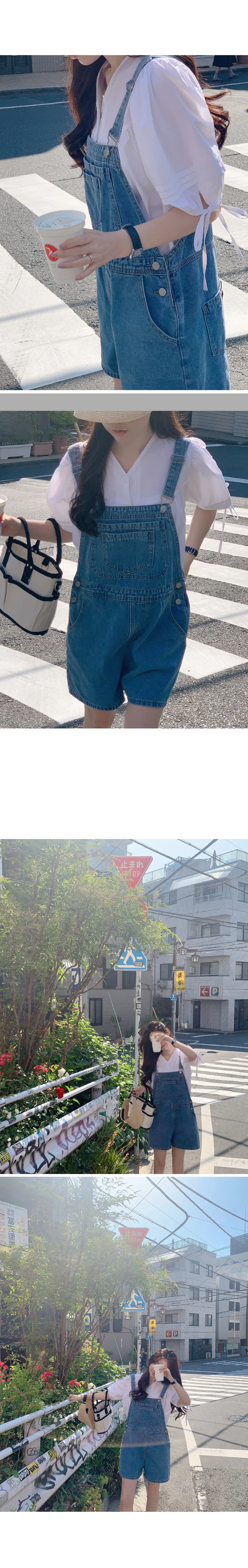 可愛氛圍前袋鼠口袋牛仔連身短褲