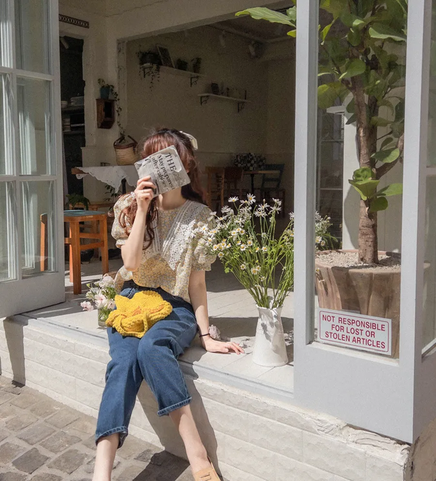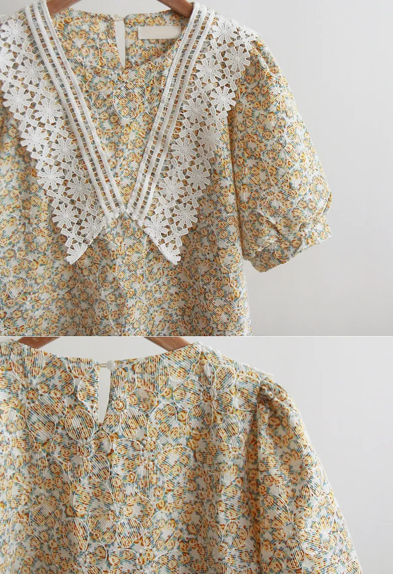 [清新明亮的顏色][有微妙的花朵刺繡的獨特單品][漂亮的蕾絲花朵鋪在脖子下,給人一種少女感]