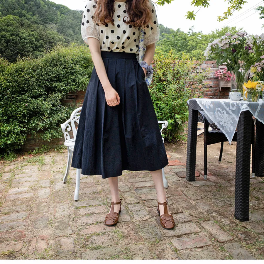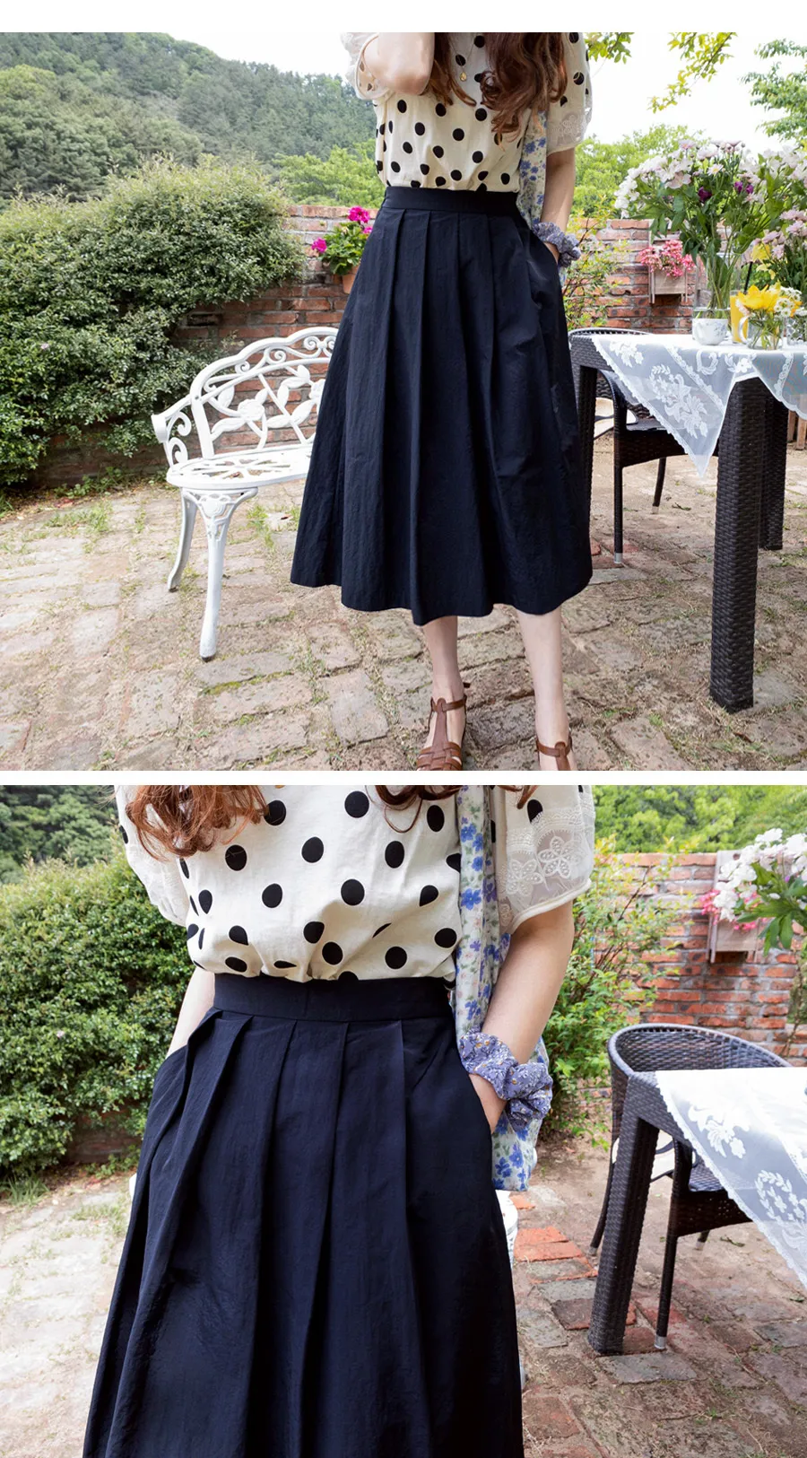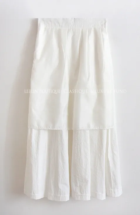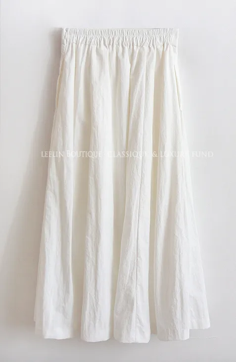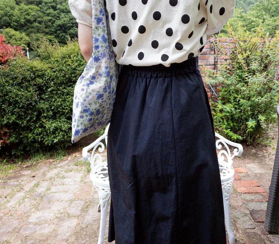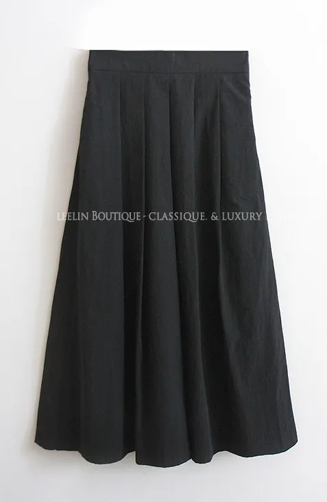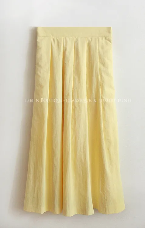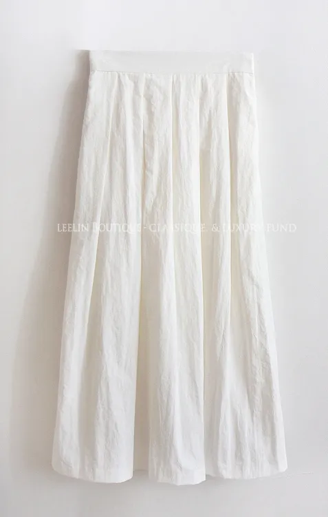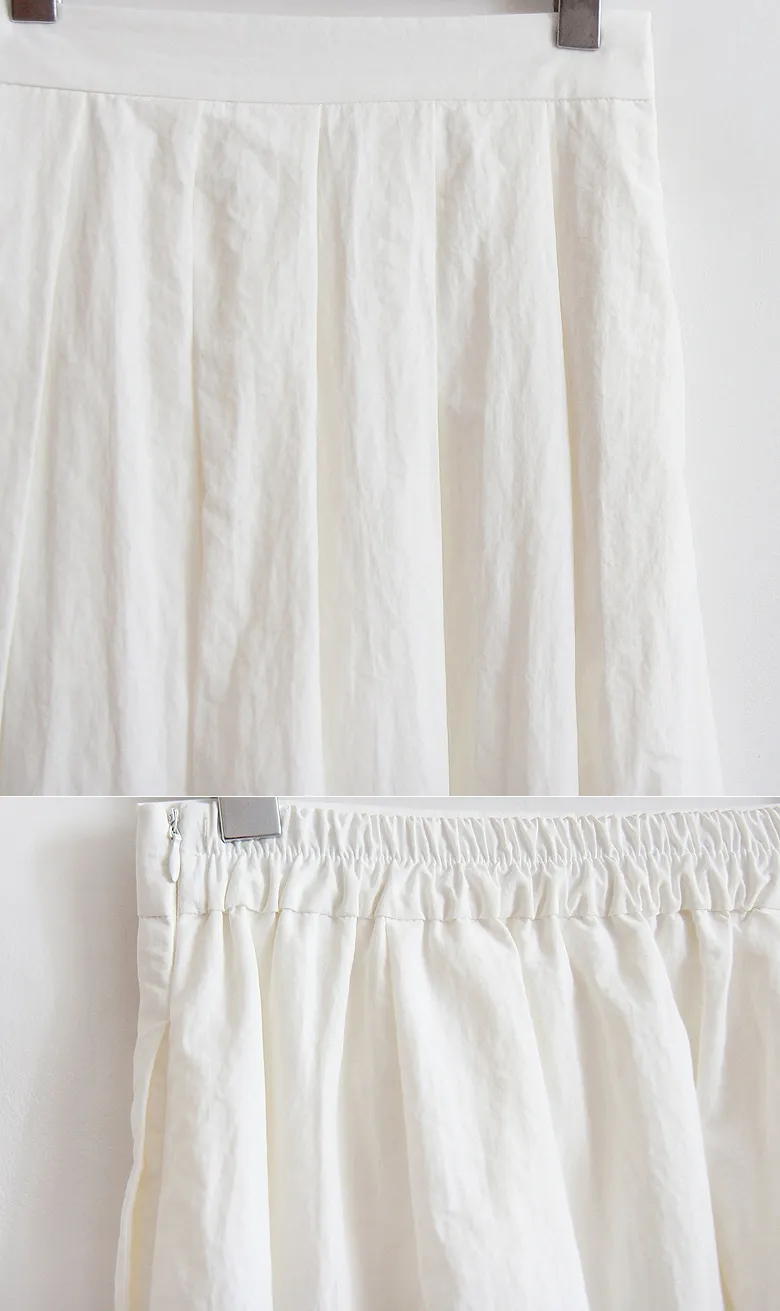 優雅A字線條摺線裙擺腰部彈性中長裙