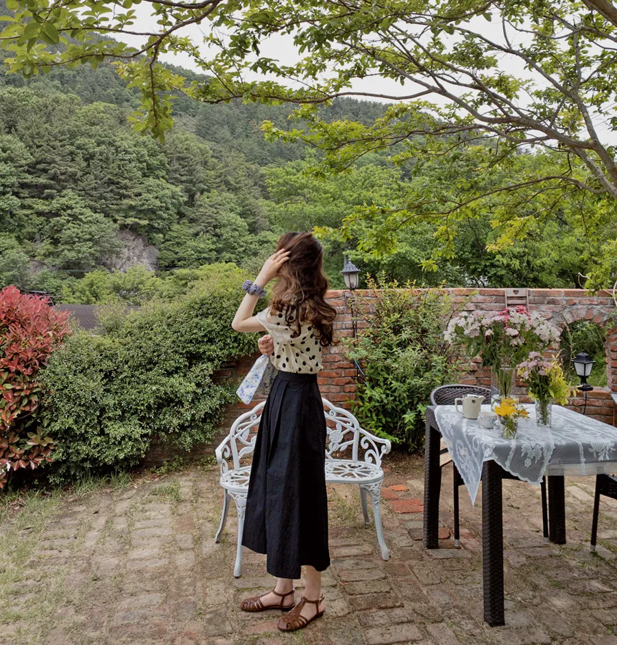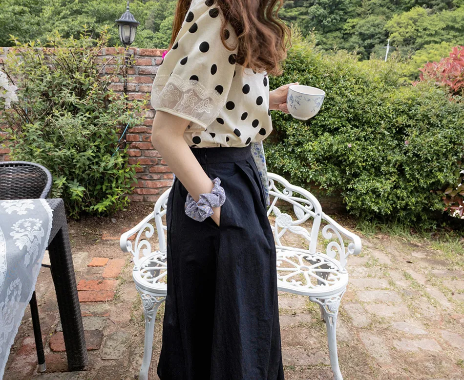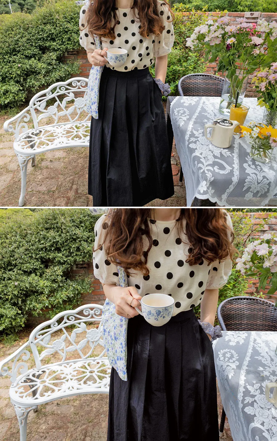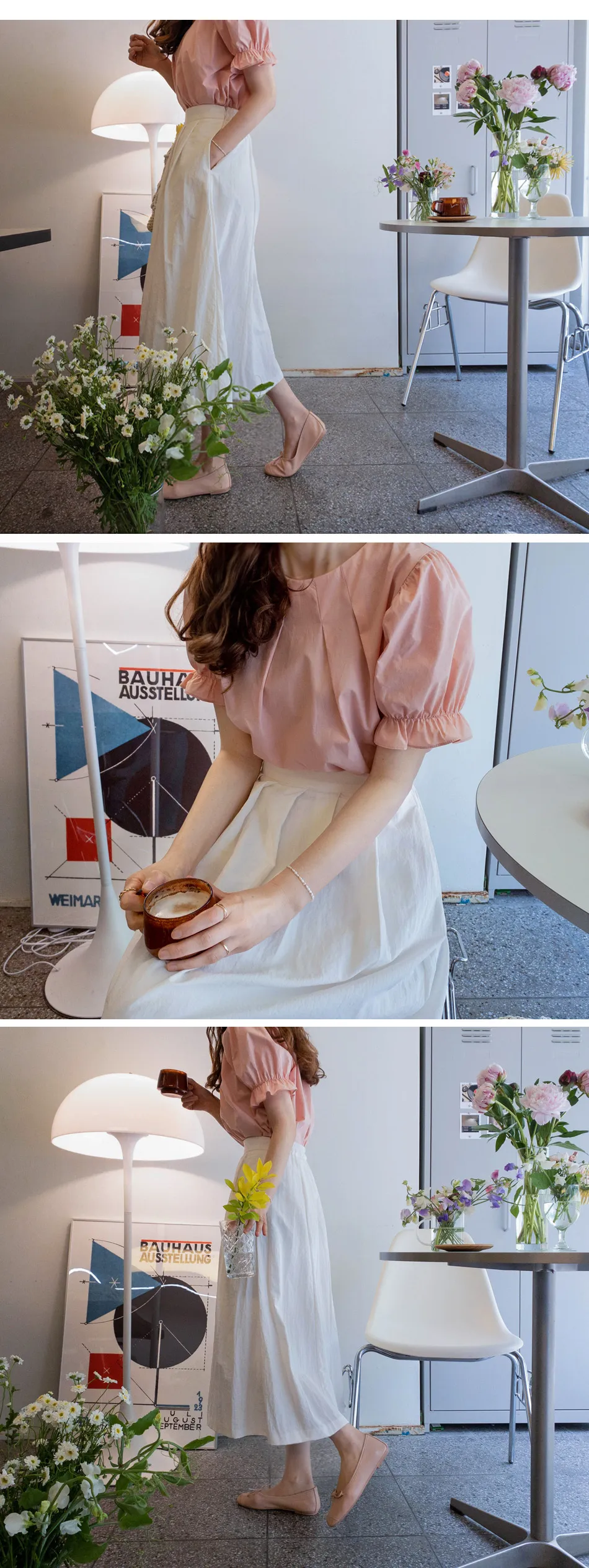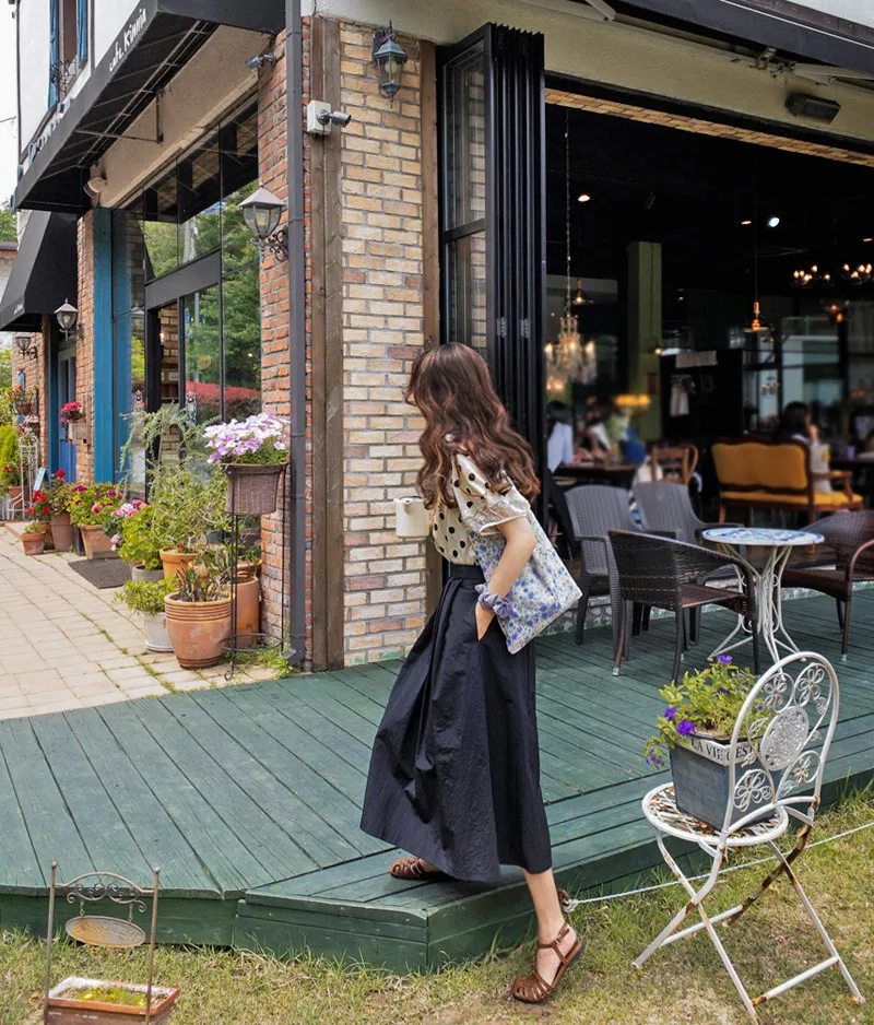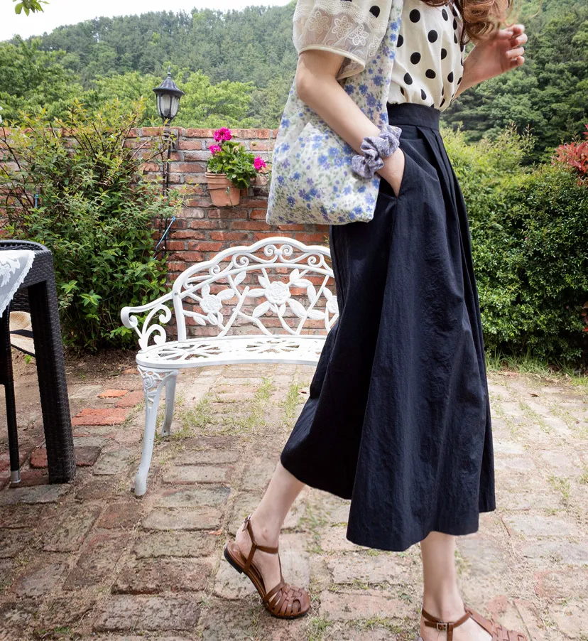 優雅A字線條摺線裙擺腰部彈性中長裙