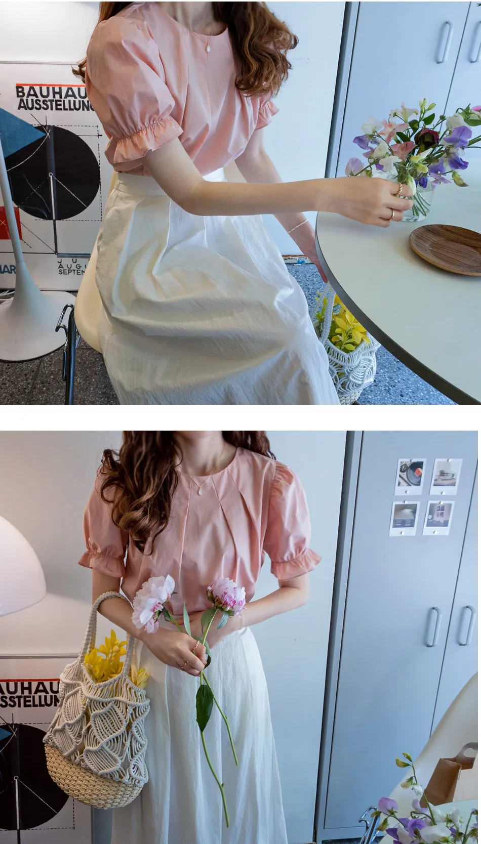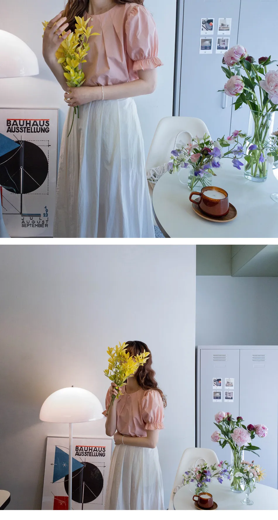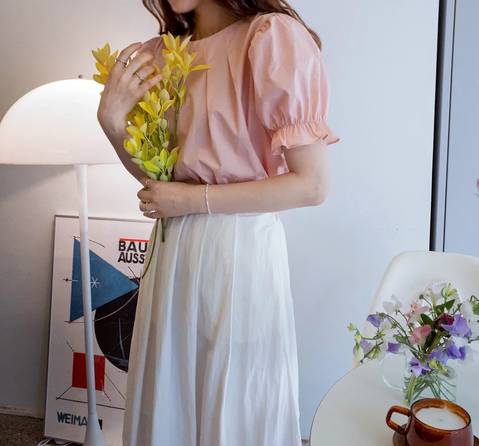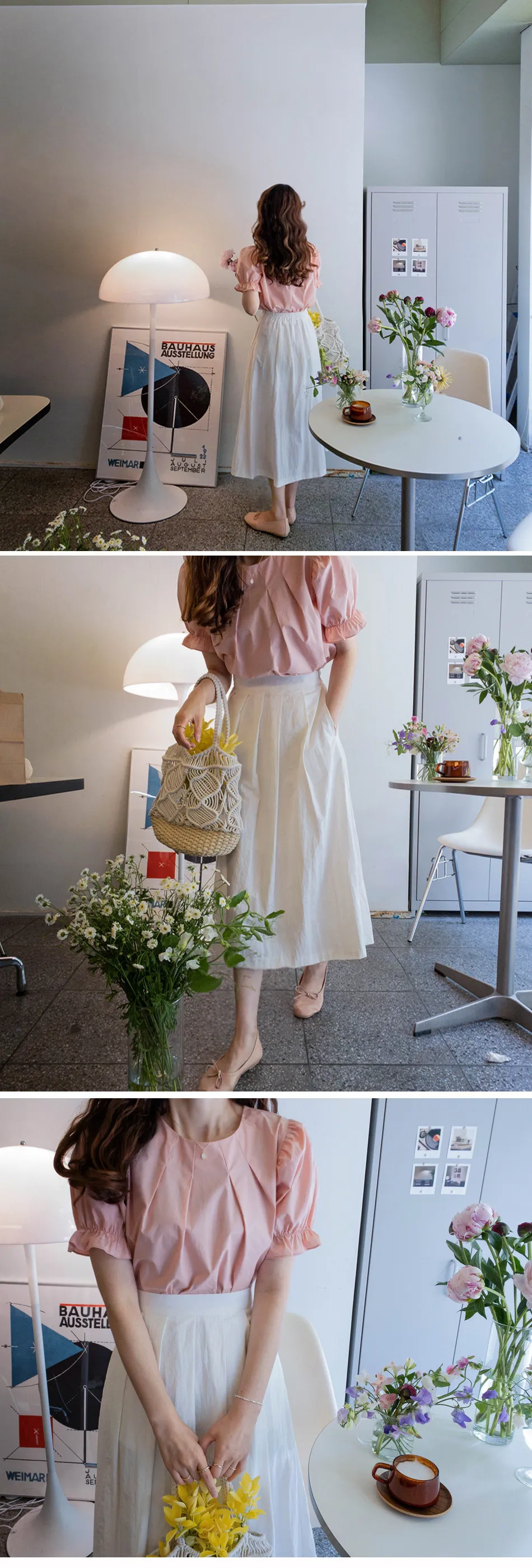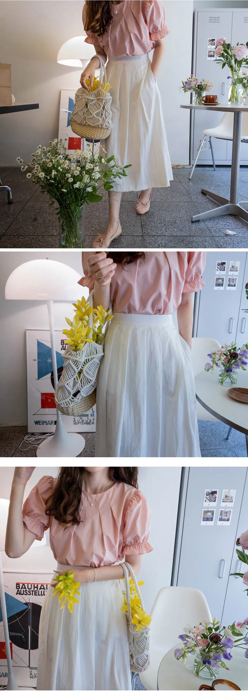 優雅A字線條摺線裙擺腰部彈性中長裙
