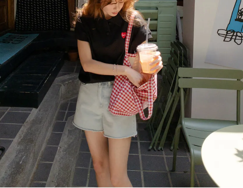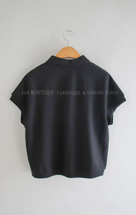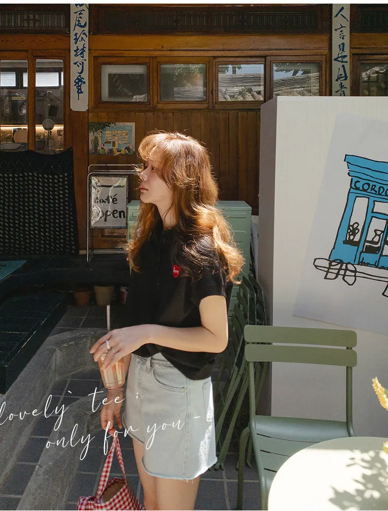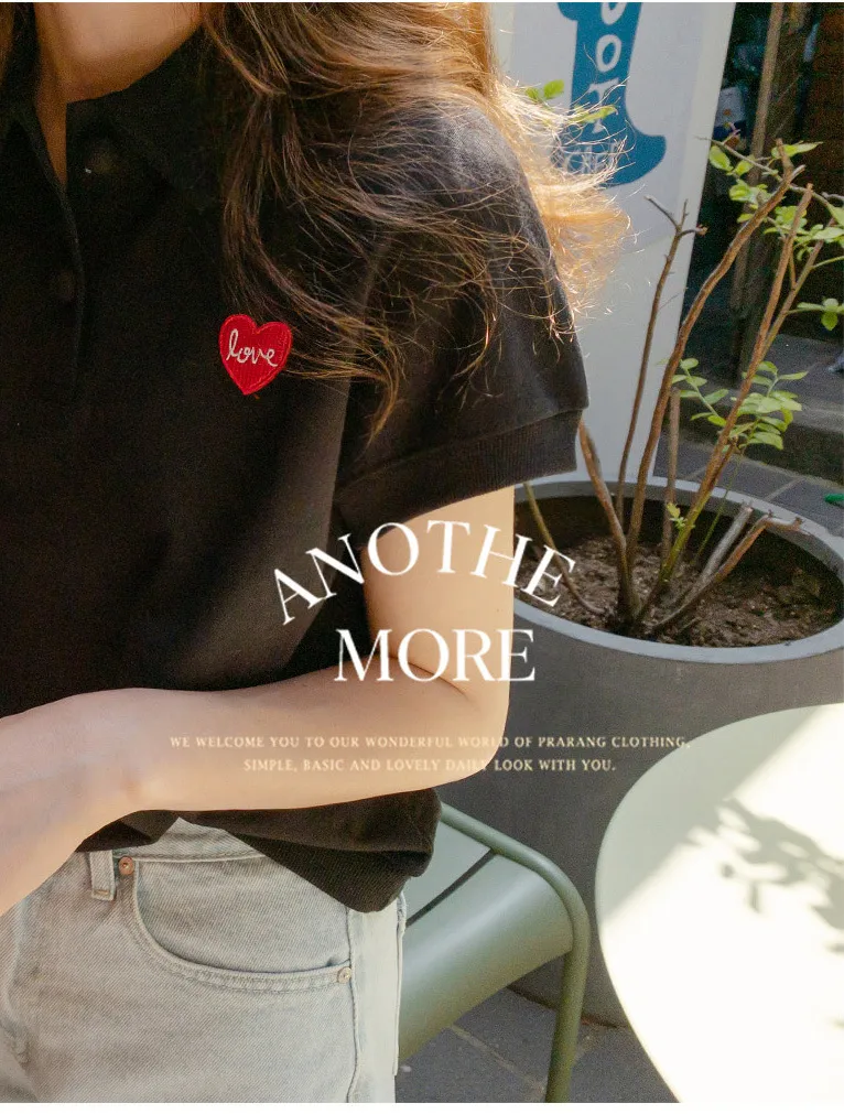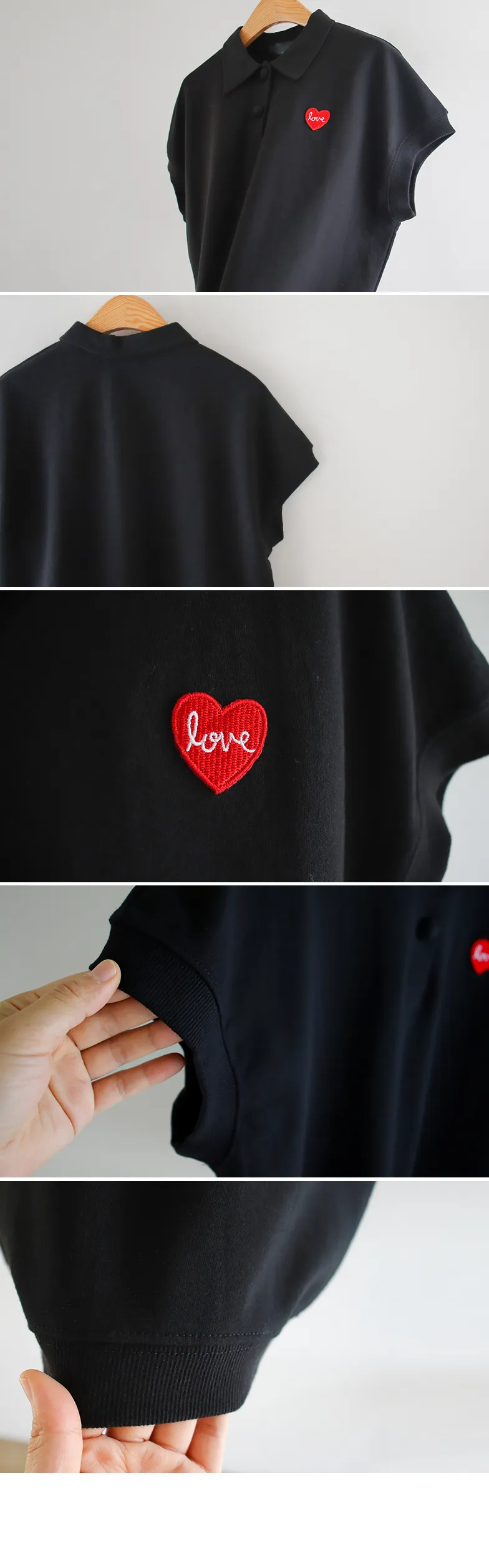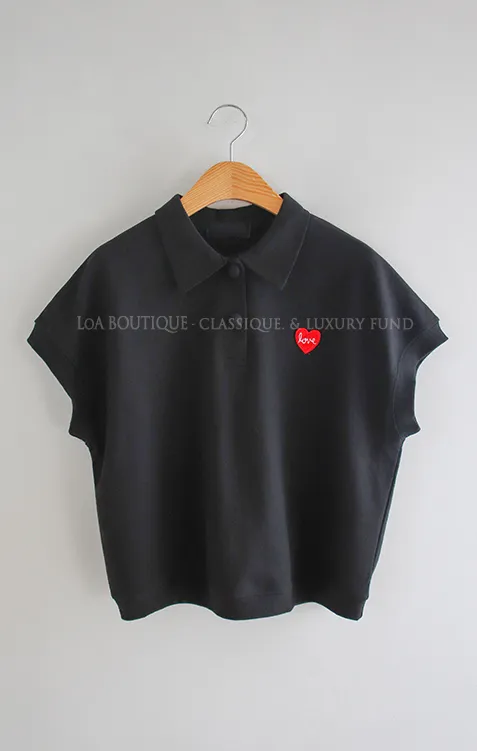 可愛心形LOVE字母刺繡圓扣翻領上衣 黑色