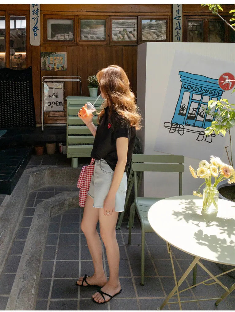 漂亮下擺自然剪裁半A字修身牛仔短褲